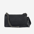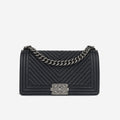 The ‘Boy’ bag, first introduced in 2011 and named after Coco Chanel’s lifetime love, is part of their iconic collection. This particular edition is created using Navy Chevron calfskin leather and can be worn with the chain doubled up over the shoulder for an evening look or wear cross body for a more casual style.