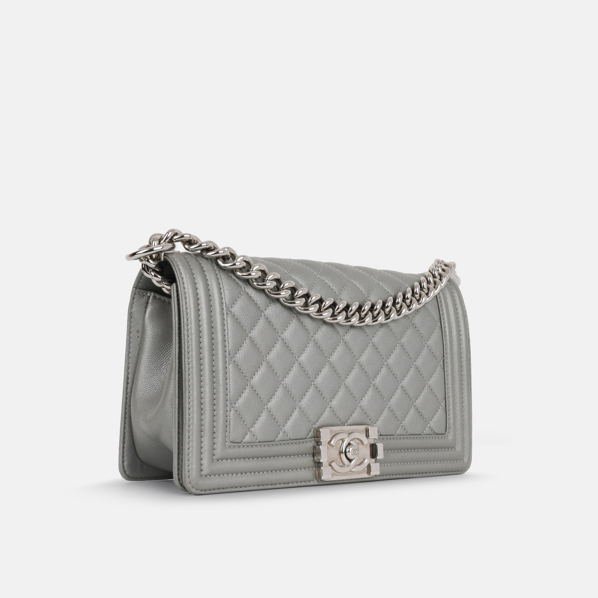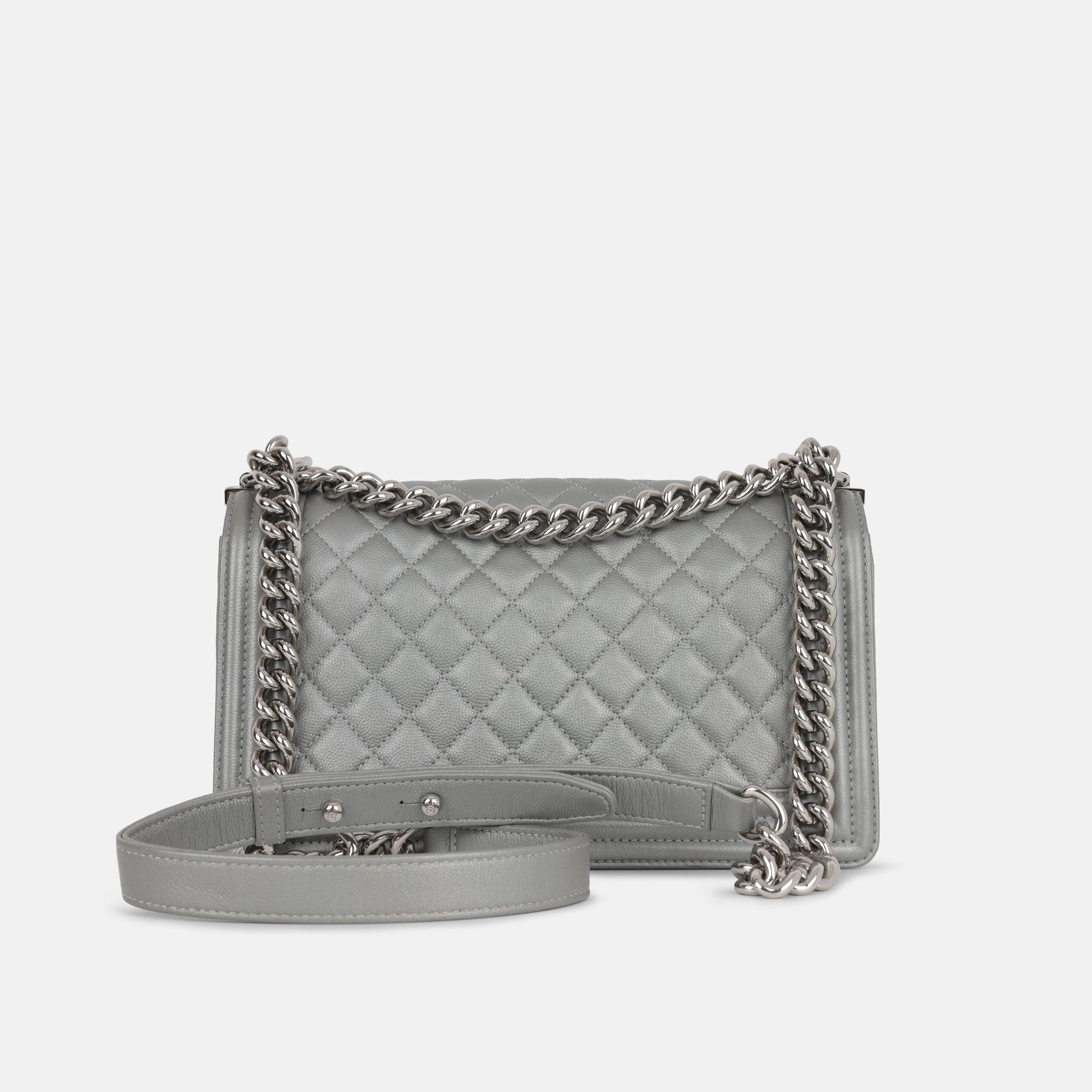 - Silver quilted caviar leather