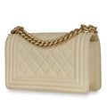 Under the creative direction of Karl Lagerfeld and for his Cruise 2015 collection, Chanel presented this truly magnificent Boy bag. A classic piece with an elegant twist, this gem is carefully crafted from lambskin leather. A statement piece that will remain in style and in your wardrobe forever, this Boy is an absolute must-have for any woman with a love for luxury. Dress this bag up for any formal event, or even dress it down with a more casual outfit if you really want to make a statement! Wherever you go or whatever you were it with, all eyes will definitely be on you. No luxury handbag collection is truly complete without a Chanel bag - and let's be honest, not all women need a man, but they definitely need a Boy. ;)