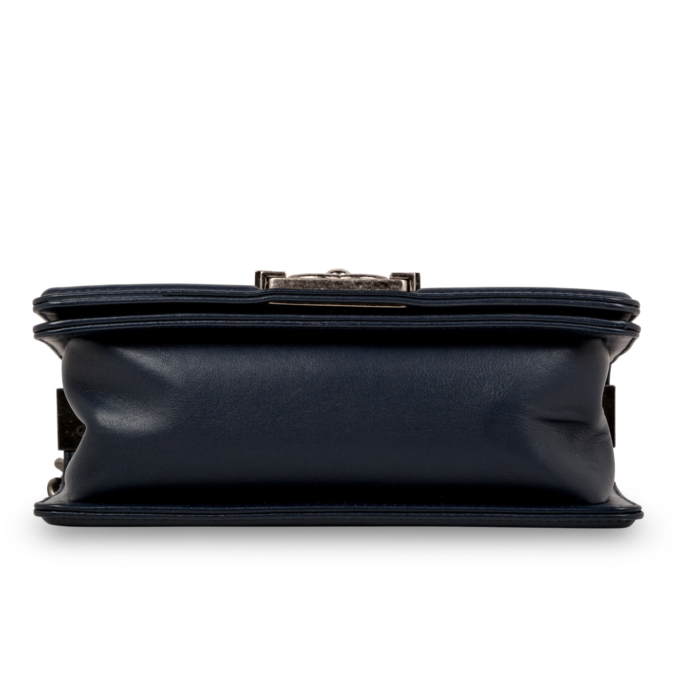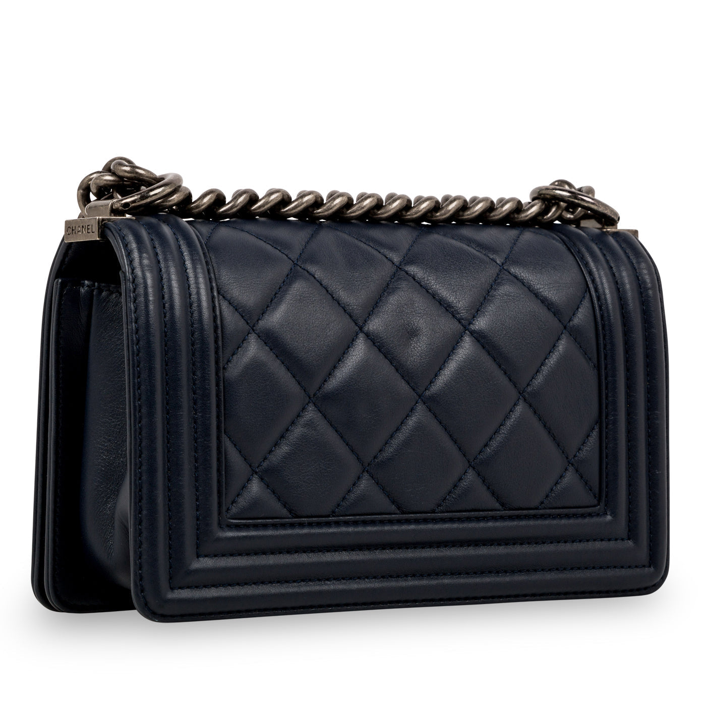 An absolute must-have for any fashion lover with a soft spot for Chanel, it basically goes without saying that this bag is a necessity in any luxury handbag collection. The Boy bag is not only an iconic piece that will remain in style forever, but it's the perfect balance between classic elegance and modern edge. Wear this bag with absolutely anything in your wardrobe, from casual jeans and a basic tee to a dressy skirt and blazer - you'll be sure to compliment any look with the Small Boy by your side. Carefully crafted from quilted lambskin leather, depicted in a rich blue hue and complimented by ruthenium tone hardware, this bag is the ideal investment for any modern woman with a fashion forward sense of style and a love for classic luxury. A well-worthy investment piece that will never decrease in value, this Boy is one you’ll never want to break up with.