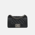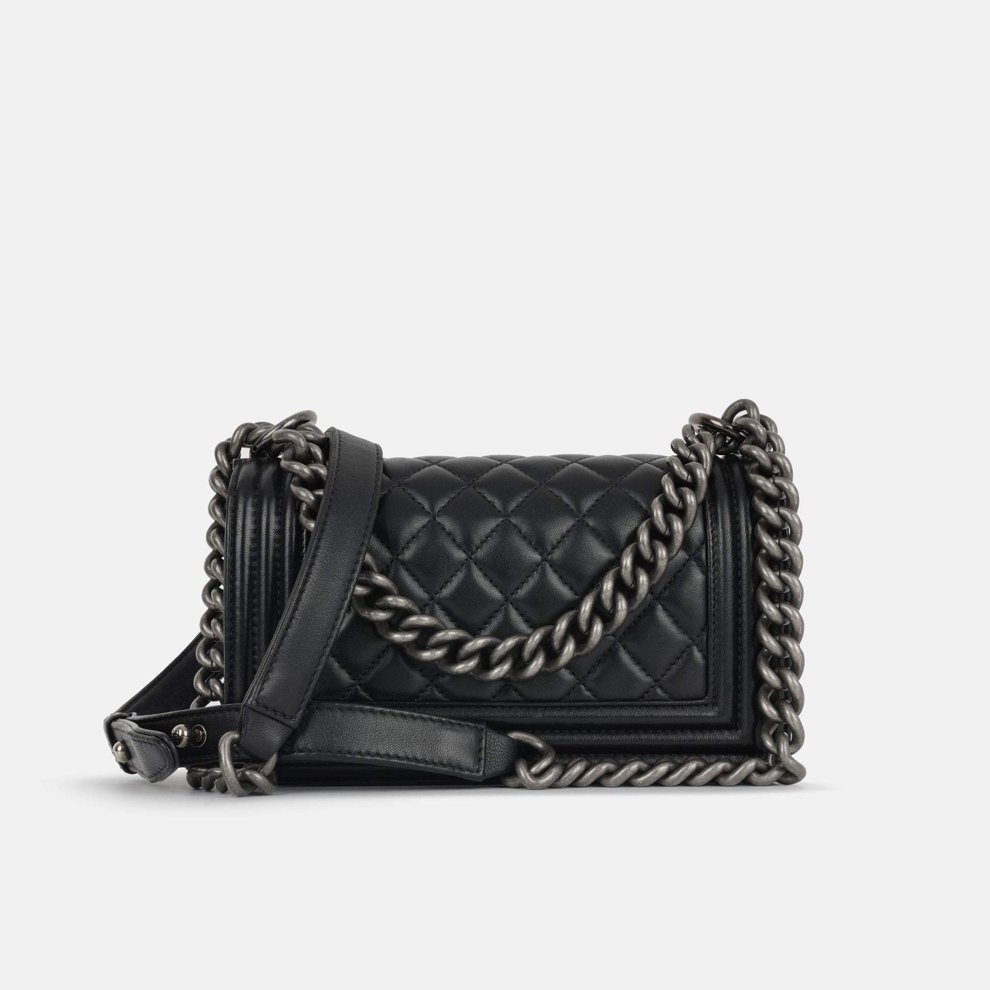 The ‘Boy’ bag, first introduced in 2011 and named after Coco Chanel’s lifetime love, is part of their iconic collection. Crafted from black lambskin leather, ruthenium hardware and can be worn with the chain doubled up over the shoulder for an evening look or wear cross-body for a more casual style.