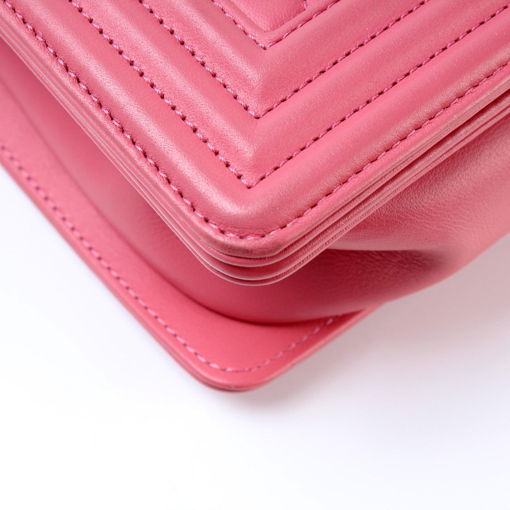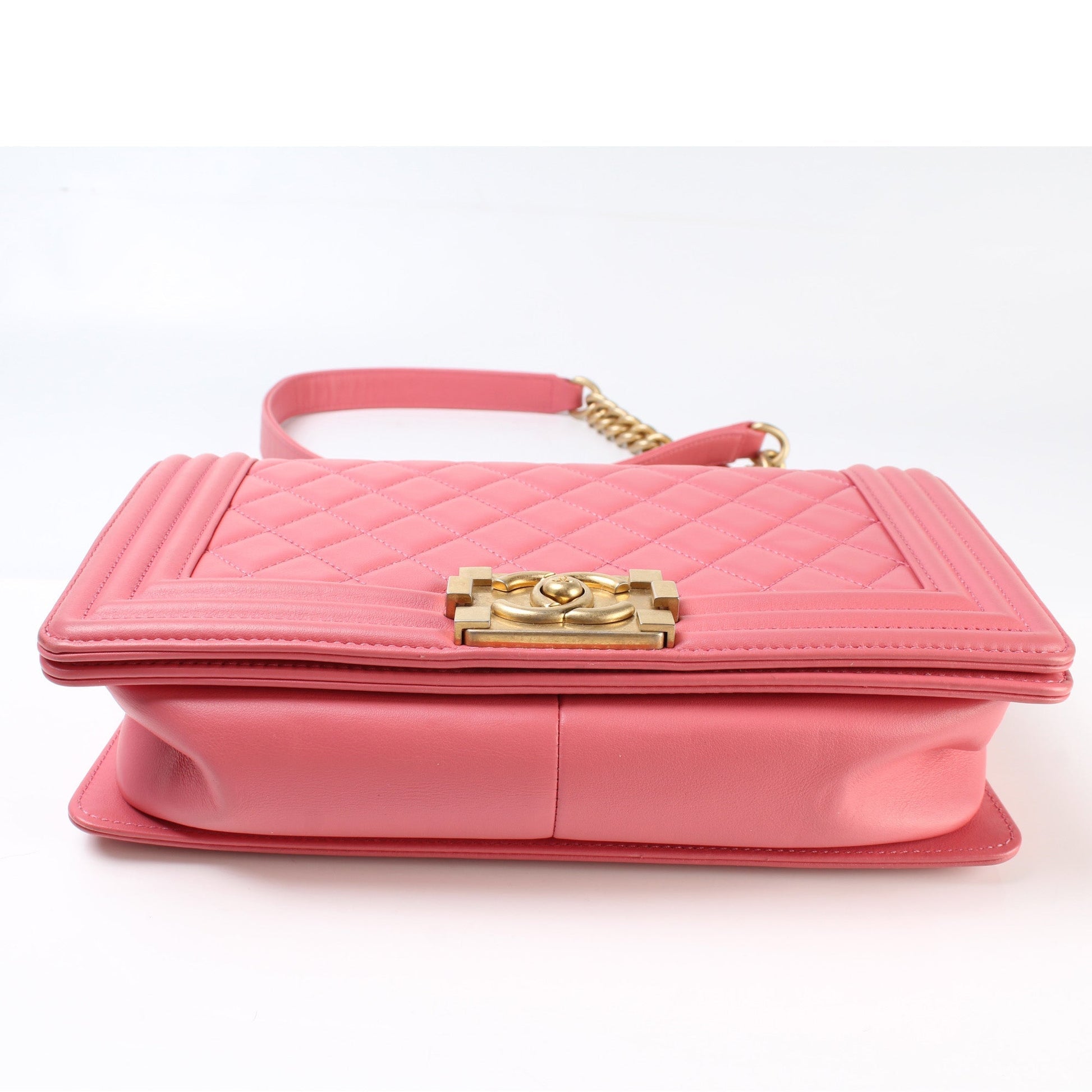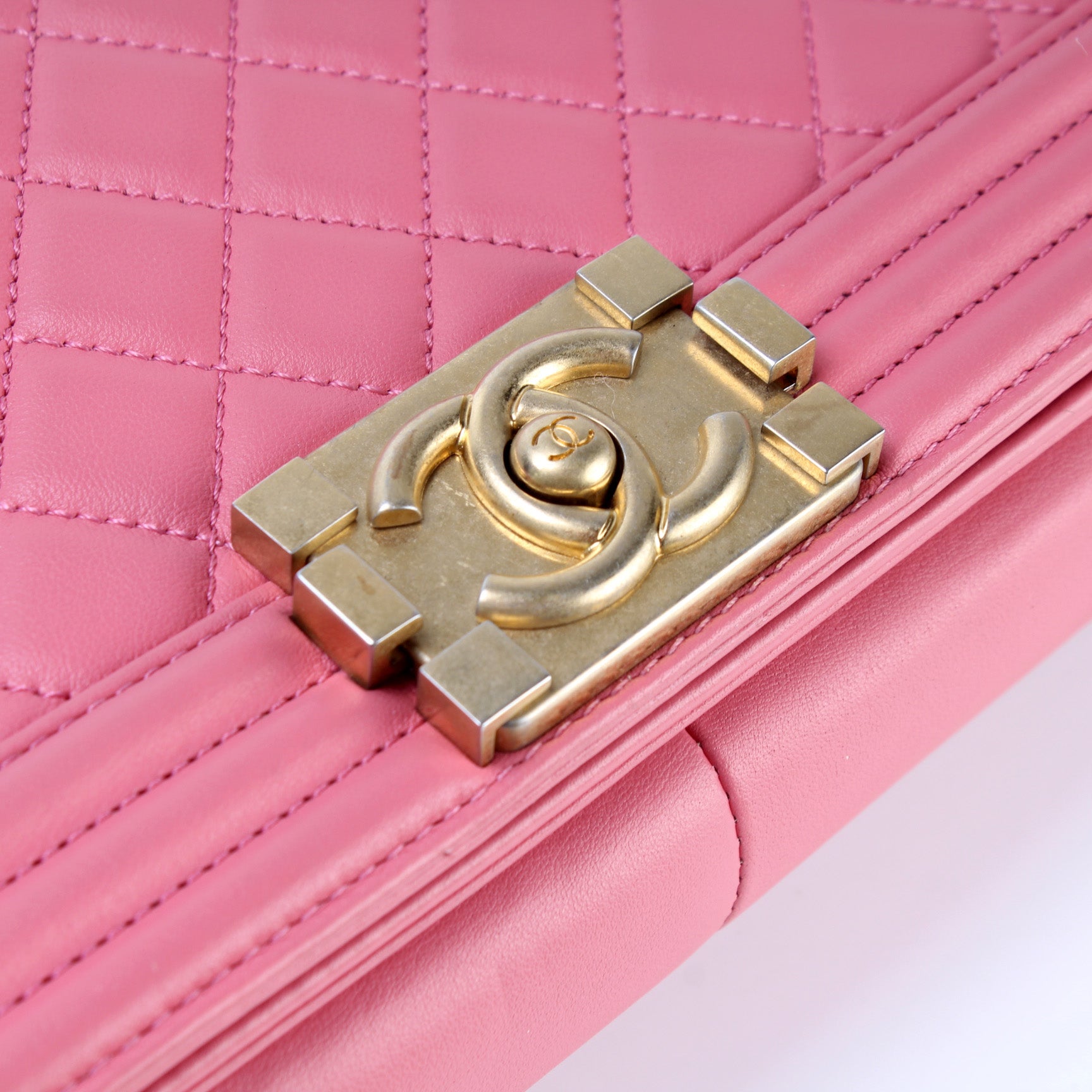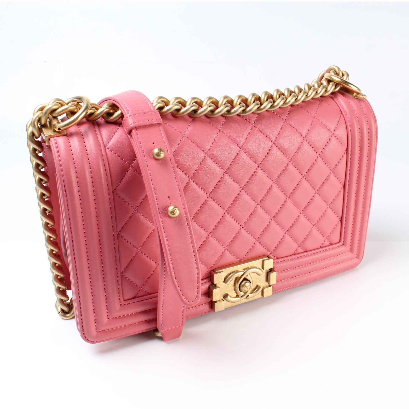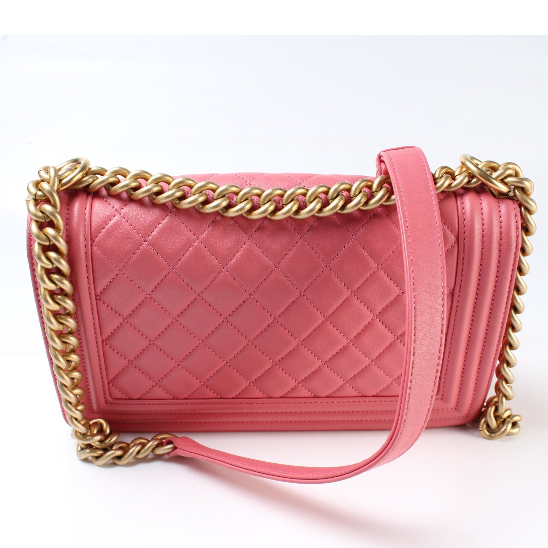 This Chanel Boy Flap Medium Olderis eye catching bag. The exterior is in the classic Chanel Lambskin leather.