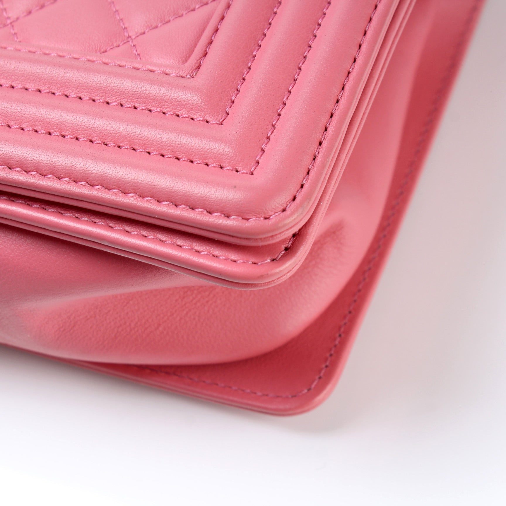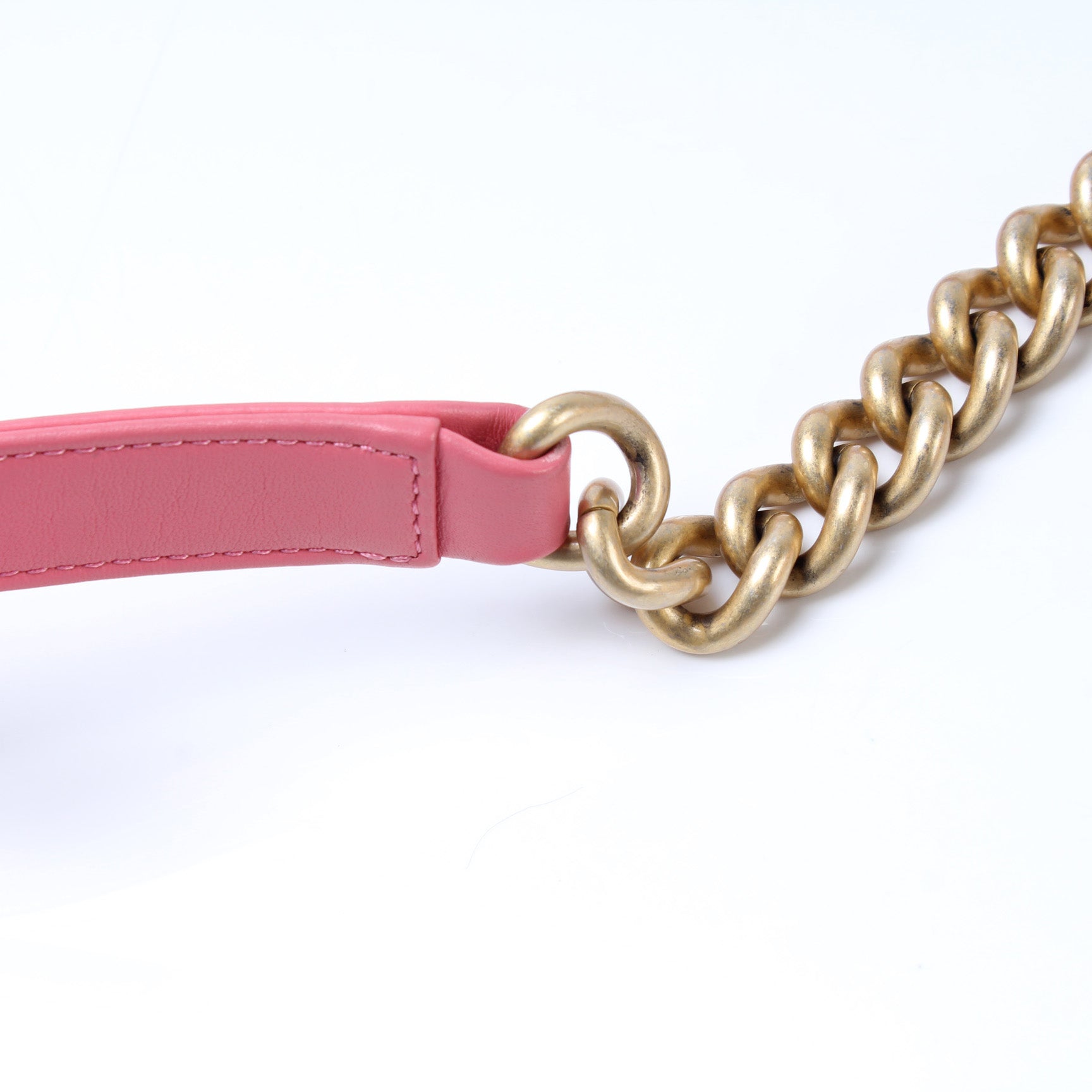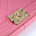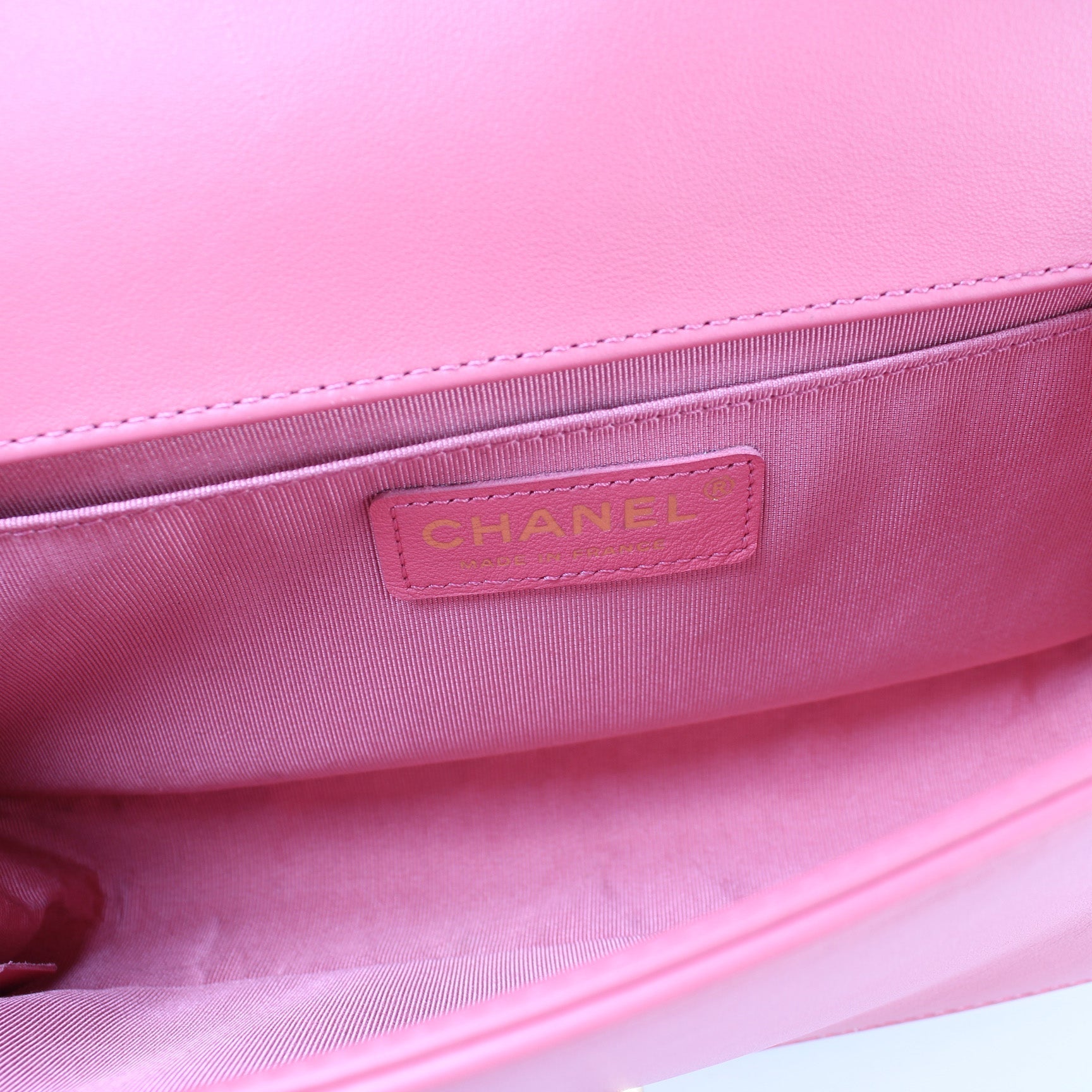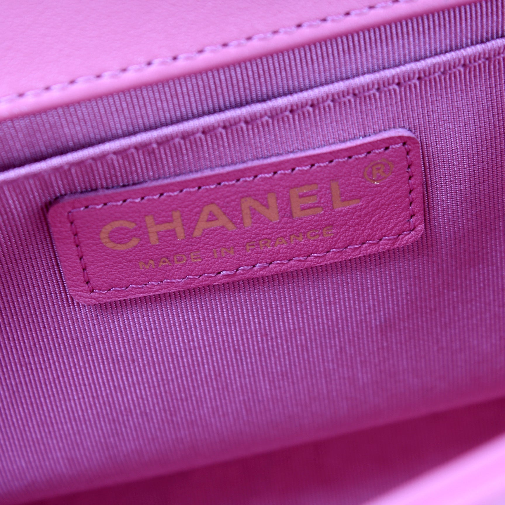 This Chanel Boy Flap Medium Olderis eye catching bag. The exterior is in the classic Chanel Lambskin leather.