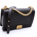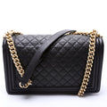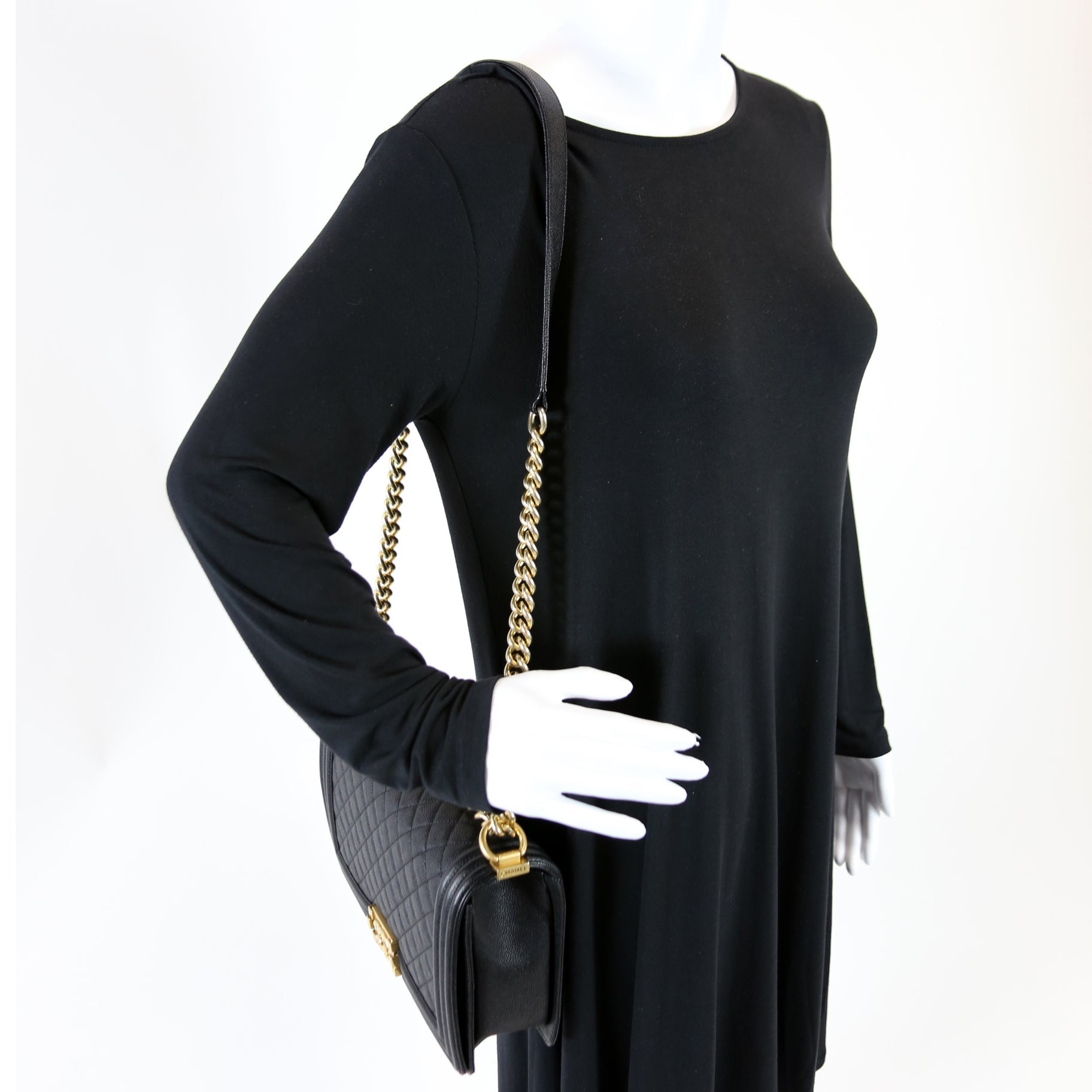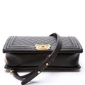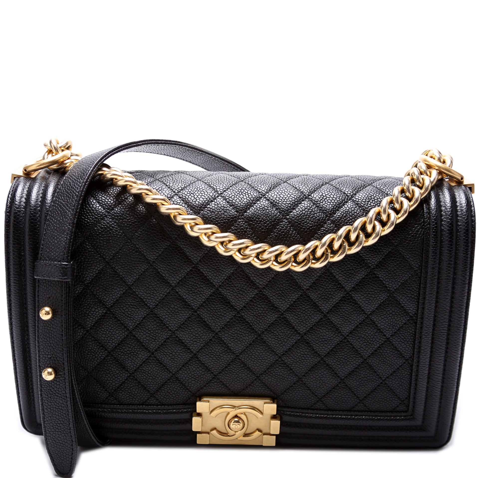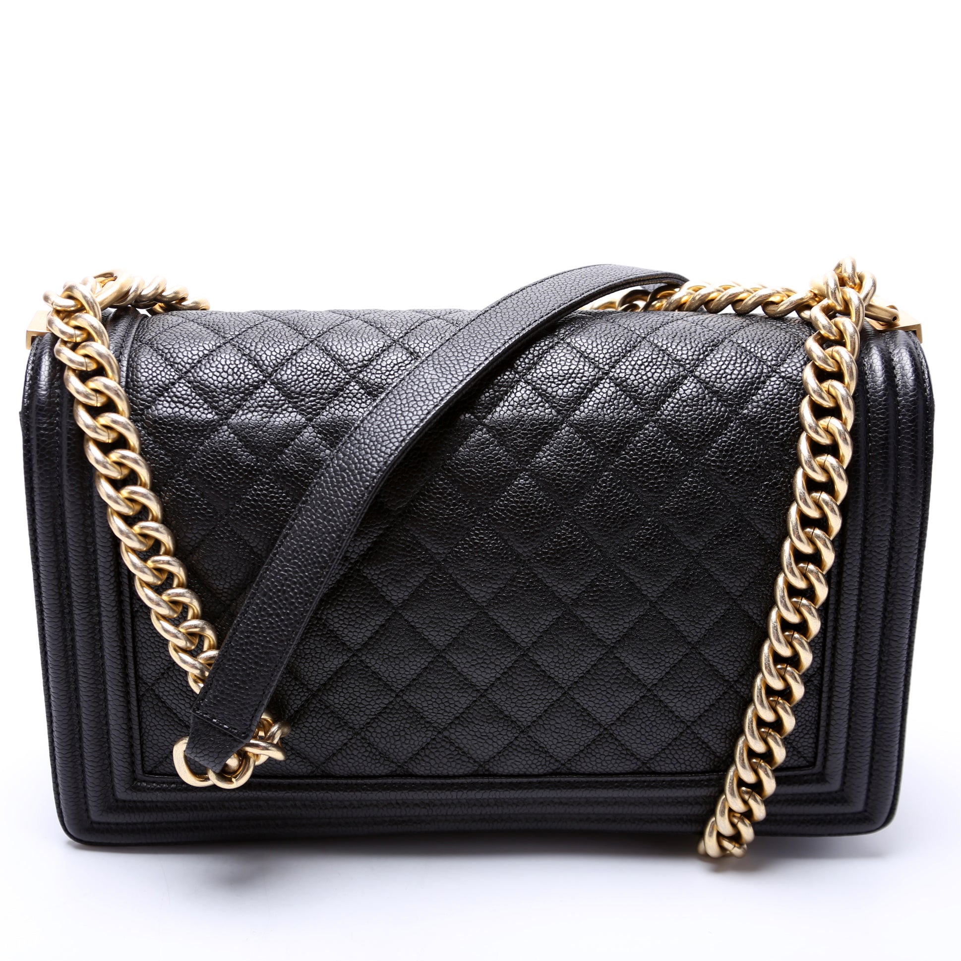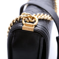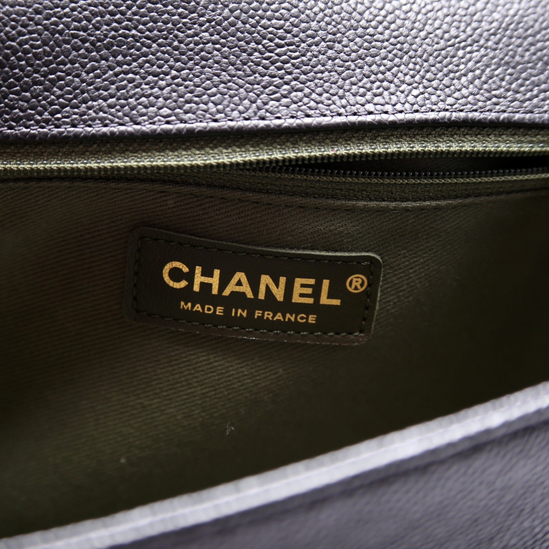 This Chanel Boy Flap Medium Newis eye catching bag. The exterior is in the classic Chanel Caviar leather.