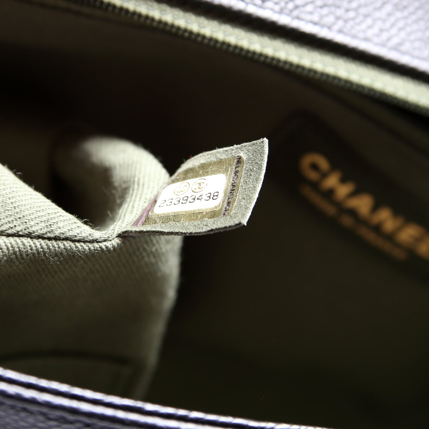 Exterior: The exterior caviar leather is free from rips or cracks. The corners show minor wear.