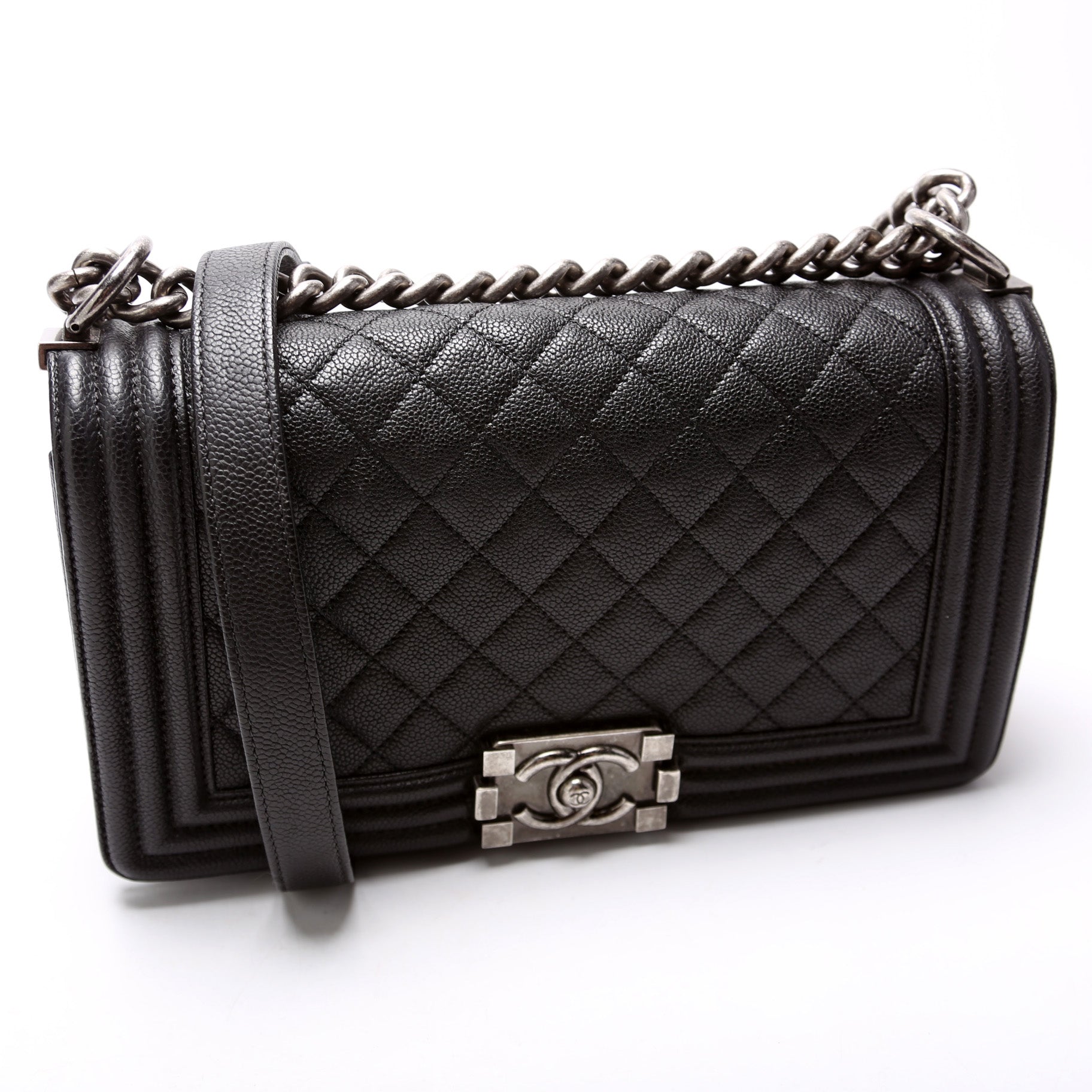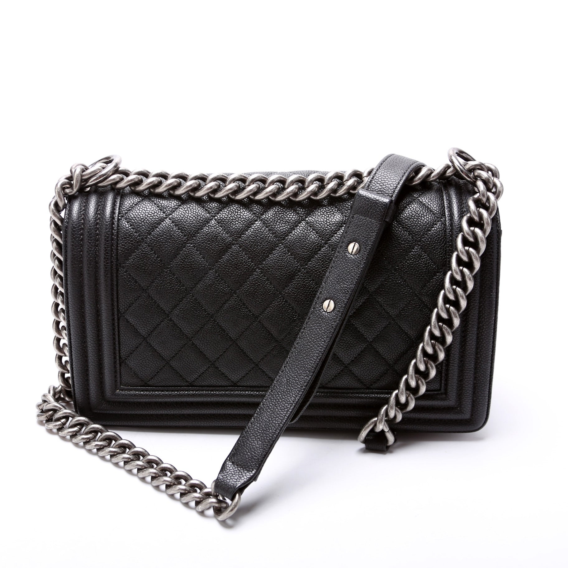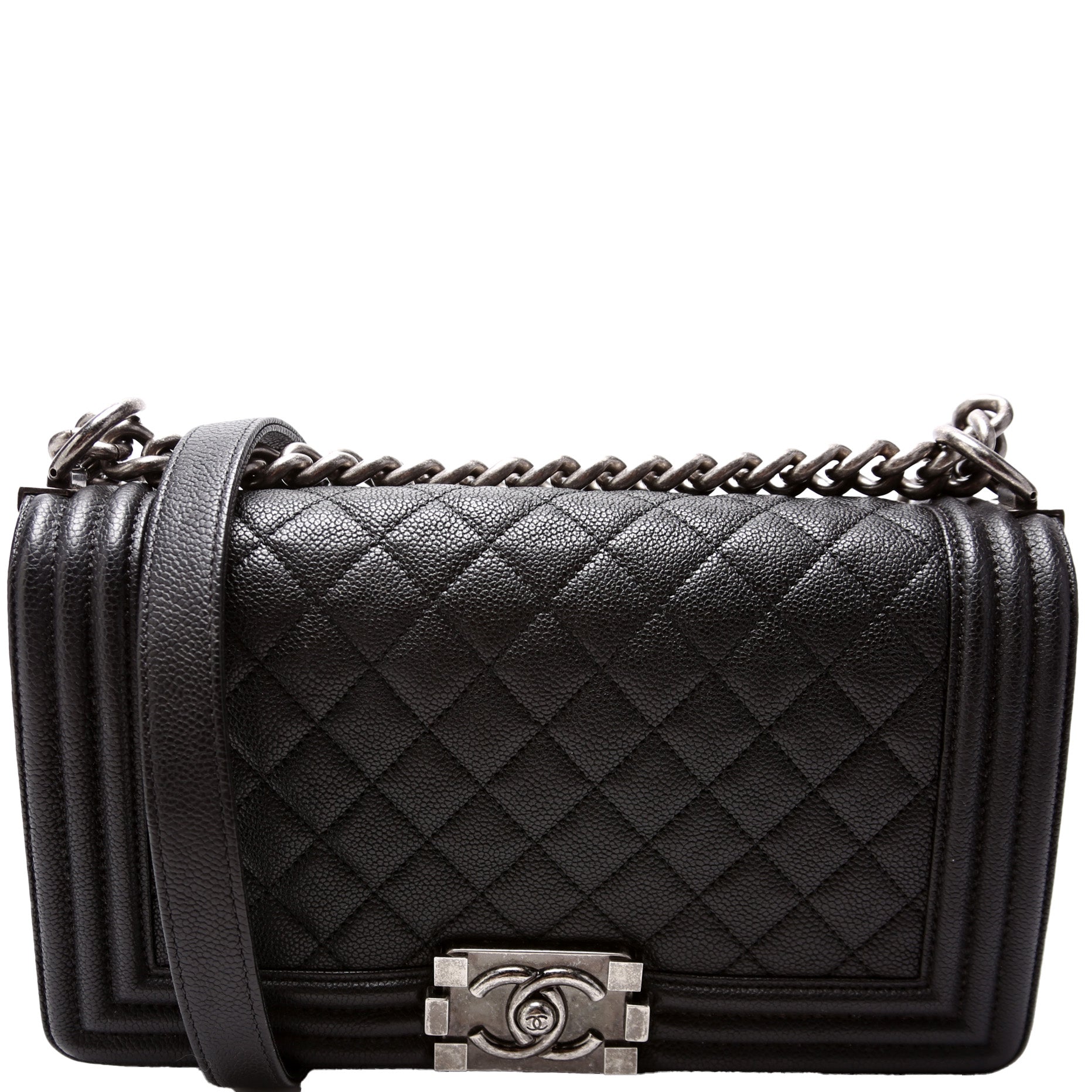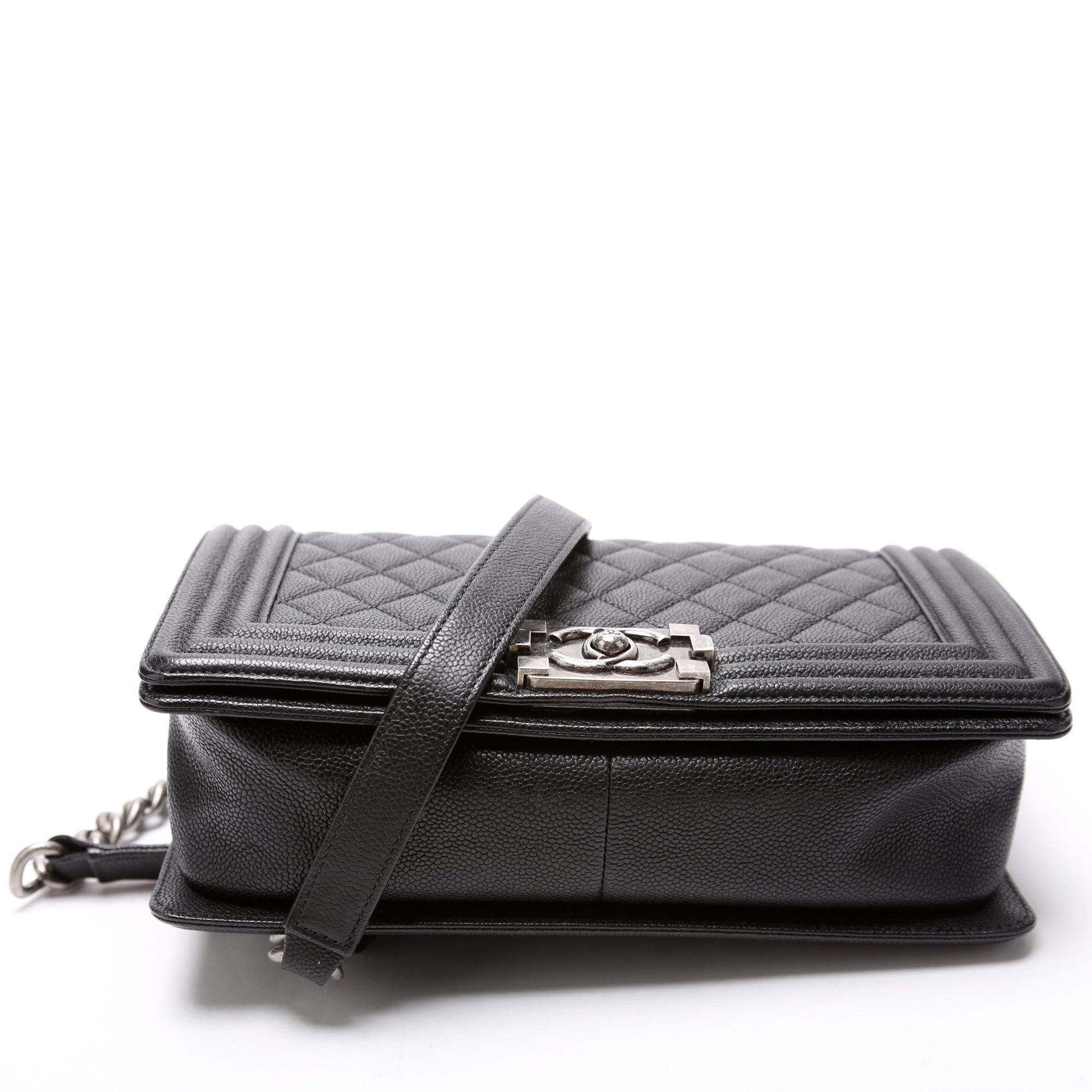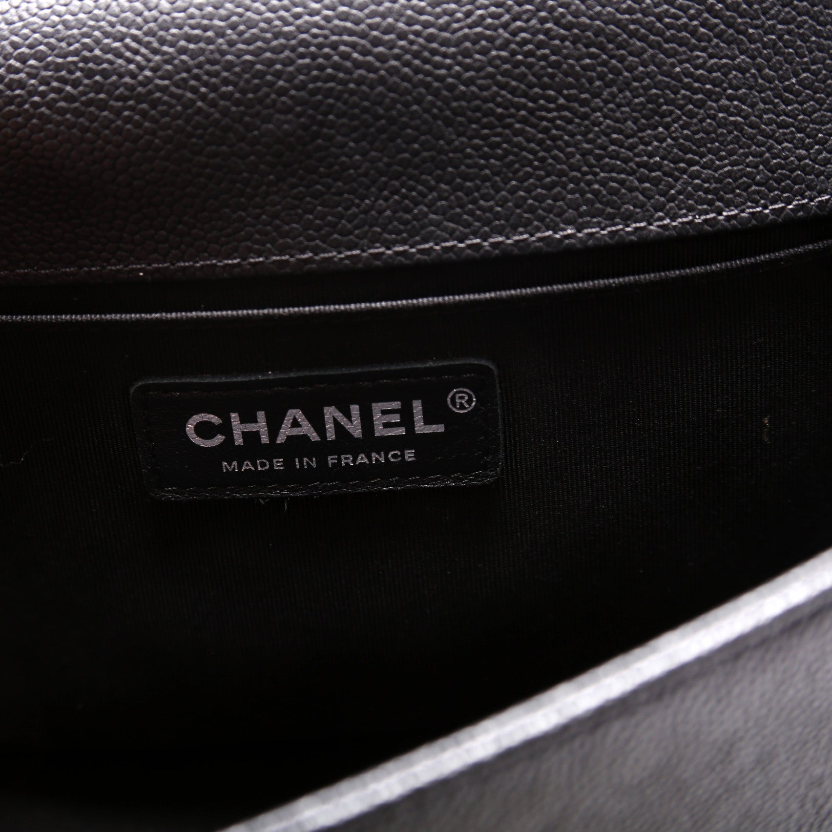 This Chanel Medium Boy Flapis eye catching bag. The exterior is in the classic Chanel New Caviar leather.