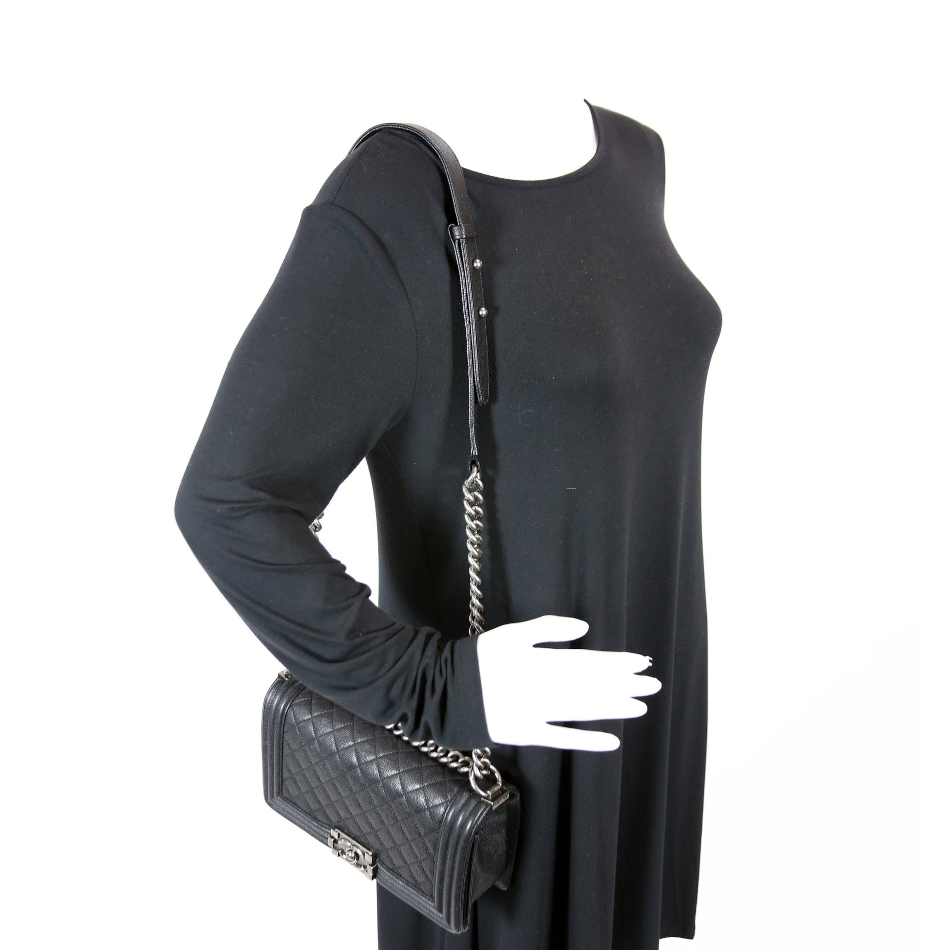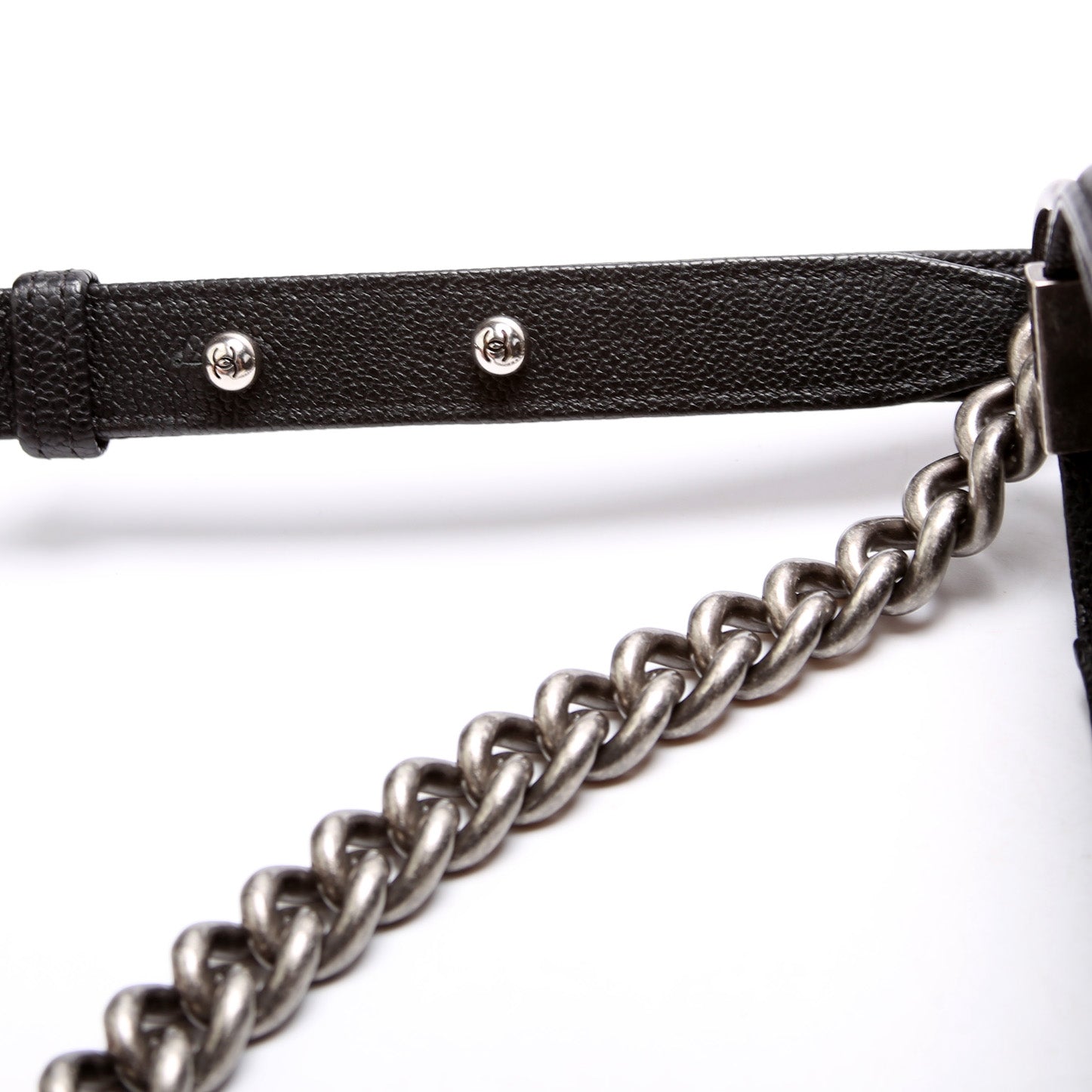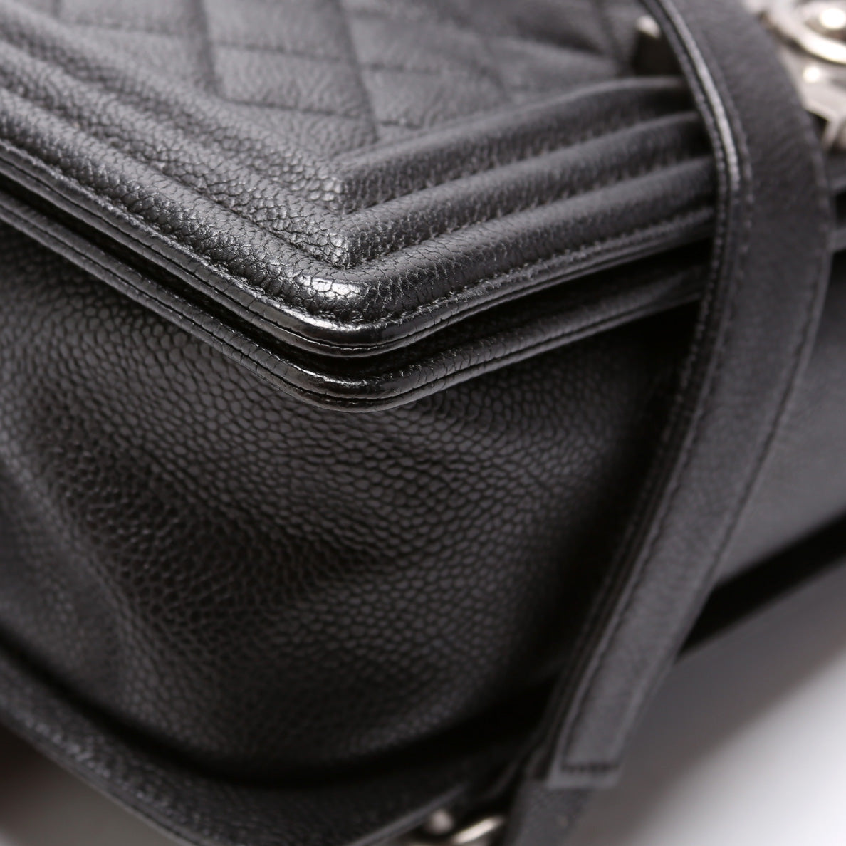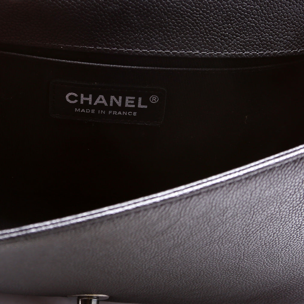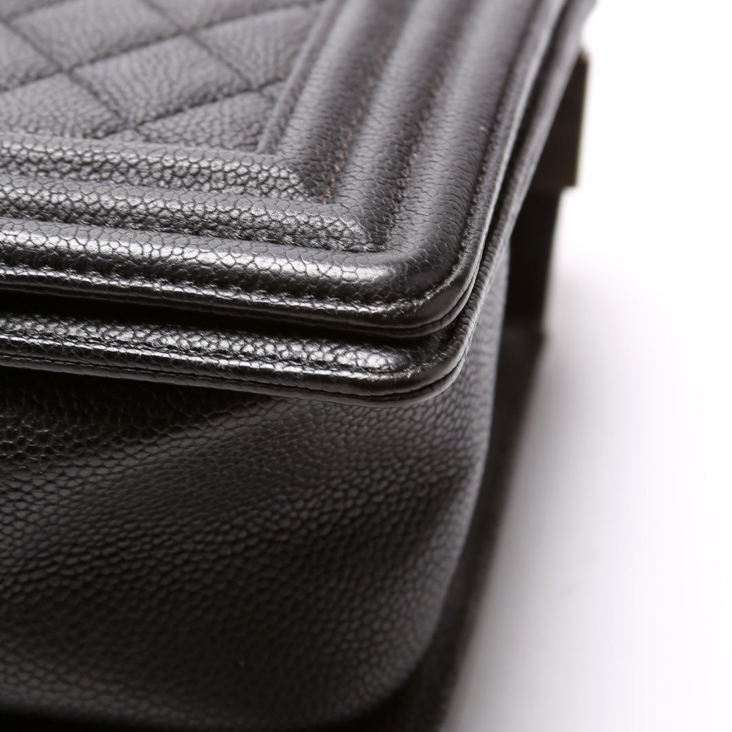 This Chanel Medium Boy Flapis eye catching bag. The exterior is in the classic Chanel New Caviar leather.