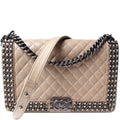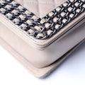 This Chanel Medium Boy Flapis eye catching bag. The exterior is in the classic Chanel lambskin leather.