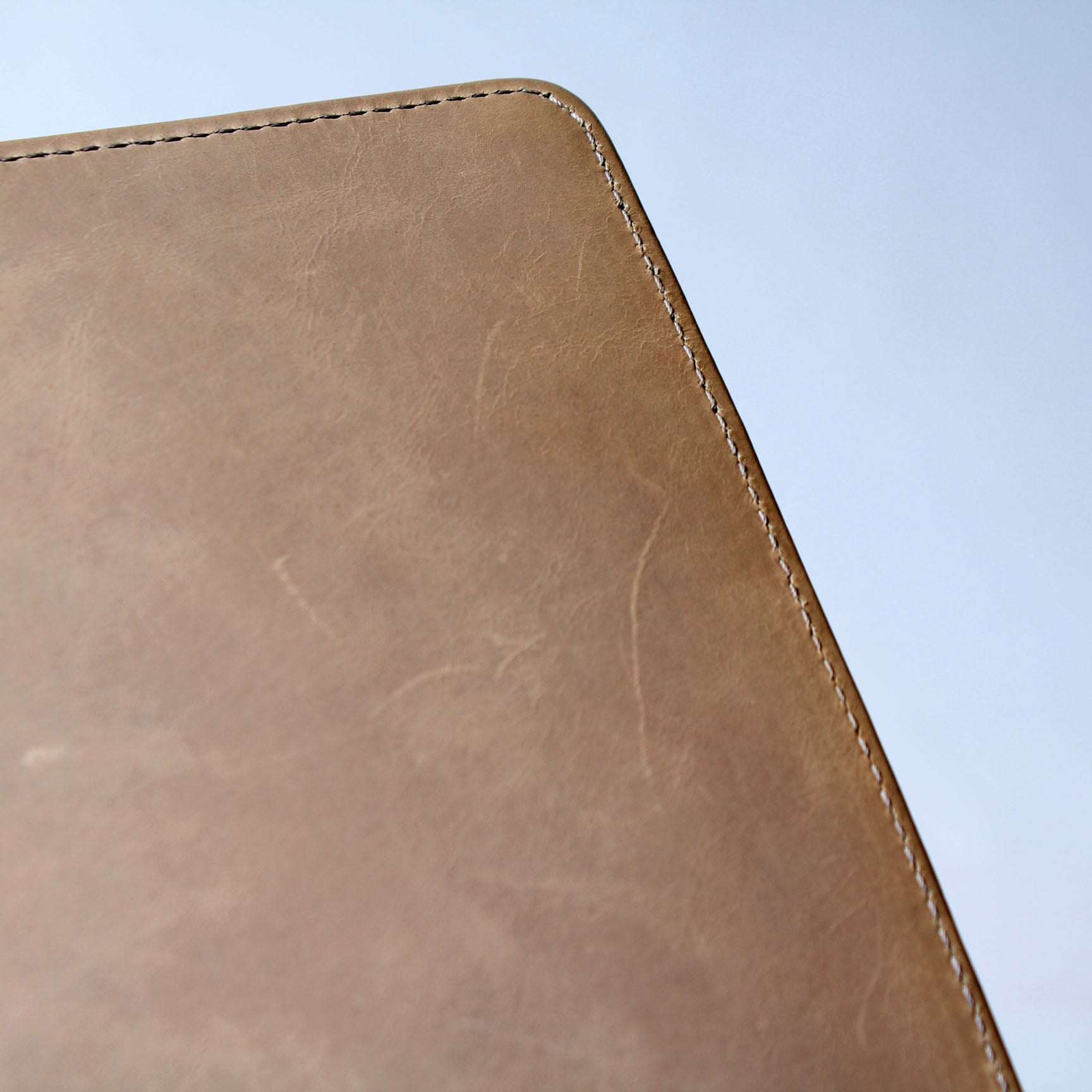 Exterior: The exterior leather is free of any rips or cracks. The corners and the corners show minor signs of wear.