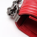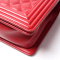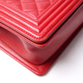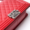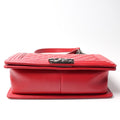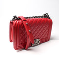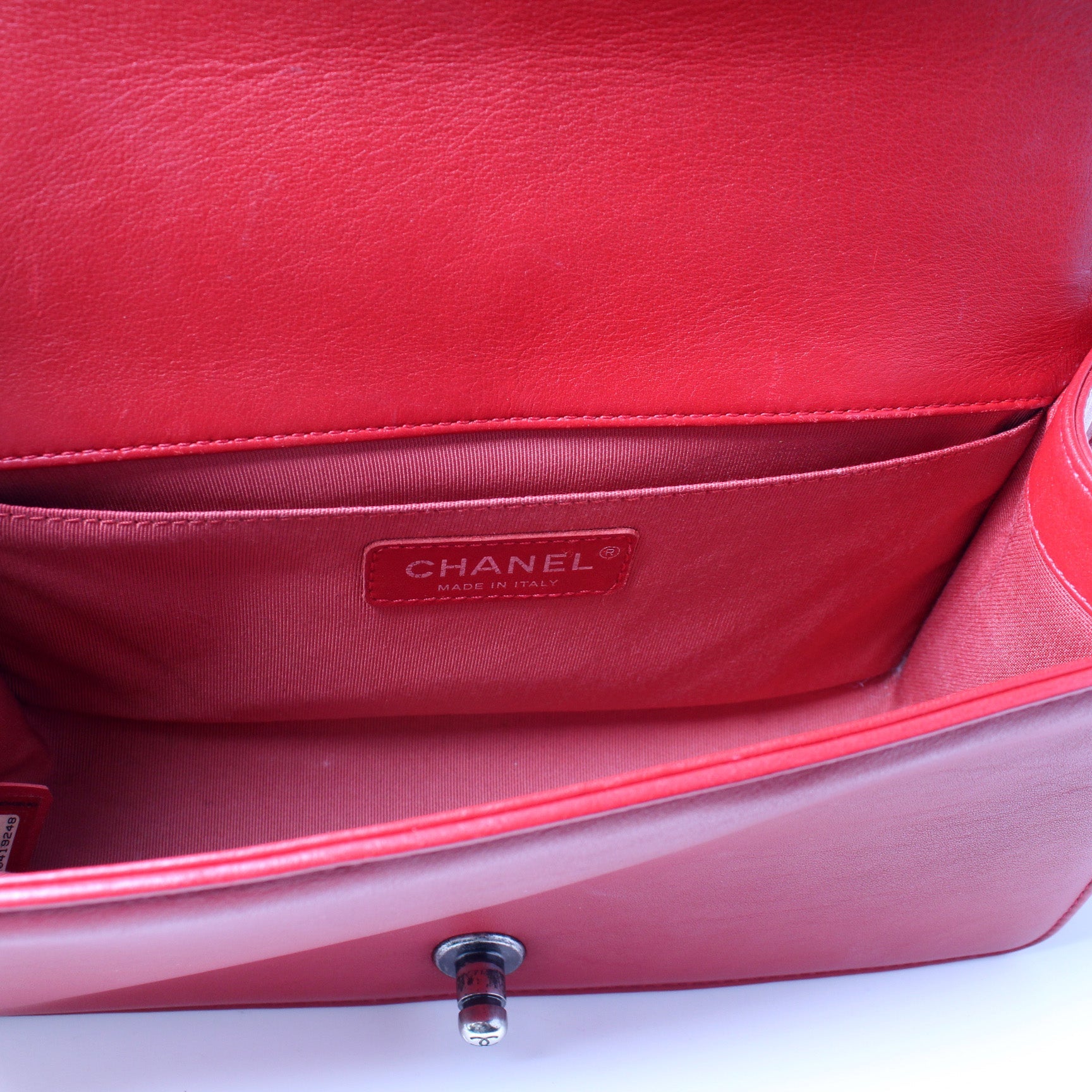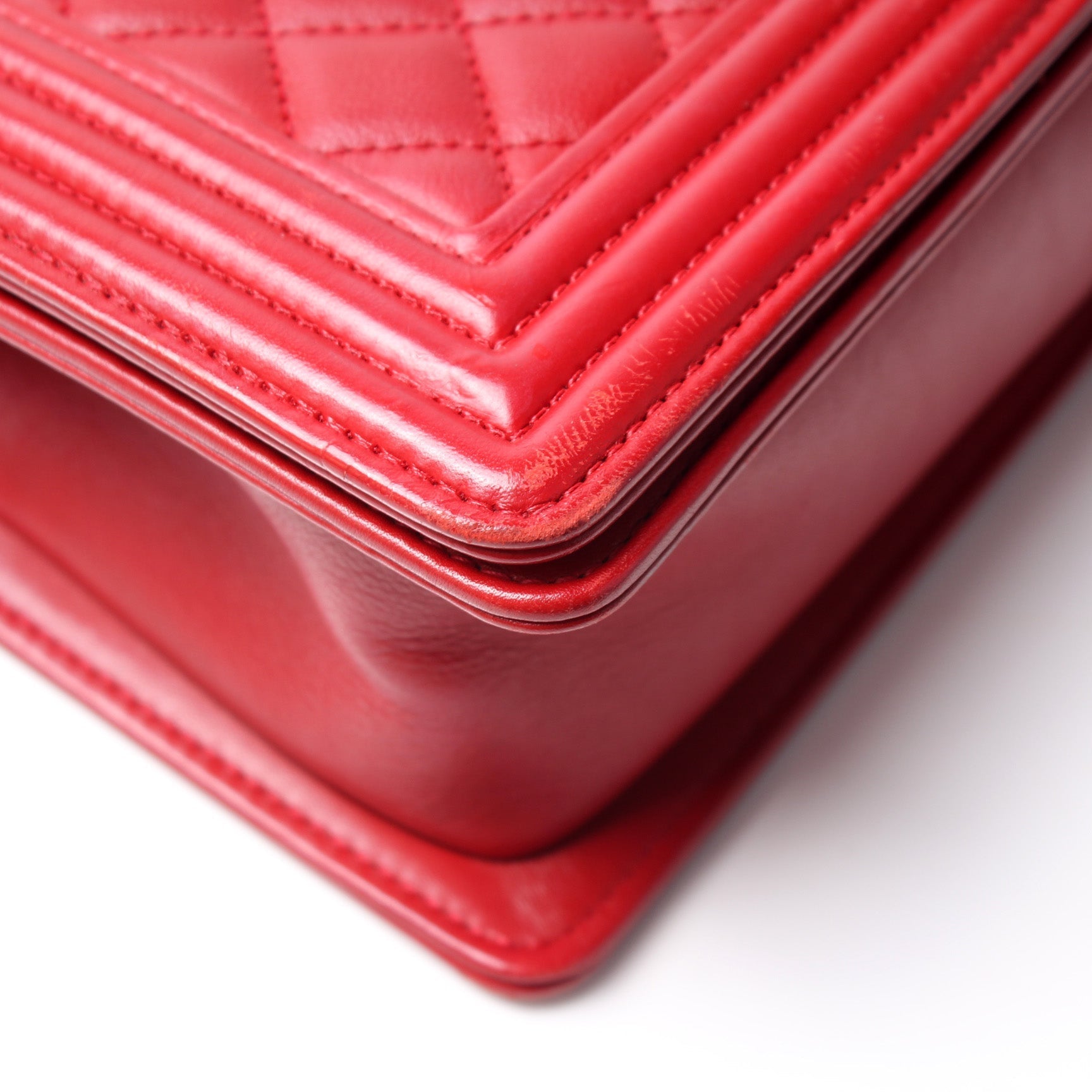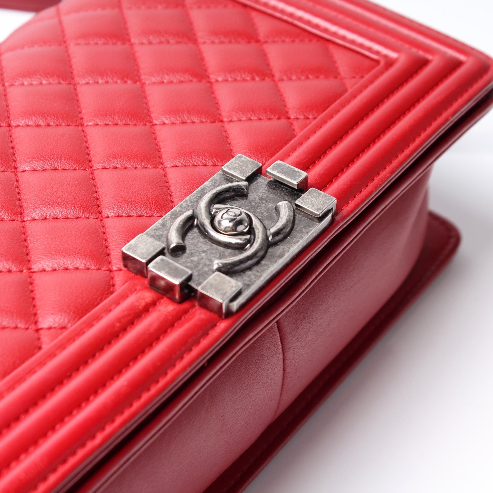 This Chanel Medium New Boy Flapis eye catching bag. The exterior is in the classic Chanel lambskin leather.