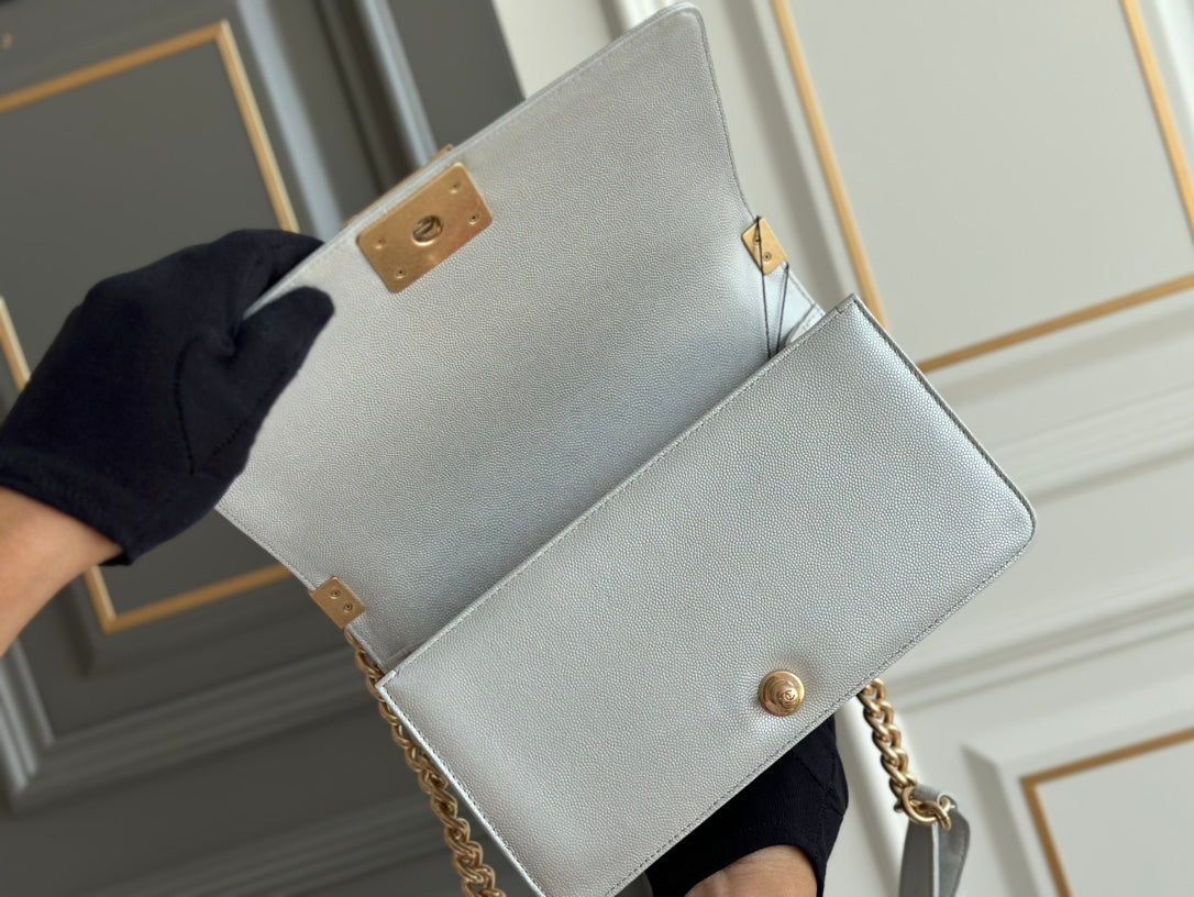 CHANEL boy medium 25 grey quilted caviar aged gold hardware
