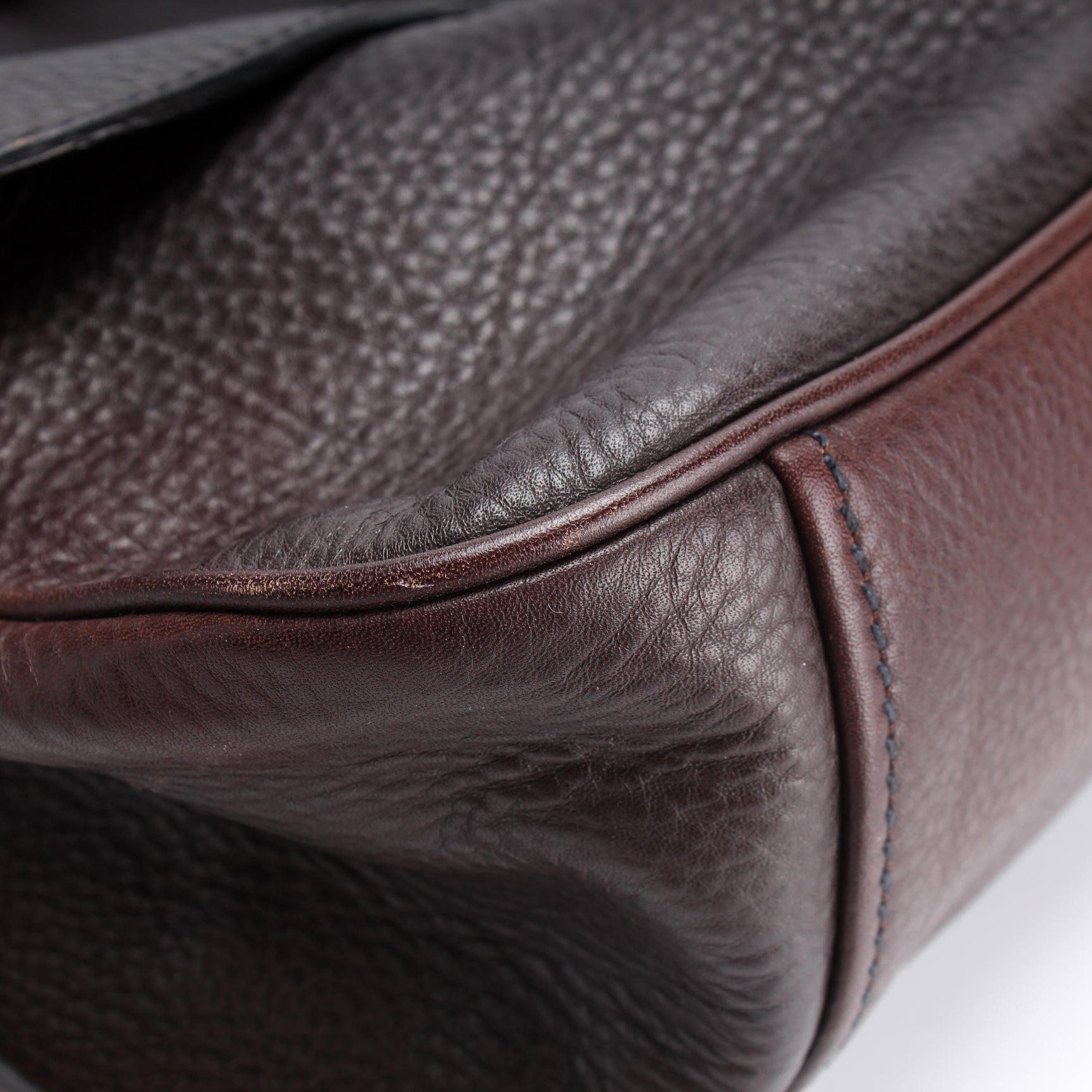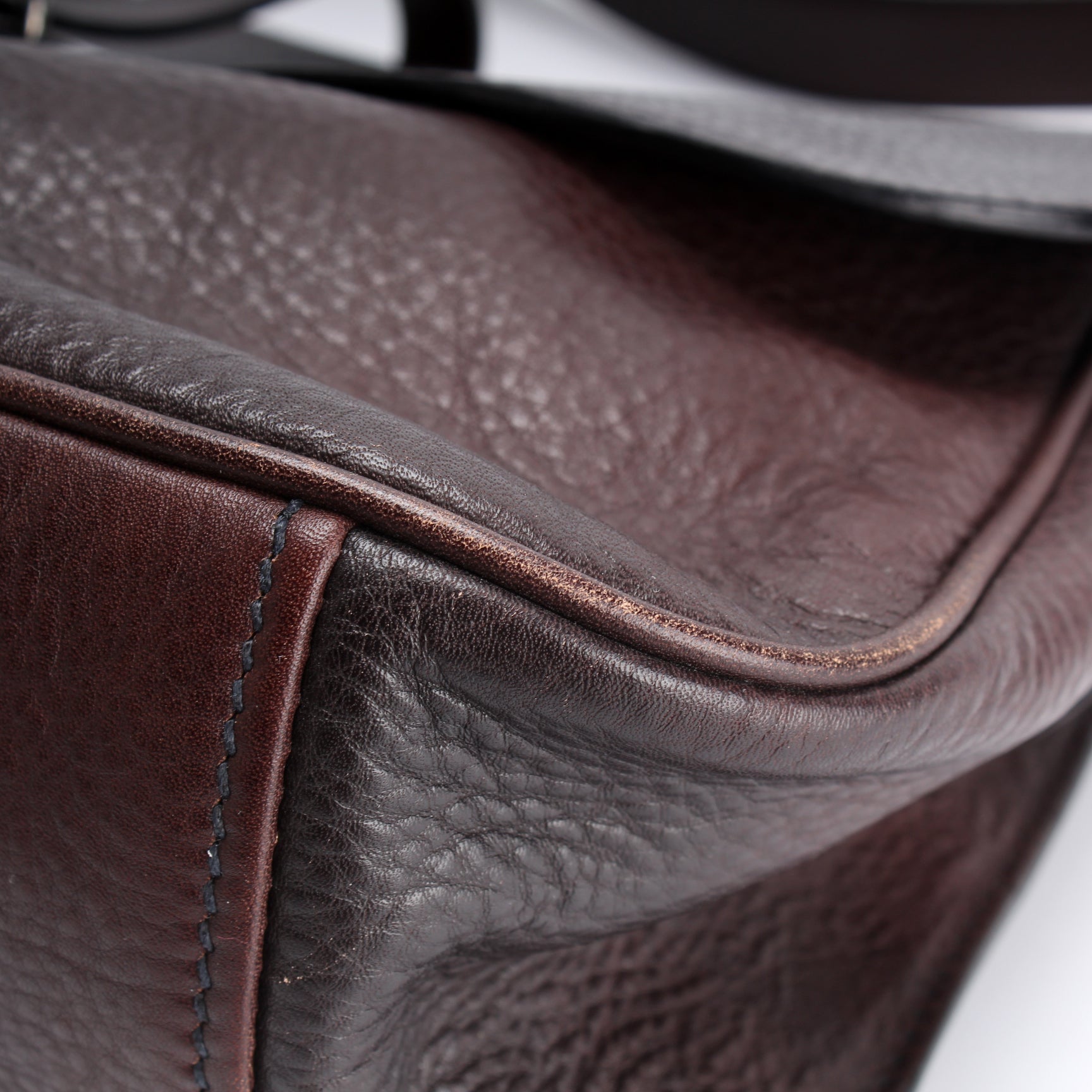 Exterior: The exterior leather is free of any rips or cracks. The corners show minor wear.