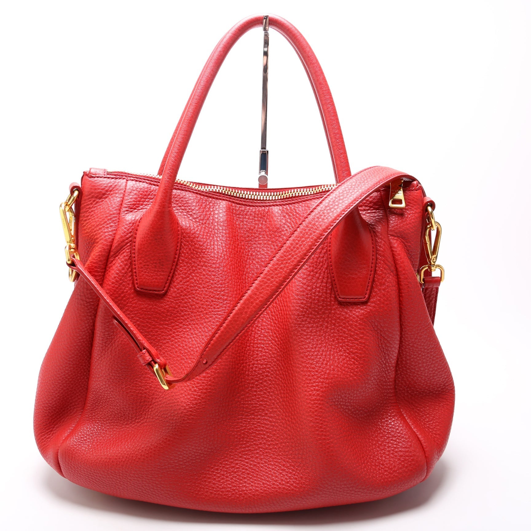 This Prada Vitello Daino Sacca 2 Maniciis eye catching bag.