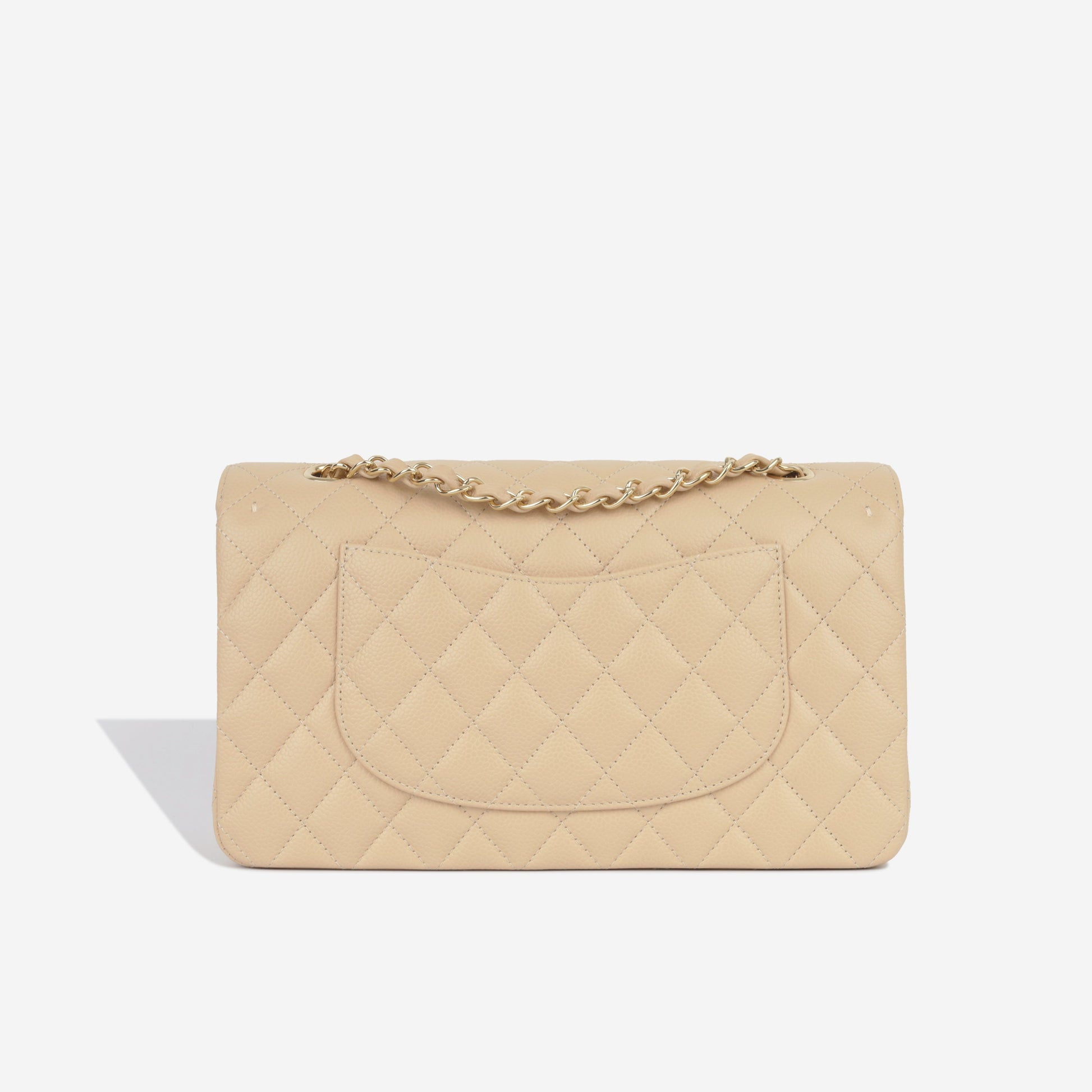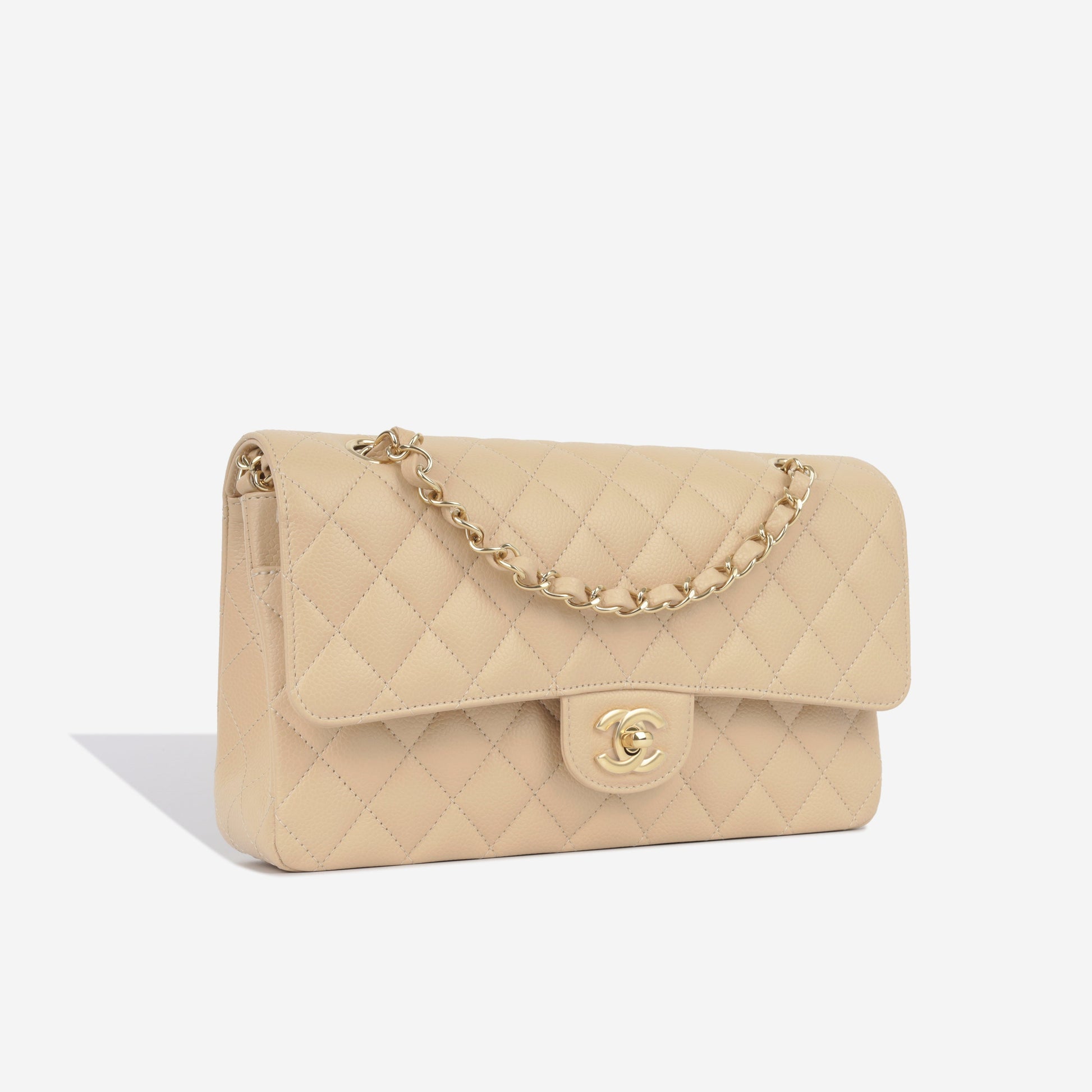 This stunning and iconic piece from Chanel is an absolute must-have for any woman with a love for all things Chanel. Featuring an eye-catching double C logo in champagne gold, this classic flap bag is sure to make heads turn wherever you go. Given their timeless design and exquisite craftsmanship, classic flaps make amazing investment pieces as they rarely cease to lose their value.