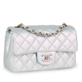 Hello gorgeous...uh...we mean flawless. The mini rectangle flap bag is...an absolute vision. We love her, to say the very least. Crafted from stunning iridescent baby blue leather with silver tone hardware, this perfect little baby is one in a million. The perfect accessory for basically anything, this mini Chanel is the ideal compliment to any outfit for any occasion. Wear her with a neutral cocktail dress and a pair of heels, or with black trousers with a silk blouse - no matter what, this gorgeous bag is a suitable compliment. I mean, you can basically wear a plastic bag and you'll still look bomb with the mini rectangle by your side. A bag you'll wear and love forever, investing in a Classic Flap is always a good idea given that they rarely cease to lose their value.