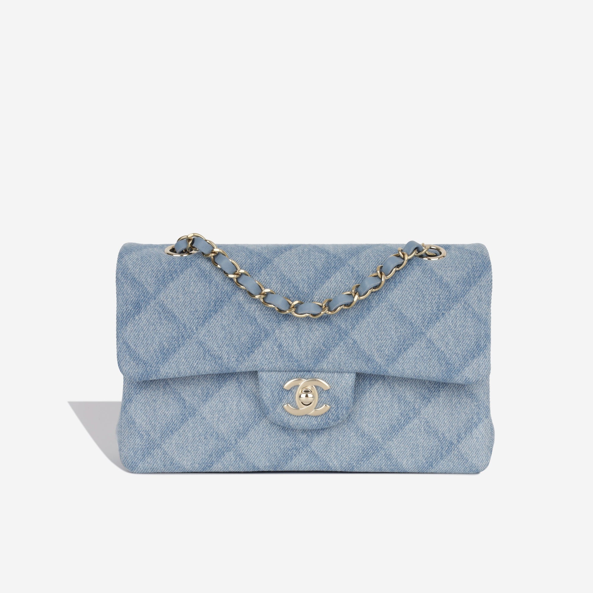Sleek, refined and effortlessly chic, the Classic Small Flap Bag in embodies Chanel’s non-traditionally feminine aesthetic. One of the most iconic handbags in the history of fashion, this bag is an absolute must-have. Crafted in a beautiful denim fabric with imitated quilting and complimented by champagne gold hardware. There is nothing more beautiful than this.