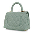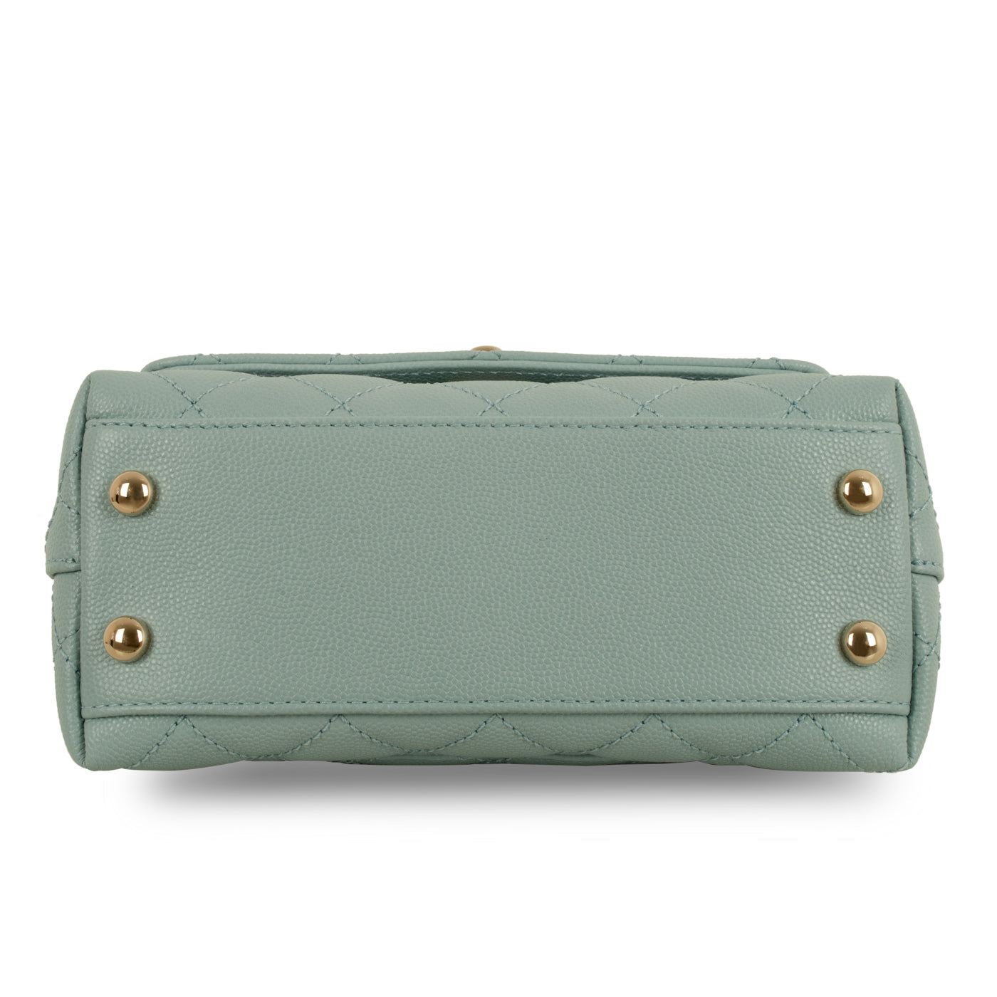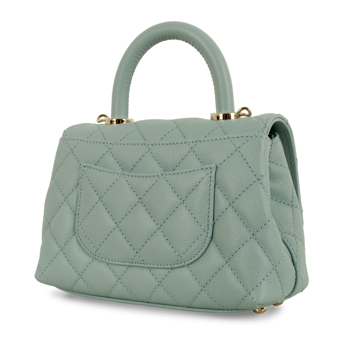 The Mini Coco Handle, crafted from a baby blue caviar leather, is the smallest of the collection - exuding the perfect mix of practical and stylish. Designed for hand held use or for over-the-shoulder wear with the very convenient removable strap. This Chanel may be a mini, but it comes with two compartments and includes two extra pockets. Chic and sweet, this Chanel is a delightful edition to any bag-lovers wardrobe.