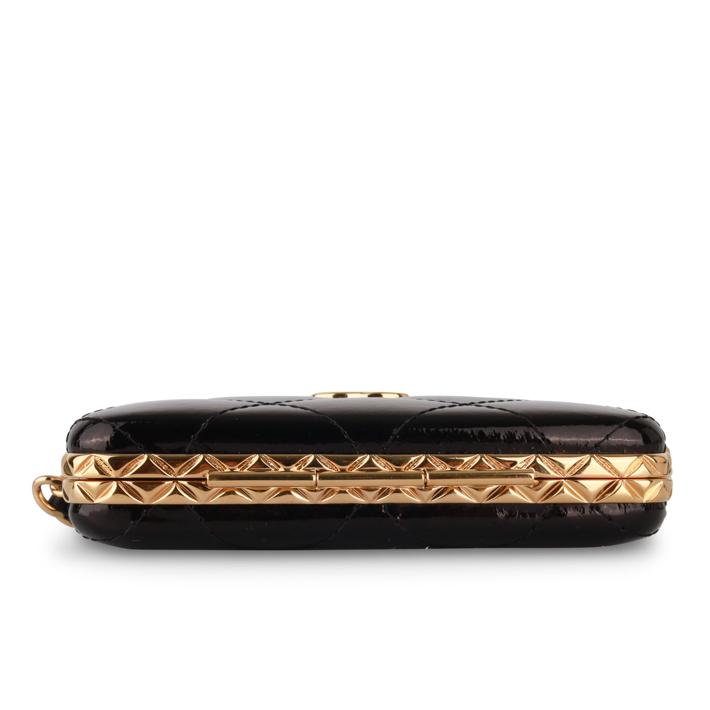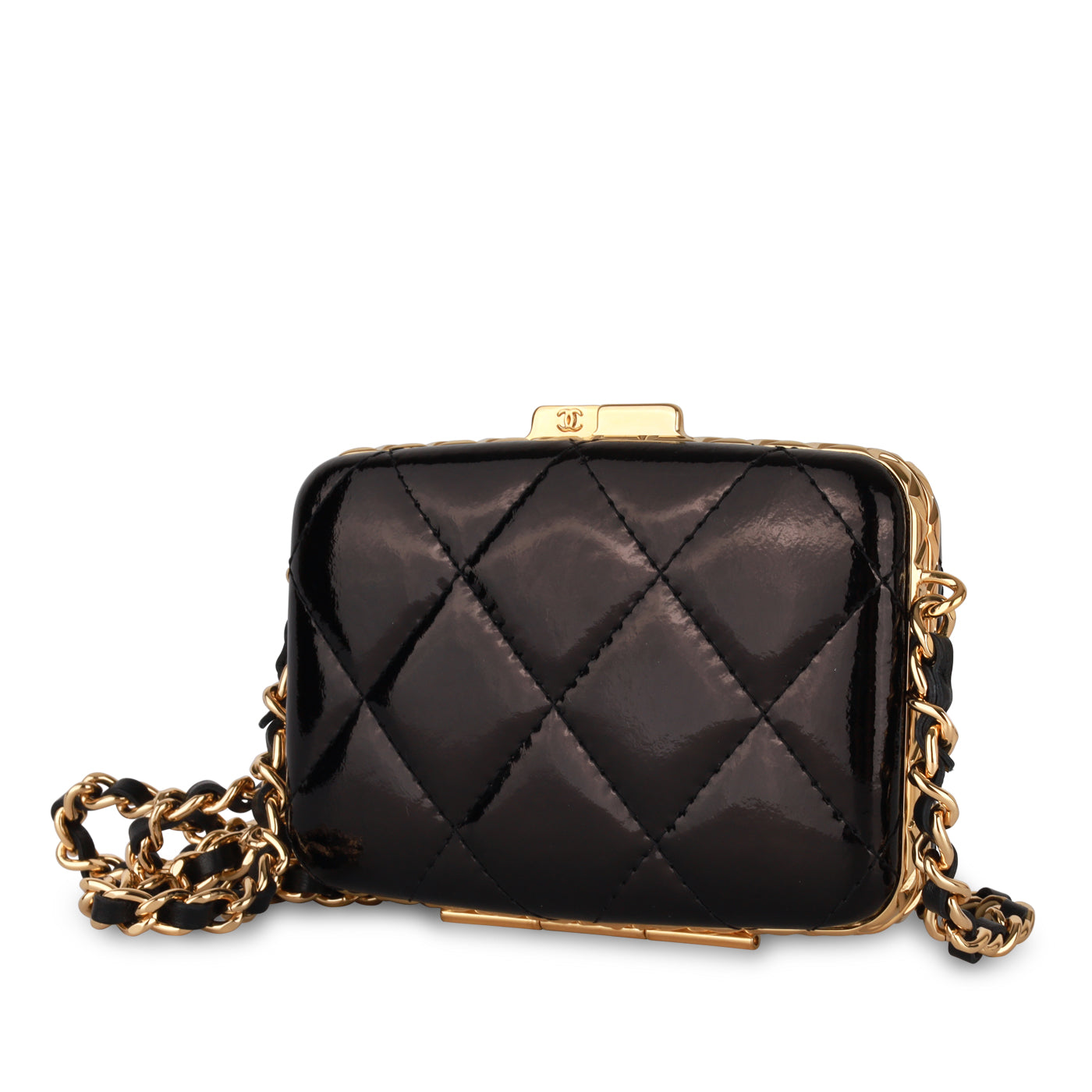 - Black patent quilted leather