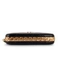 Crafted from black patent leather and accentuated with gold hardware, this box clutch on chain is fresh from 2021. This bag has a vintage feel and eludes a classy and elegant aesthetic. Small enough to fit in your bare essentials, this is the perfect bag for the evening.