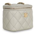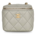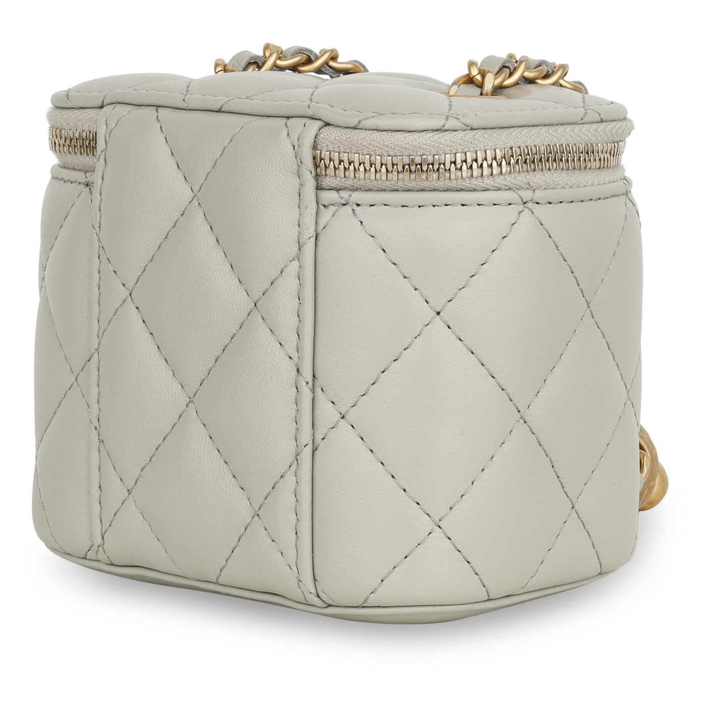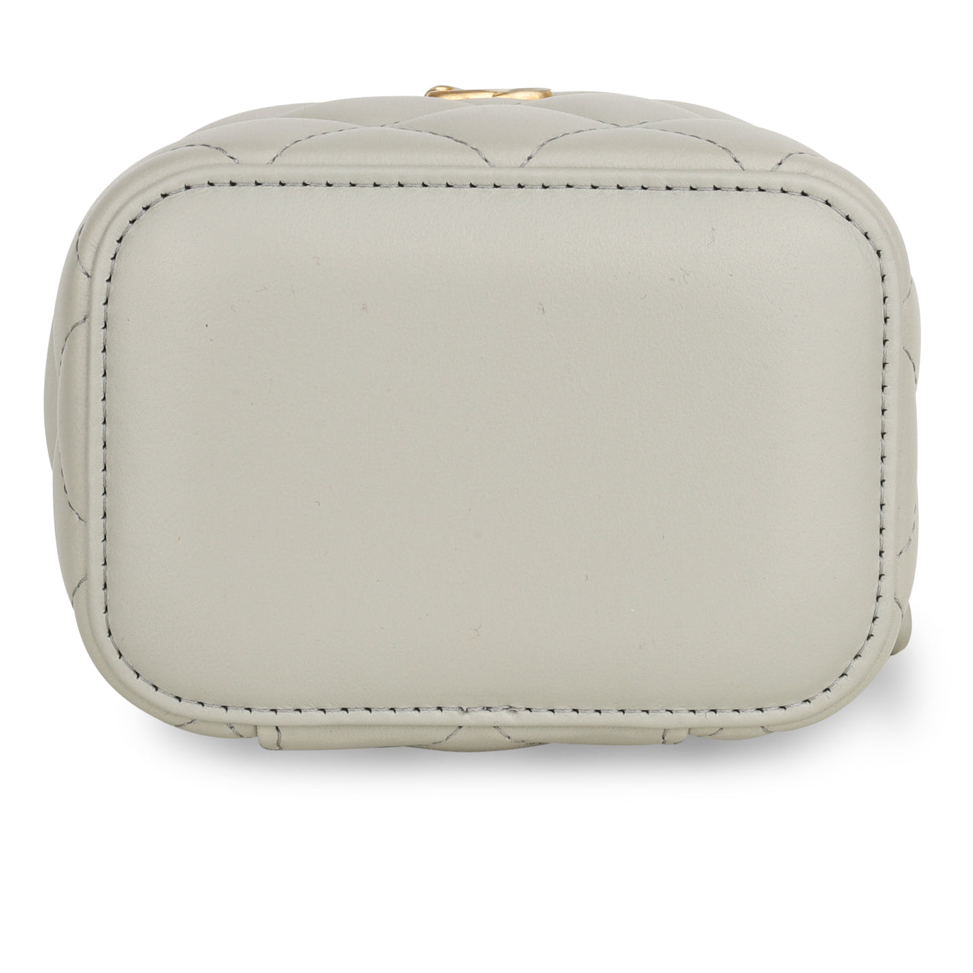Primarily developed for storing your tiny beauty essentials and other small necessities, the vanity case has come a rather long way since its birth. With the “mini bag” remaining at the forefront of fashion accessory trends, this little munchkin is the farthest thing from just a functional case. This vanity case is presented in gorgeous grey lambskin leather and complimentary gold toned hardware.