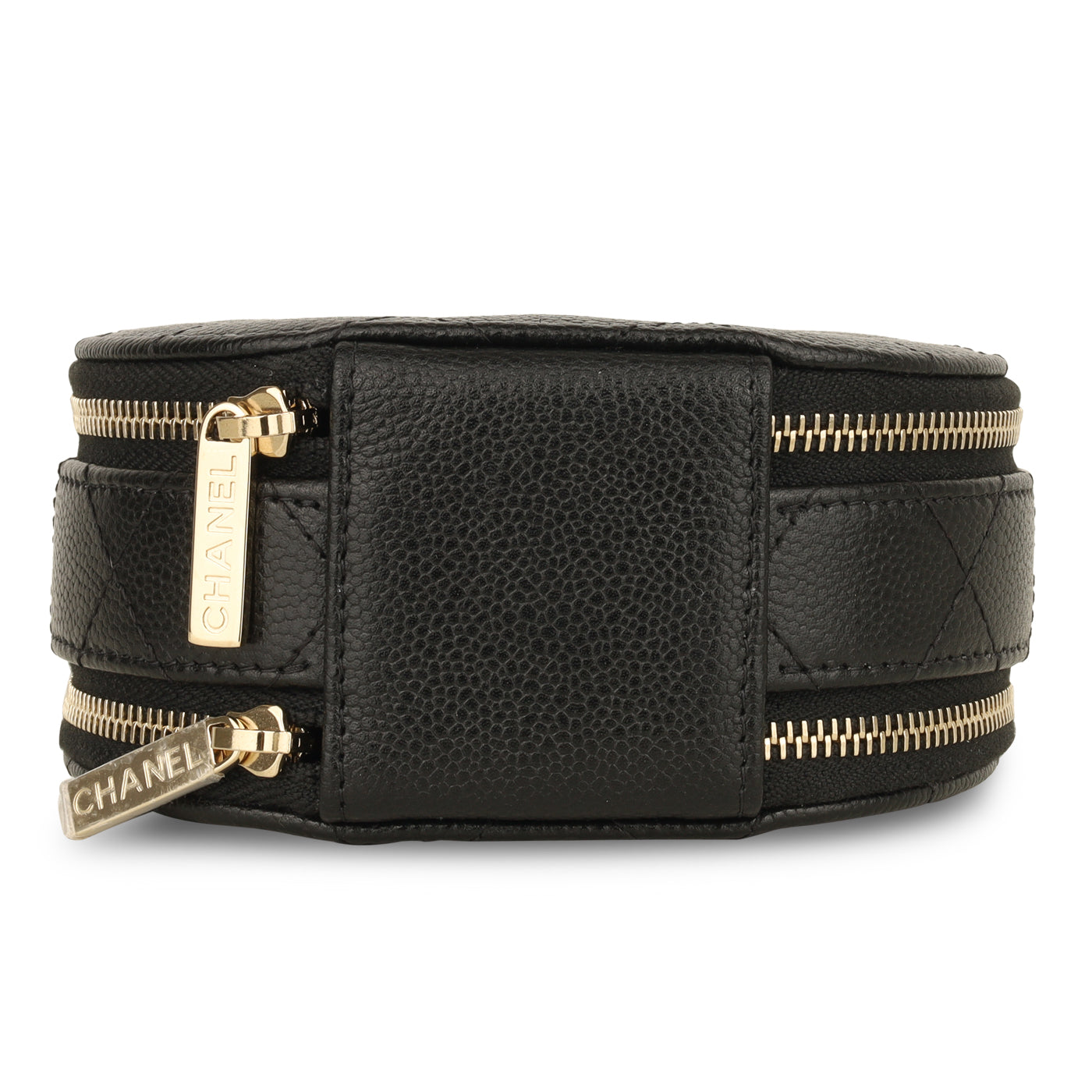 Primarily developed for storing your tiny beauty essentials and other small necessities, the vanity case has come a rather long way since its birth. With the “mini bag” remaining at the forefront of fashion accessory trends, this little munchkin is the farthest thing from just a functional case. This vanity case is crafted in black caviar hardware and complimented with champagne gold toned hardware.