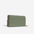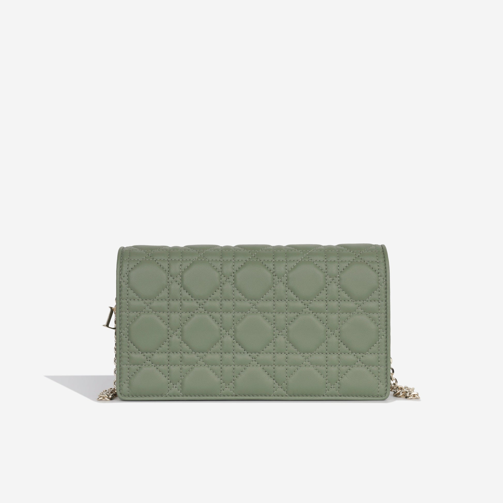 The Lady Dior Pouch is a little clone of the Lady Dior handbag, and is created by using the same cannage stitching. The bag is presented in a beautiful sage green, crafted in lambskin which is soft and supple. The intricate stitching is inspired by the rattan style Napoleon III chair and only reinforces sophistication and luxury.