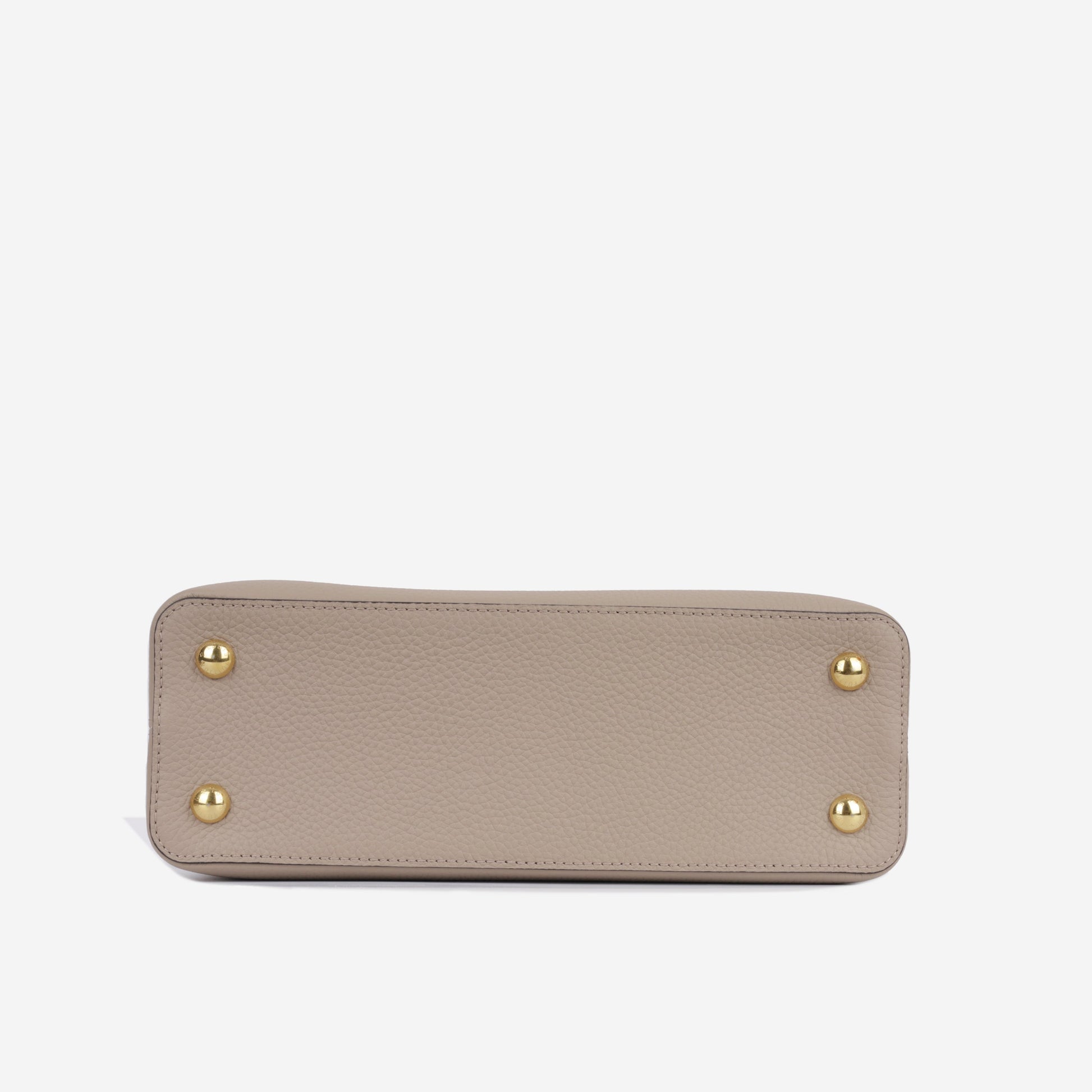 The Capucines MM by Louis Vuitton is the perfect city chic bag. With modern lines and bold statement colours, this will stand out from the crowd. The Capucines line takes its name from the Rue des Capucines in Paris, where Louis Vuitton opened his first store in 1854. Wear the flap on the outside to show the monogram flower, or tuck the flap into the top compartment to reveal the LV initials in stunning silver hardware.