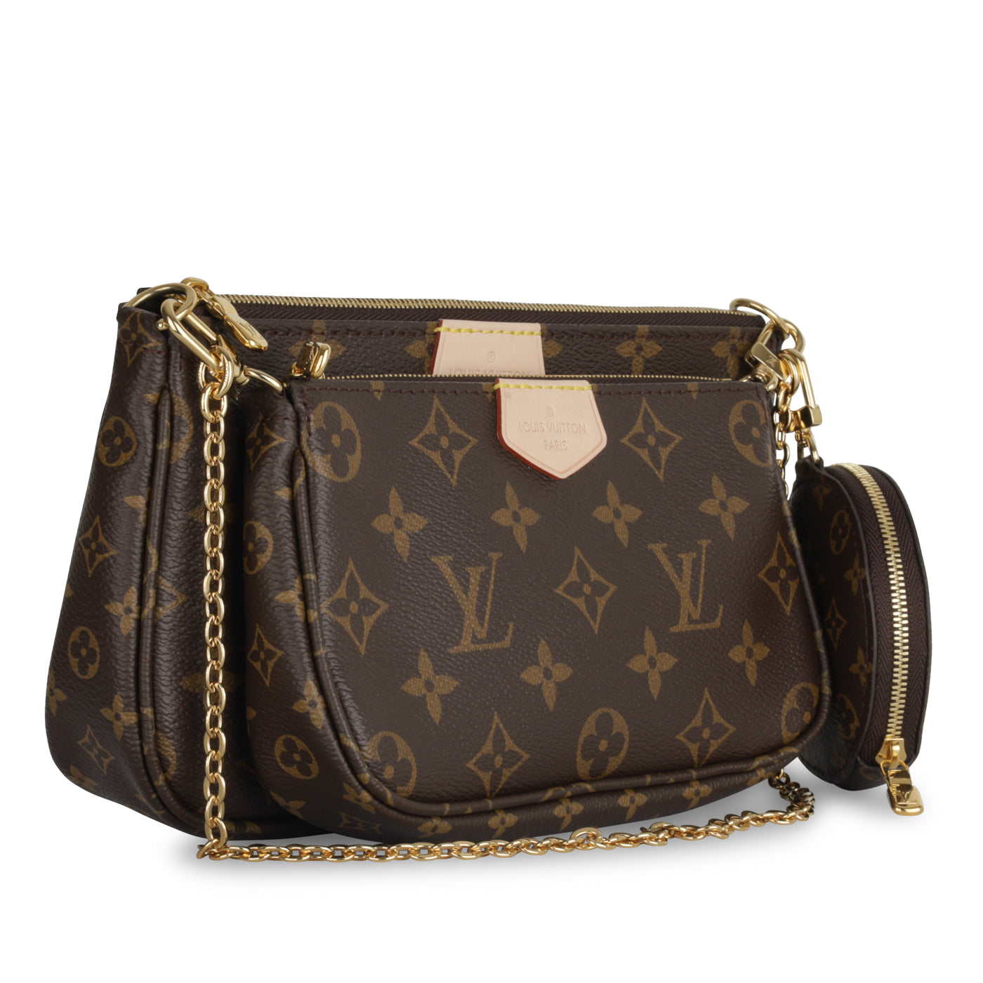 - Mini Pochette with chain strap attached to a larger Pochette