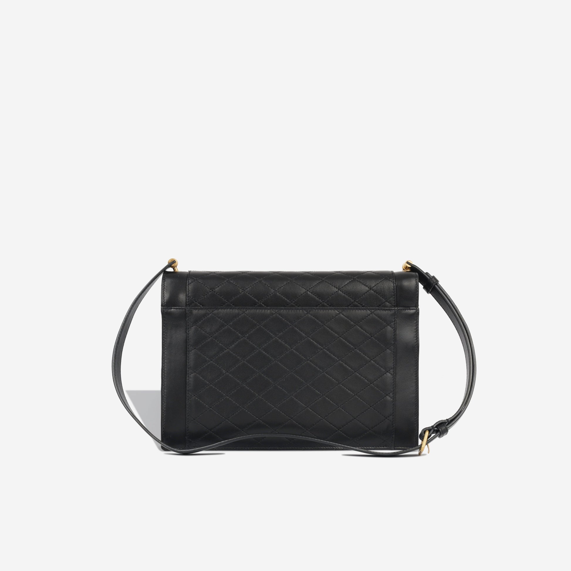 Perfect for any woman with a love for luxury, the Gaby Satchel bag is the one for you. Slim, streamline and sophisticated, this bag is crafted in smooth lambskin black leather and complimented by antique gold-tone hardware, this is suitable for every occasion, day or night.