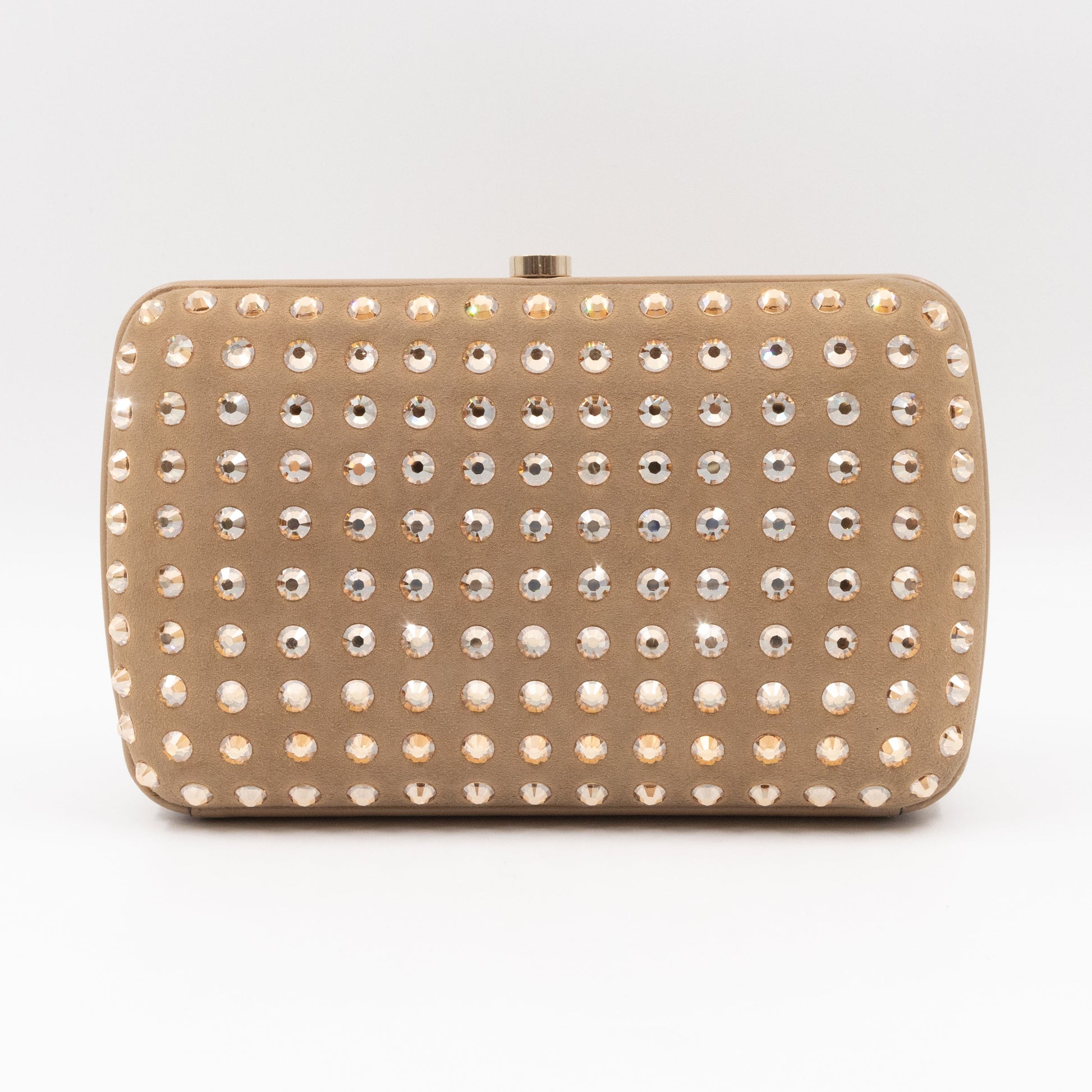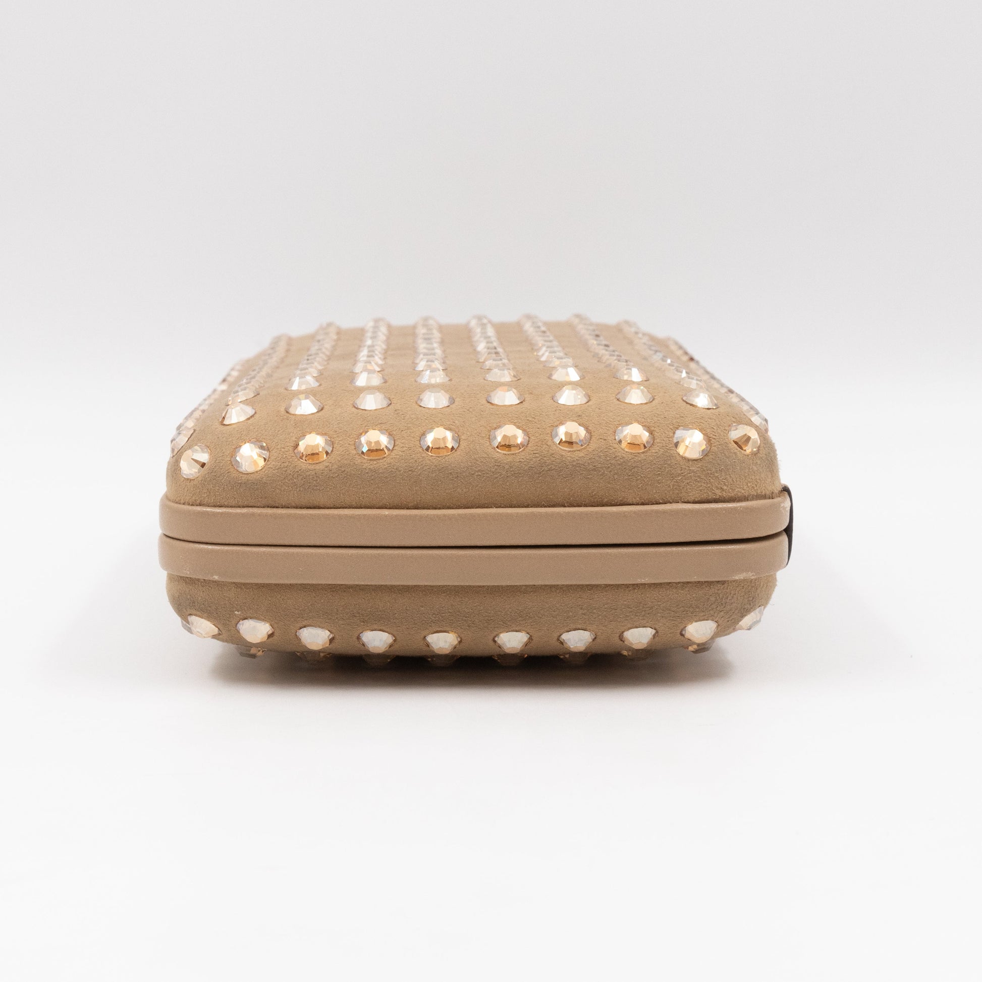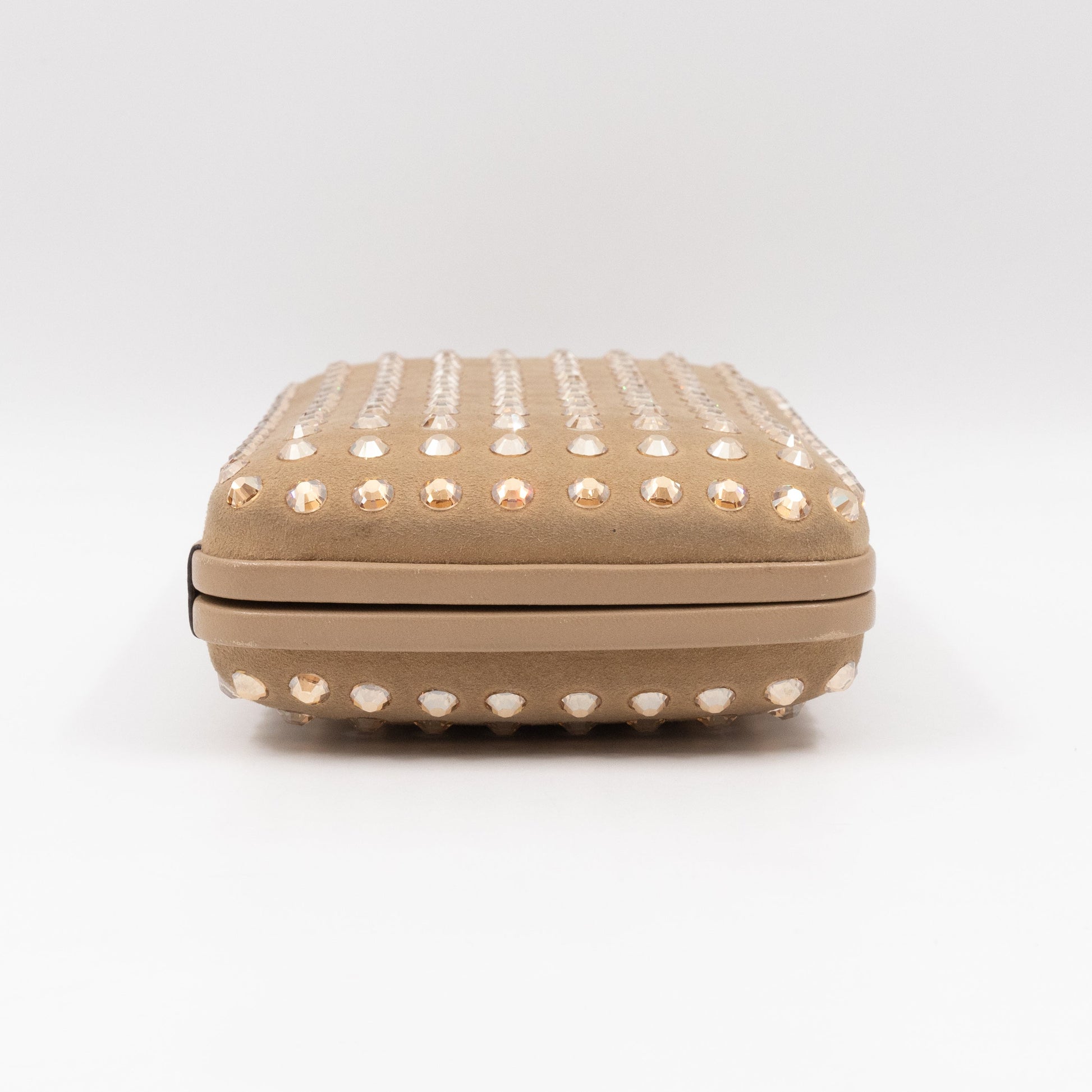 Gucci Broadway Khaki Suede Crystal Embellished Clutch