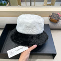 CHANEL BUCKET HAT IN WHITE MIX BLACK LAMB FUR 430218