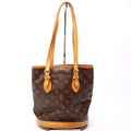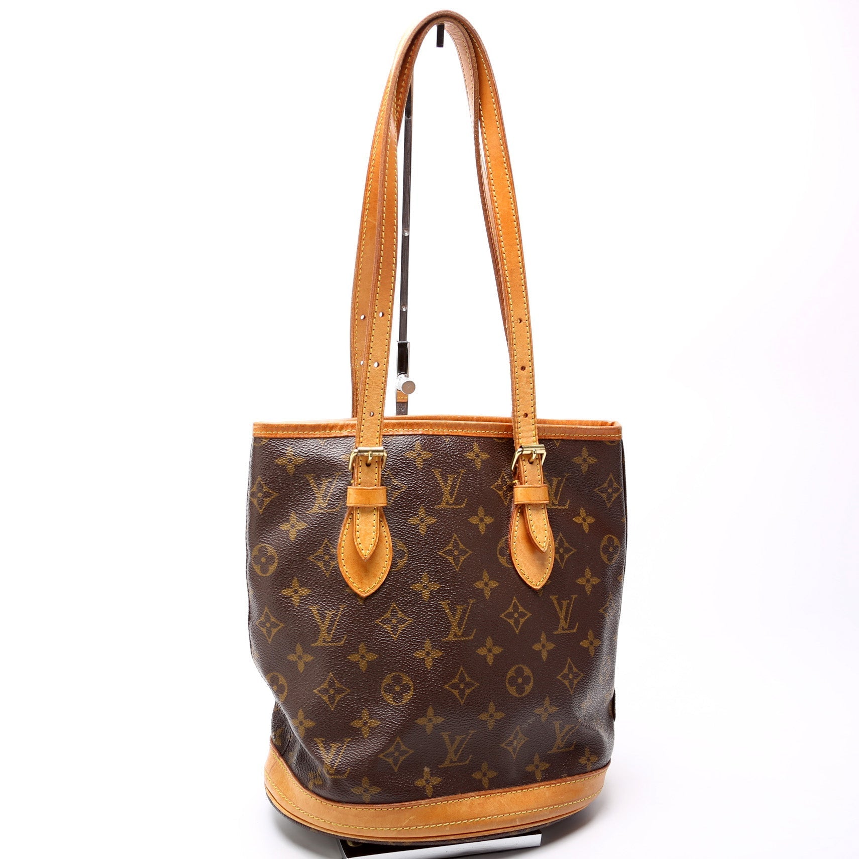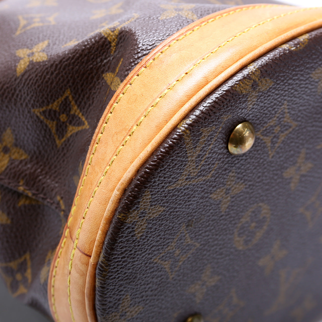 This Louis Vuitton Bucket PMis eye catching bag. The exterior is in the classic Louis Vuitton Monogram coated canvas.