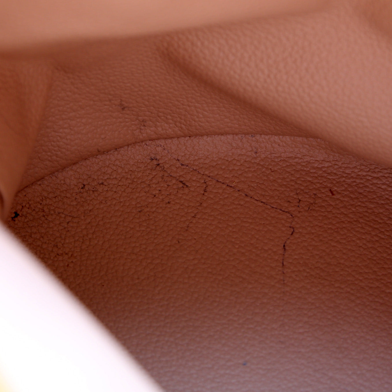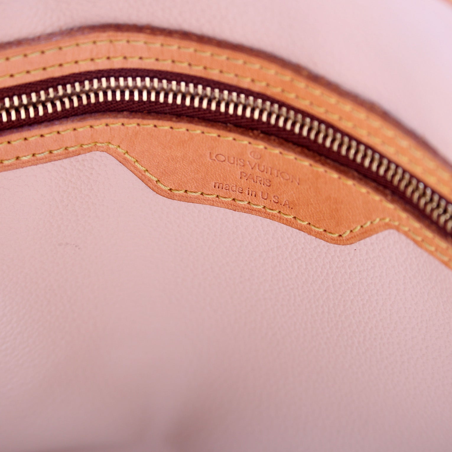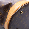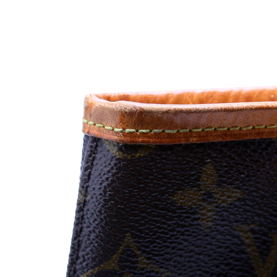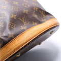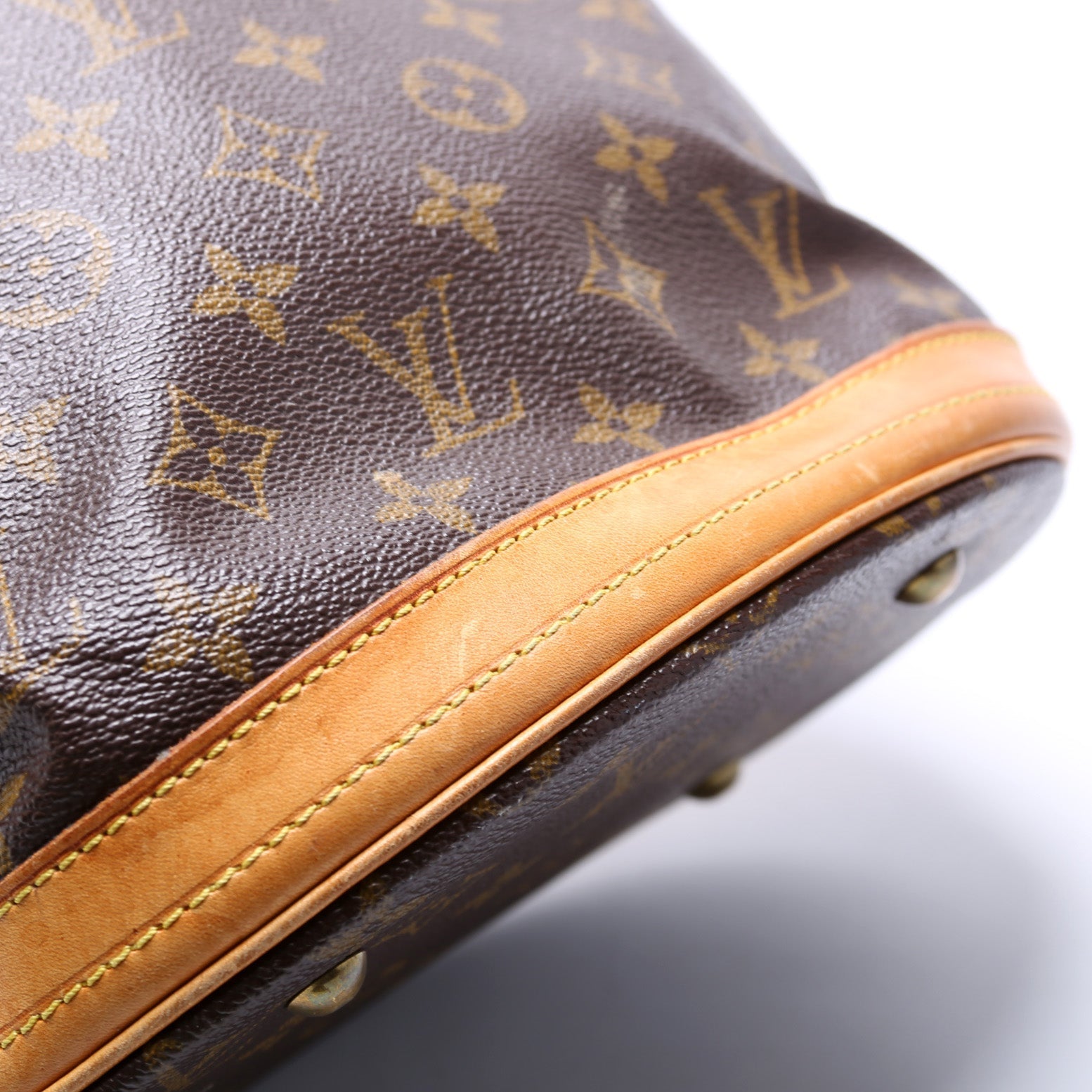 Exterior: The exterior Monogram coated canvas has minor marking. The canvas has an abrasive scuff on the base. The leather trim shows dicsoloration and wear.