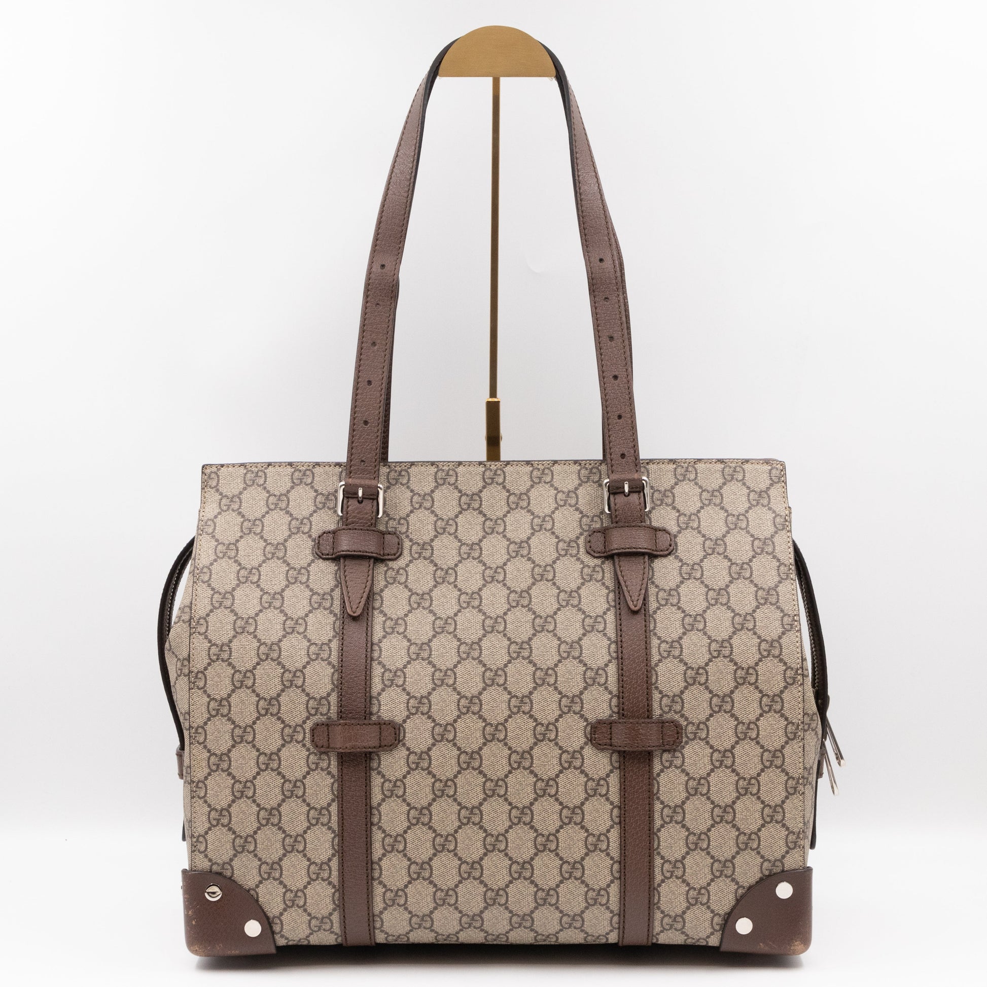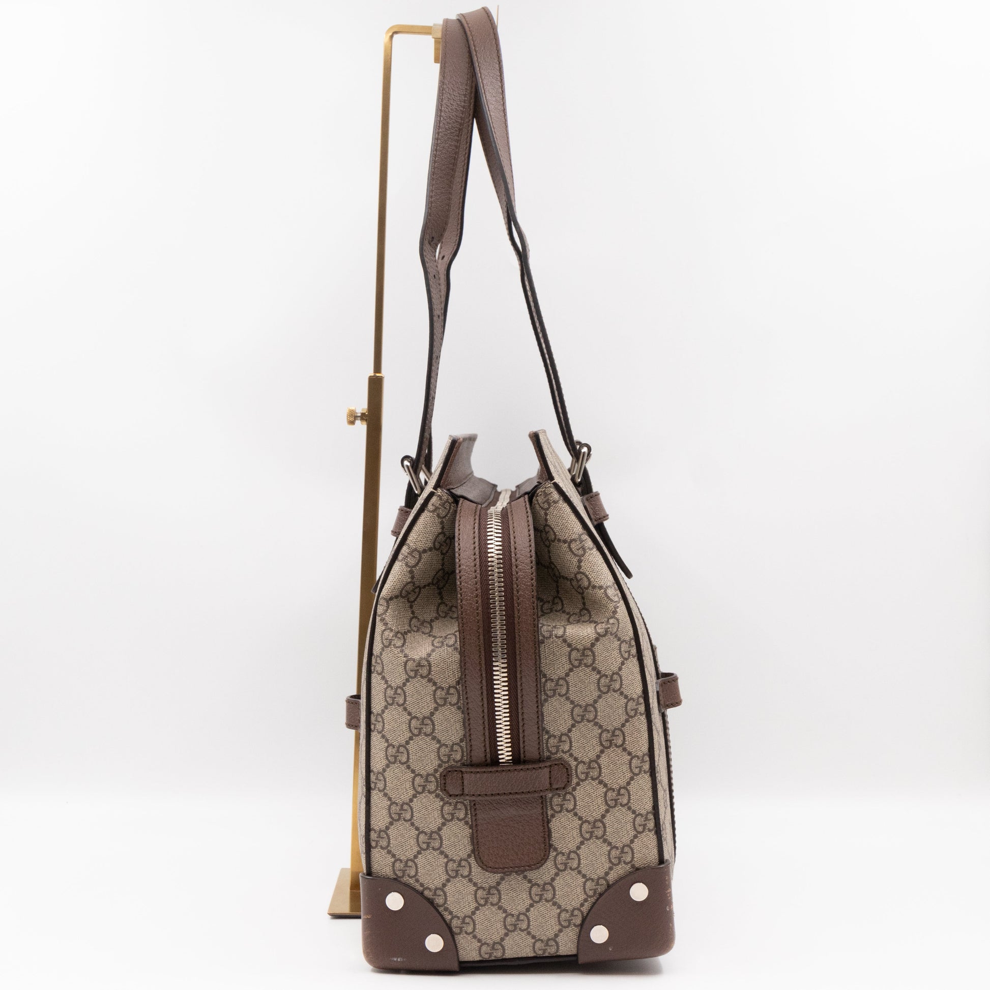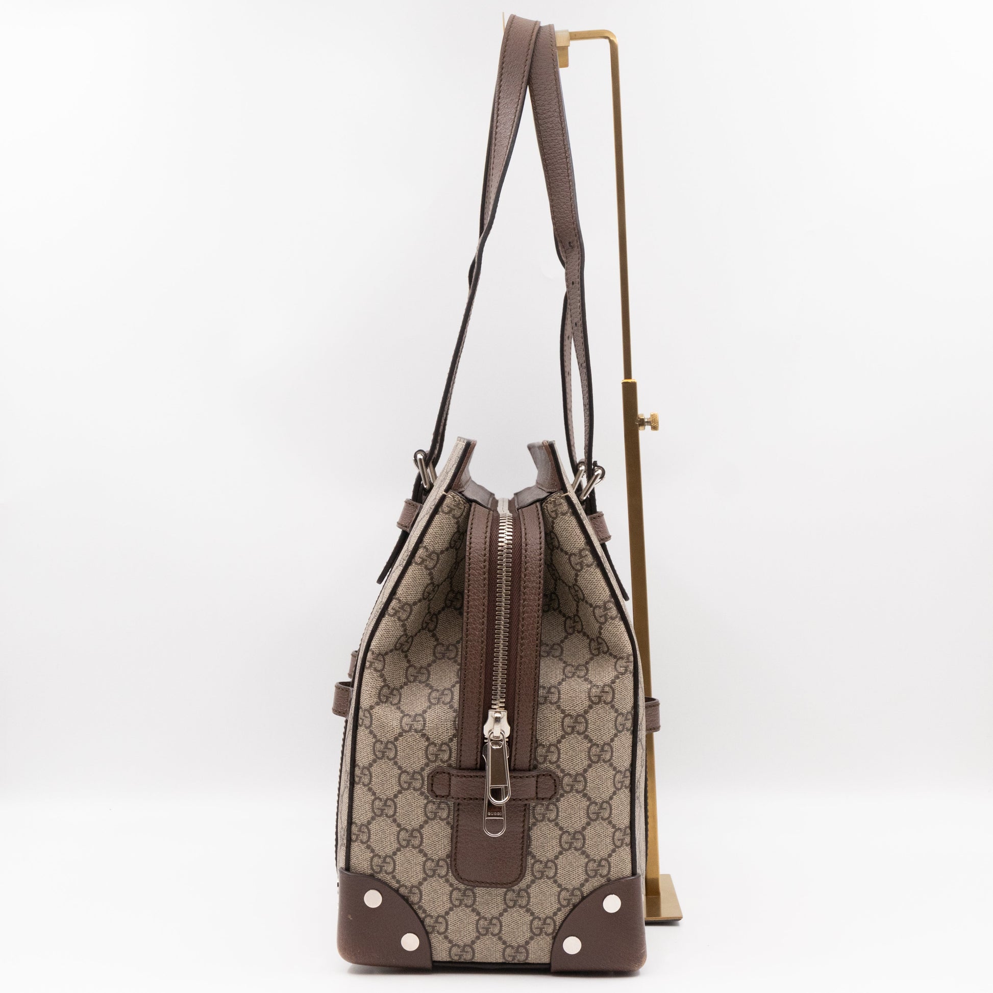 Gucci Buckle Travel Tote GG Supreme Canvas Brown Leather