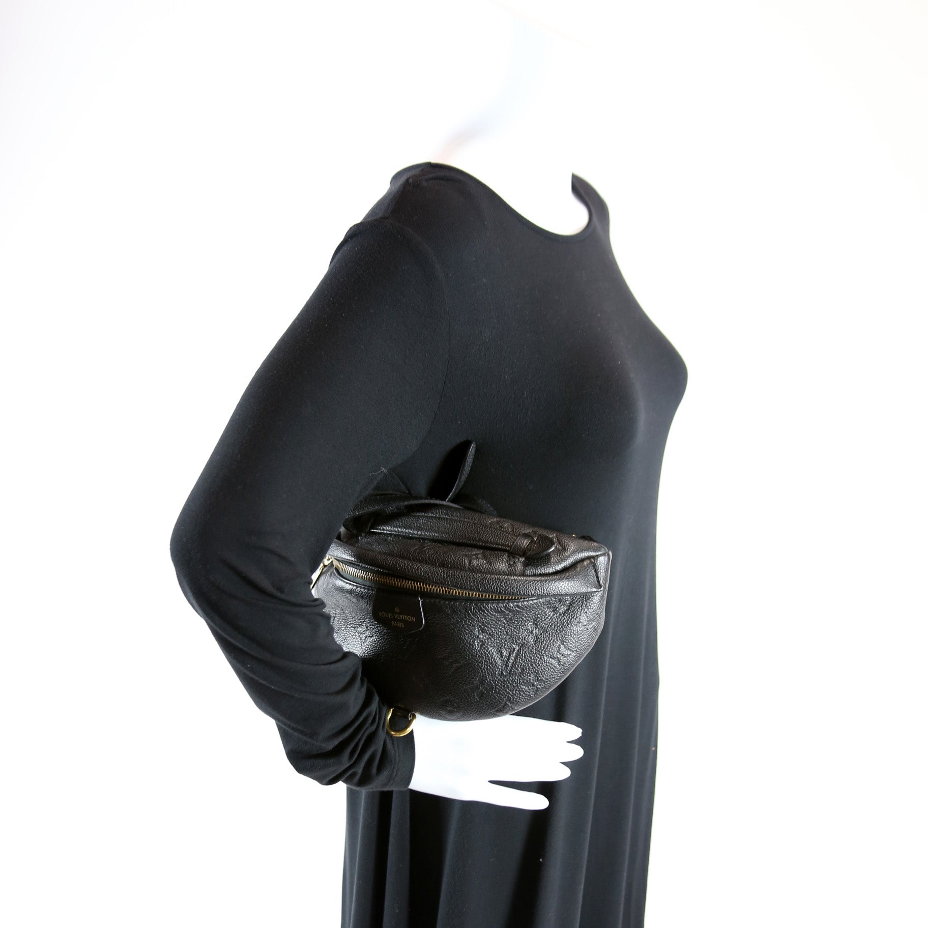 This Louis Vuitton Bumbagis eye catching bag. The exterior is in the classic Louis Vuitton Empreinte leather.