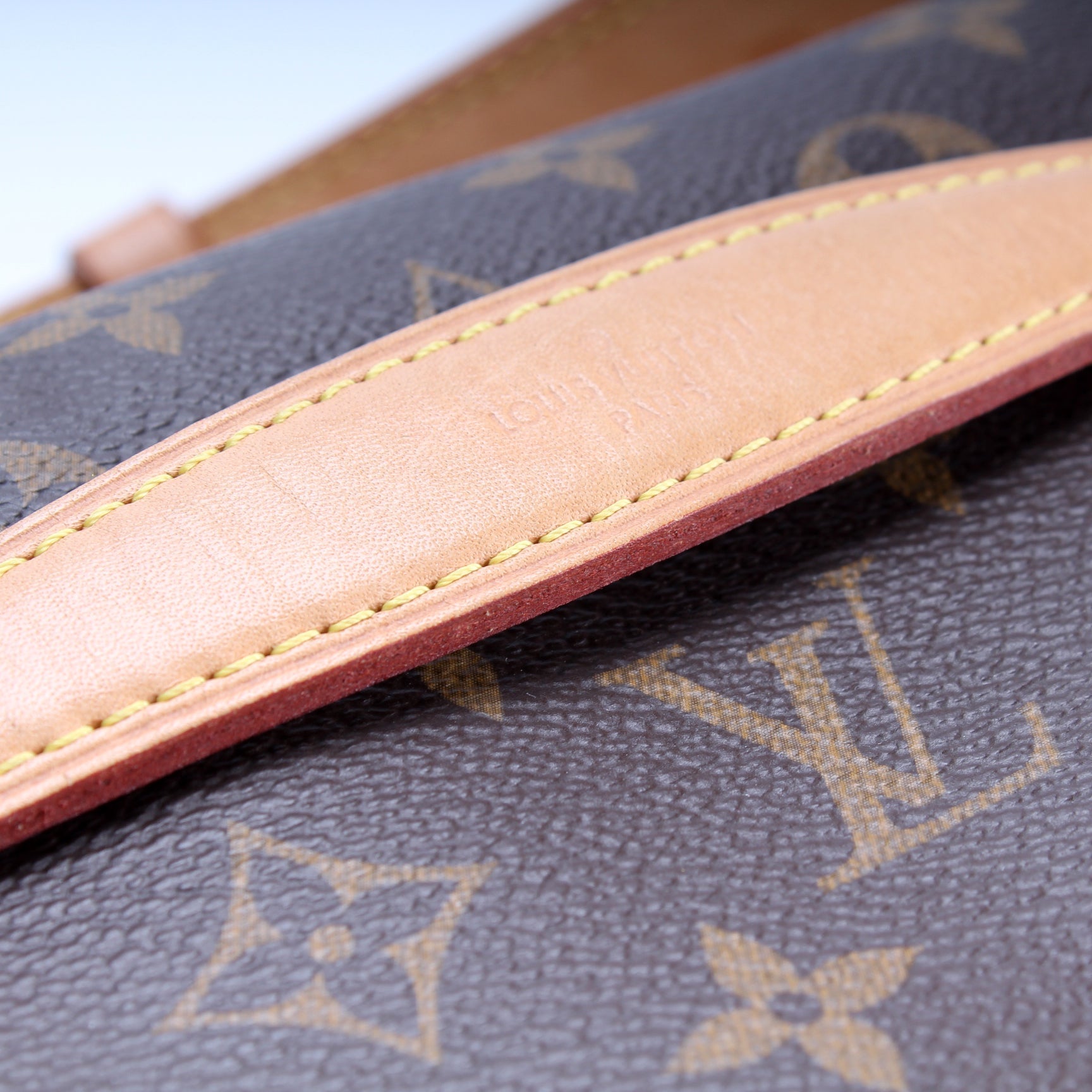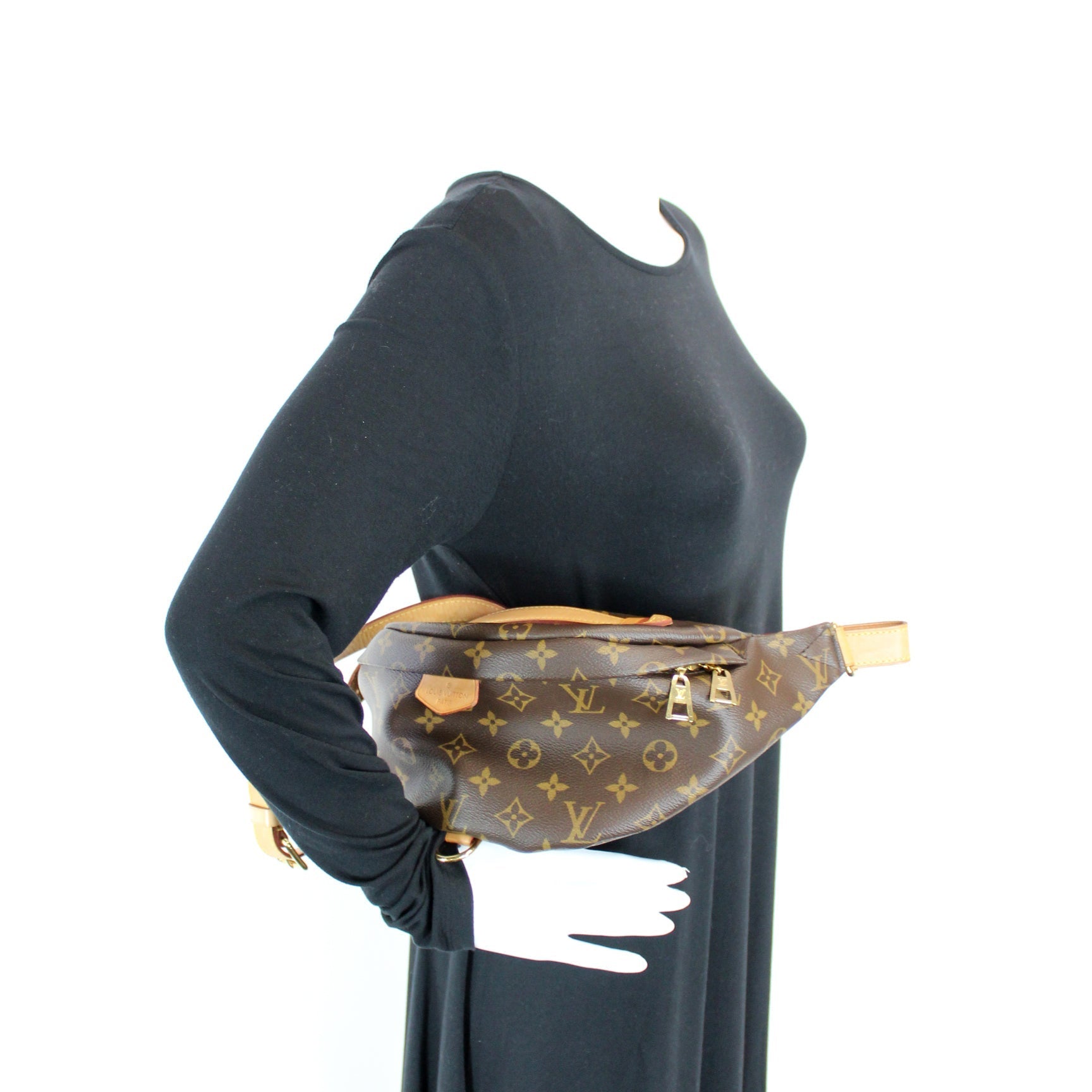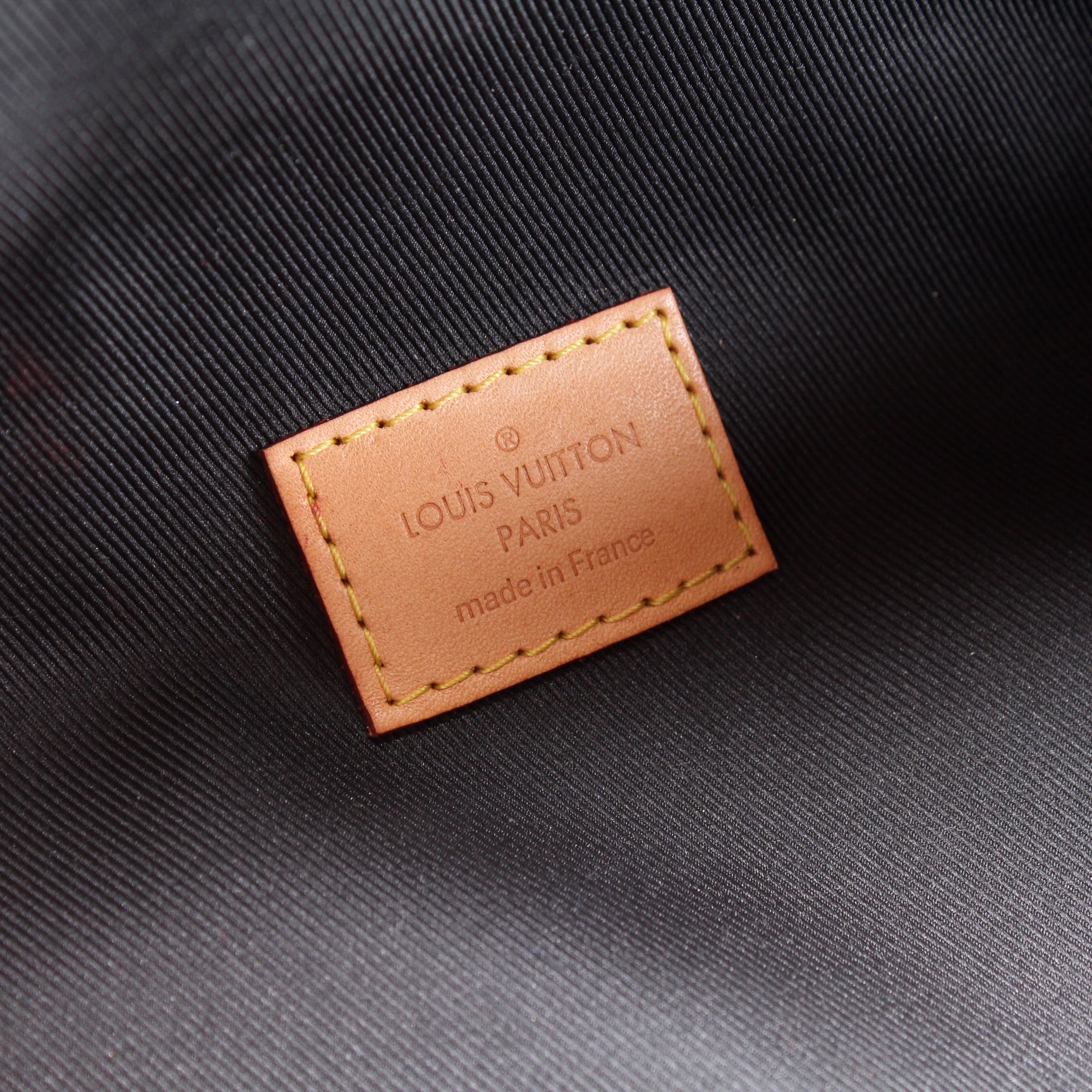 This Louis Vuitton Bumbagis eye catching bag. The exterior is in the classic Louis Vuitton Monogram coated canvas.