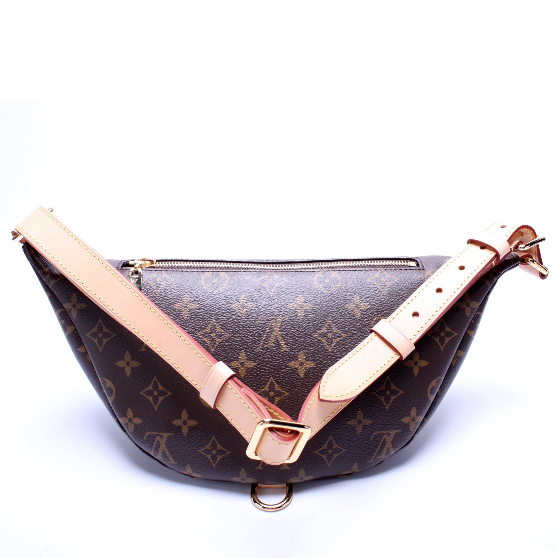 This Louis Vuitton Bumbagis eye catching bag. The exterior is in the classic Louis Vuitton Monogram coated canvas.