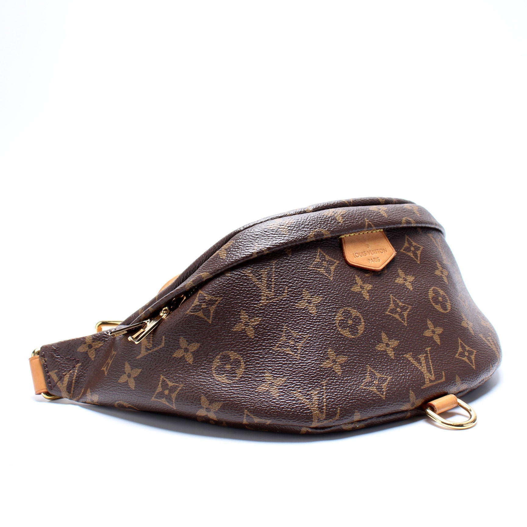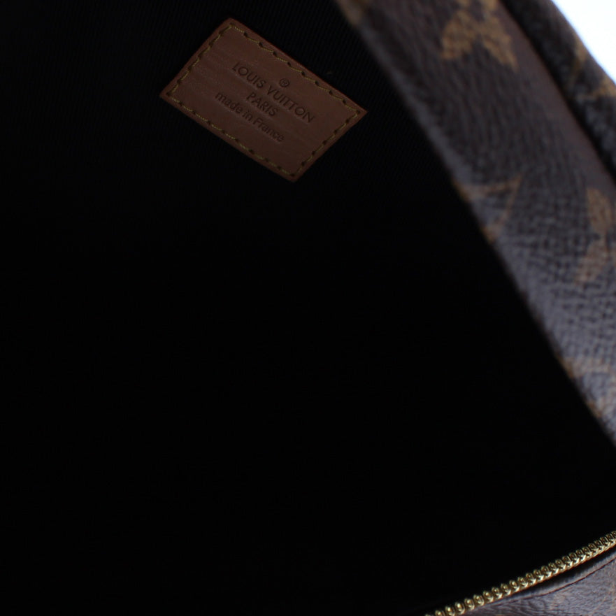 This Louis Vuitton Bumbagis eye catching bag. The exterior is in the classic Louis Vuitton Monogram coated canvas.