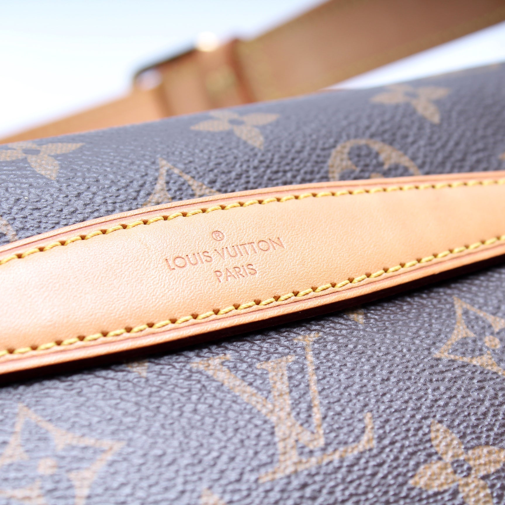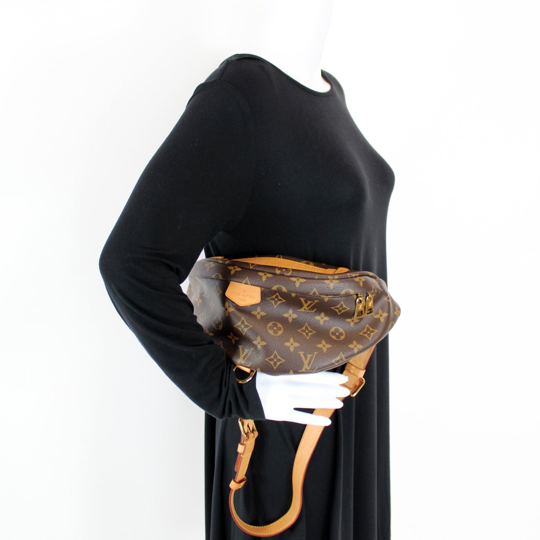 This Louis Vuitton Bumbagis eye catching bag. The exterior is in the classic Louis Vuitton Monogram coated canvas.