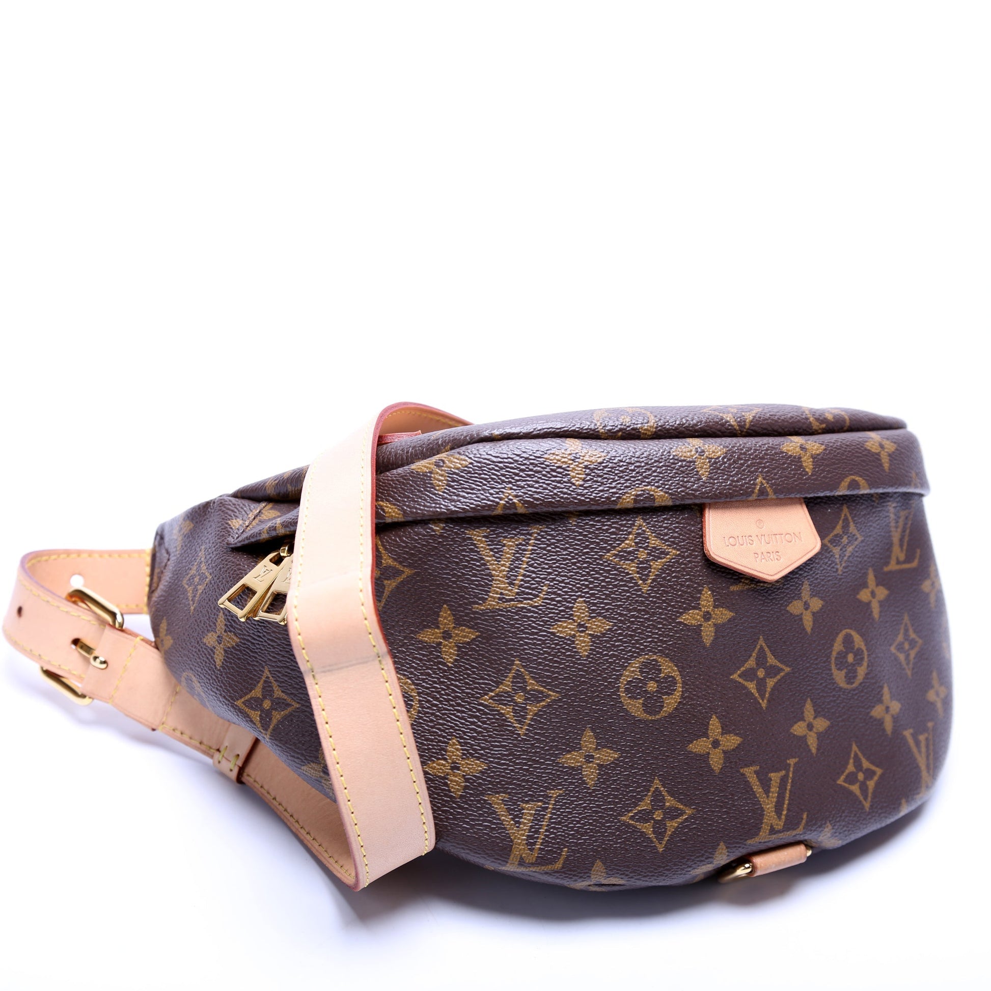 This Louis Vuitton Bumbagis eye catching bag. The exterior is in the classic Louis Vuitton Monogram coated canvas.
