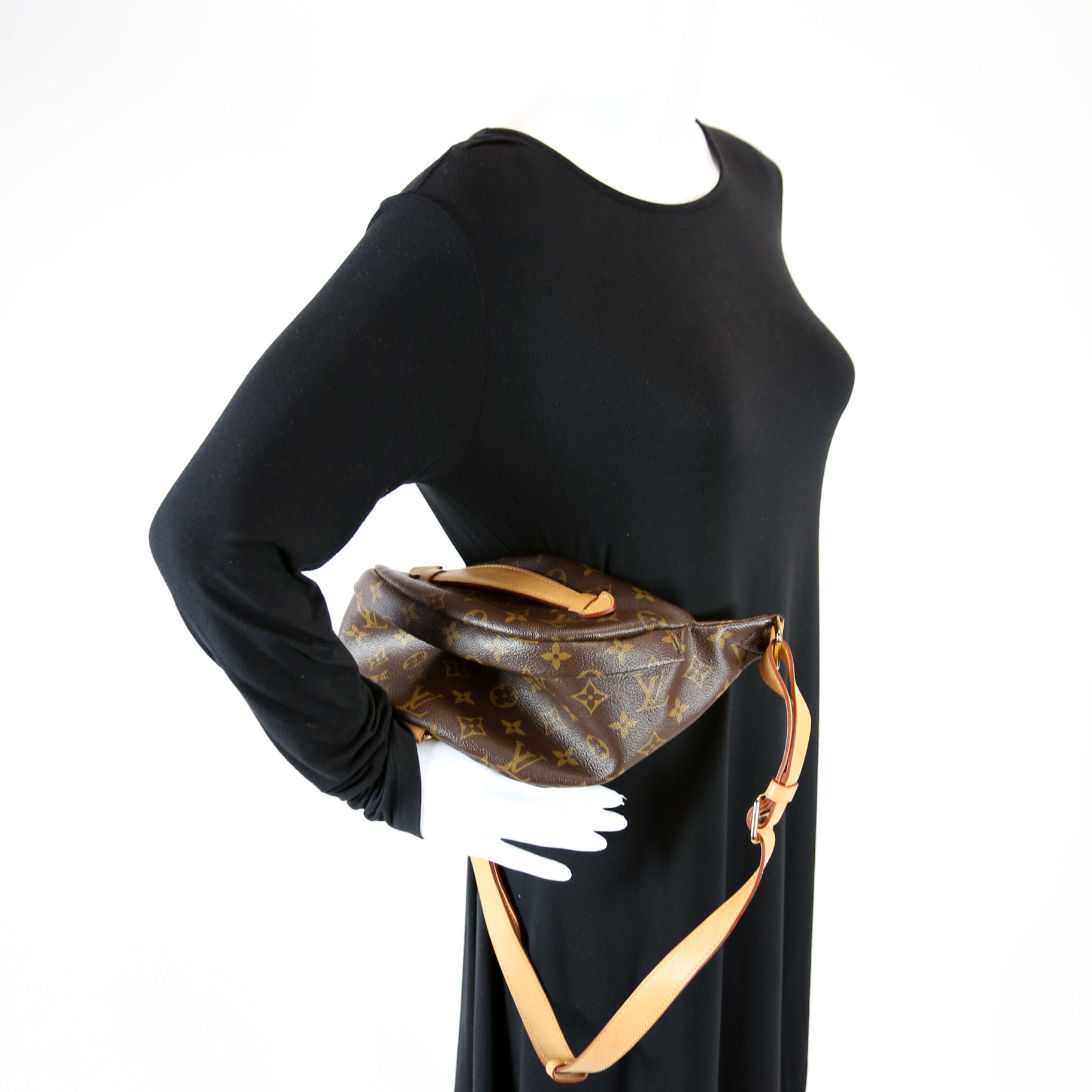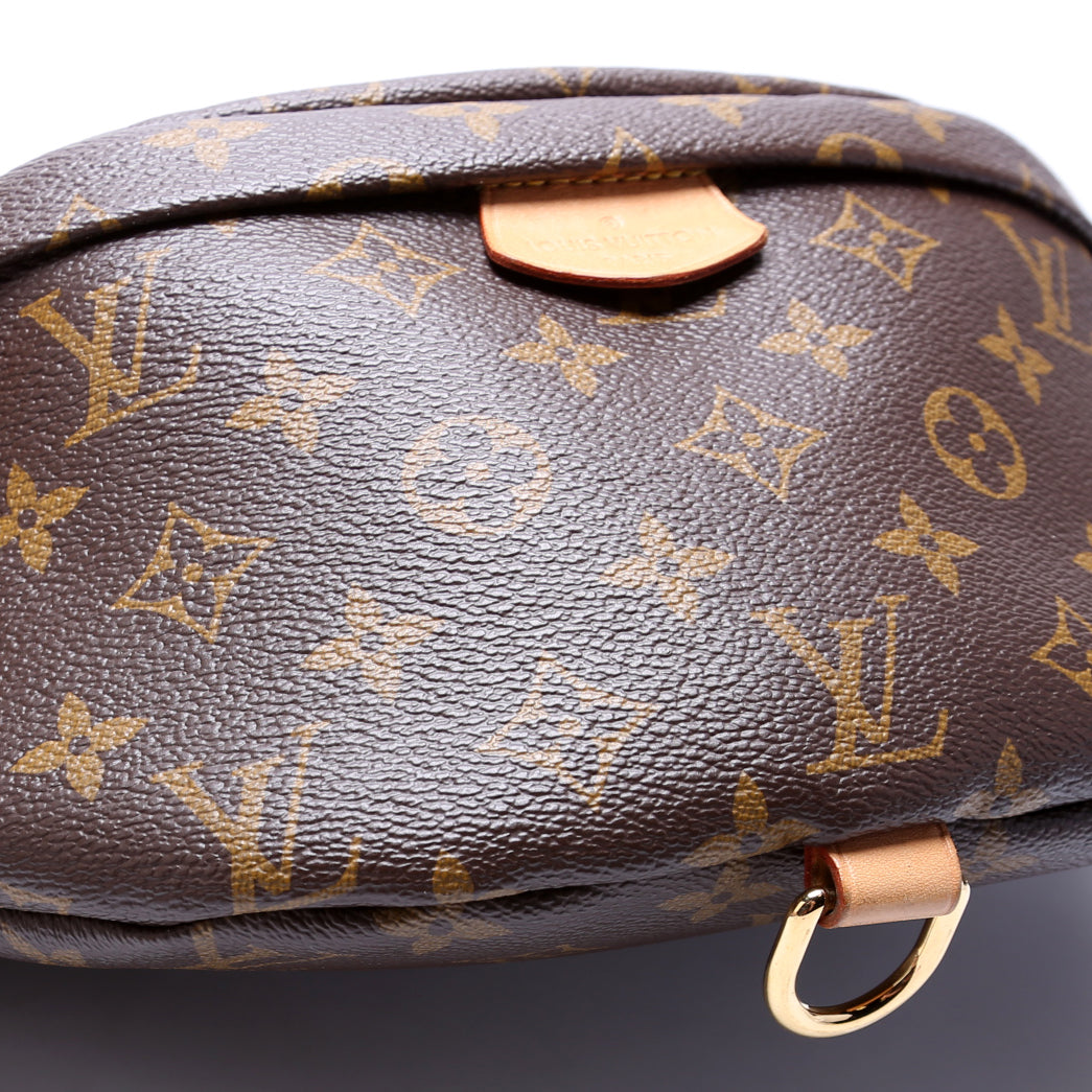 This Louis Vuitton Bumbagis eye catching bag. The exterior is in the classic Louis Vuitton Monogram coated canvas.