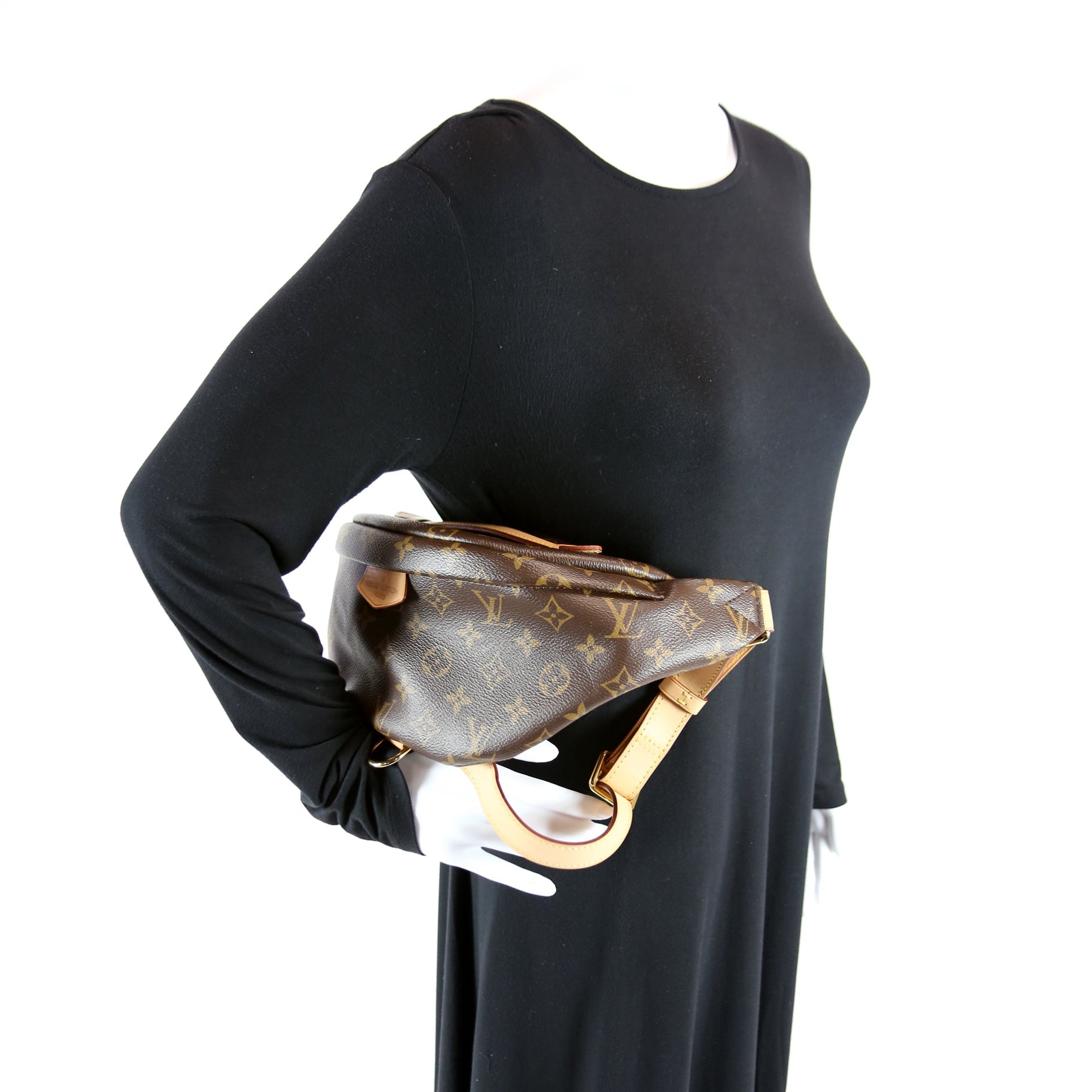 This Louis Vuitton Bumbagis eye catching bag. The exterior is in the classic Louis Vuitton Monogram coated canvas.