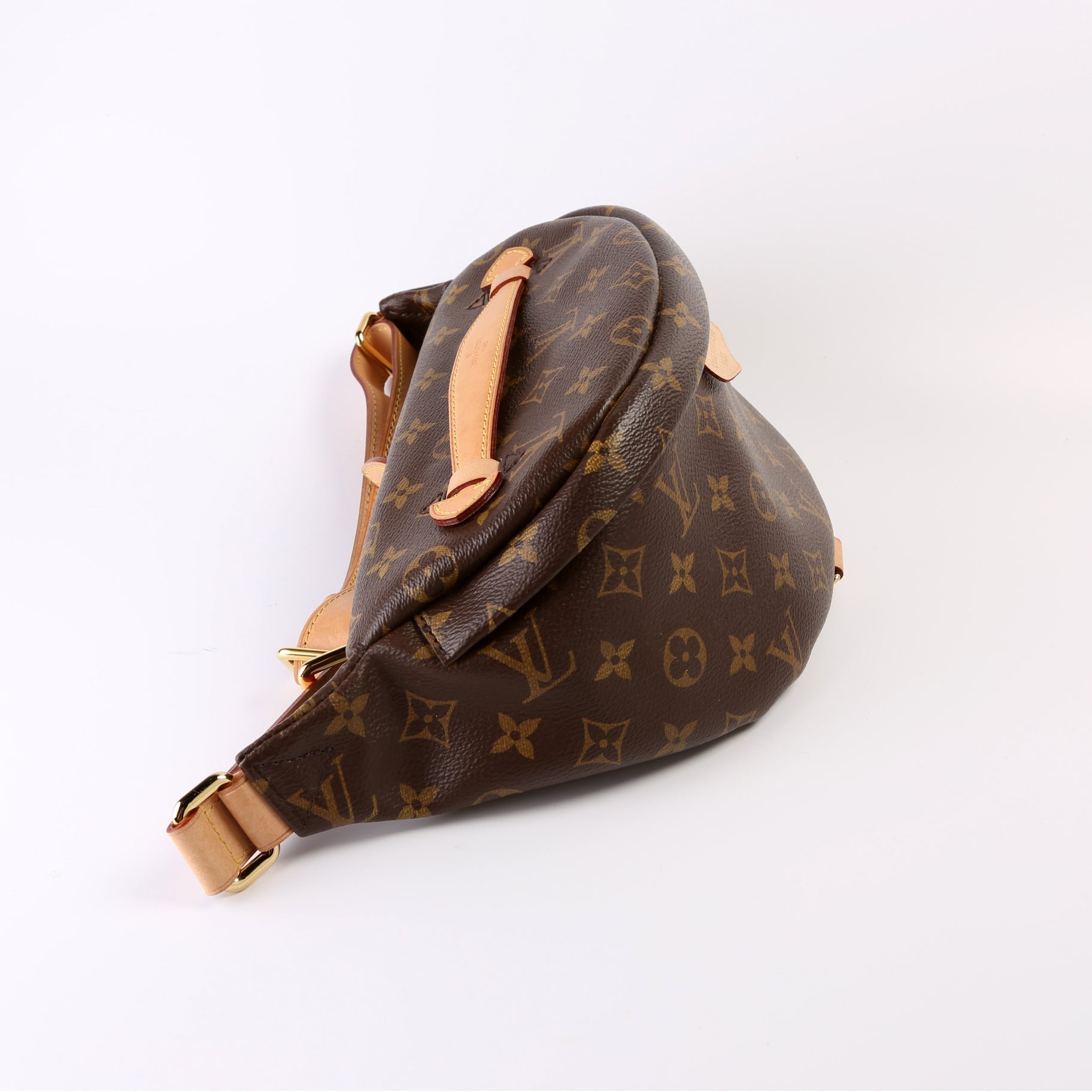 This Louis Vuitton Bumbagis eye catching bag. The exterior is in the classic Louis Vuitton Monogram coated canvas.
