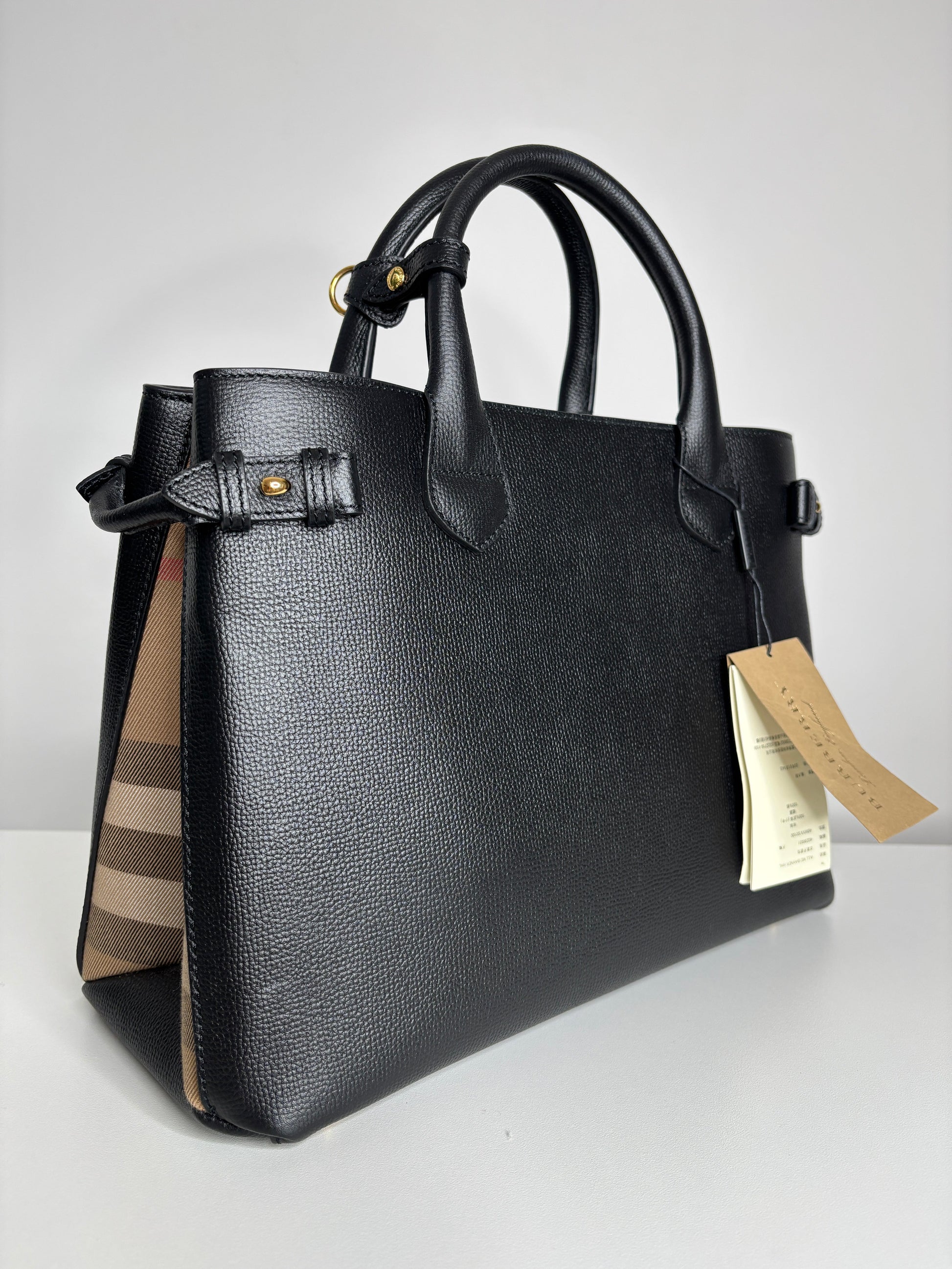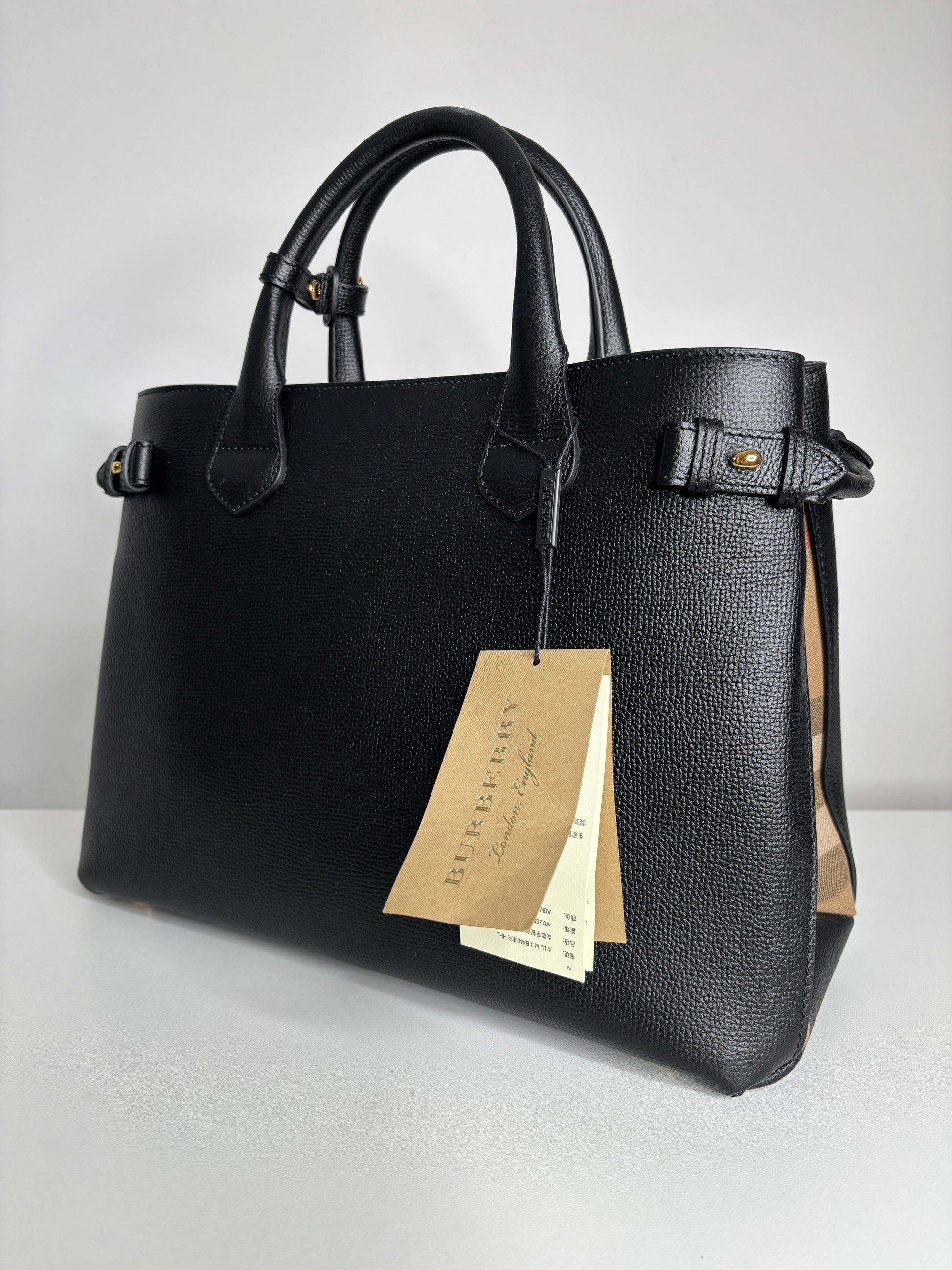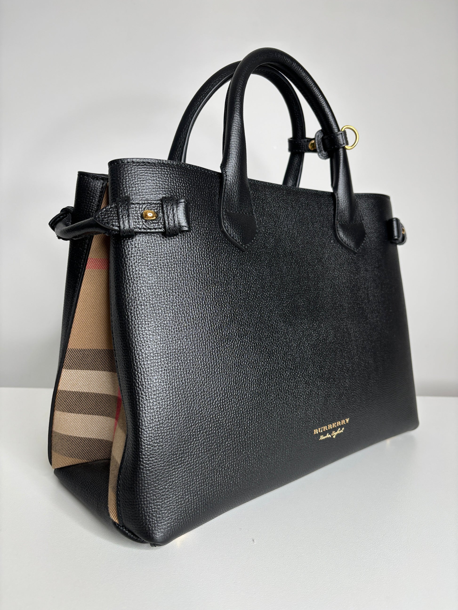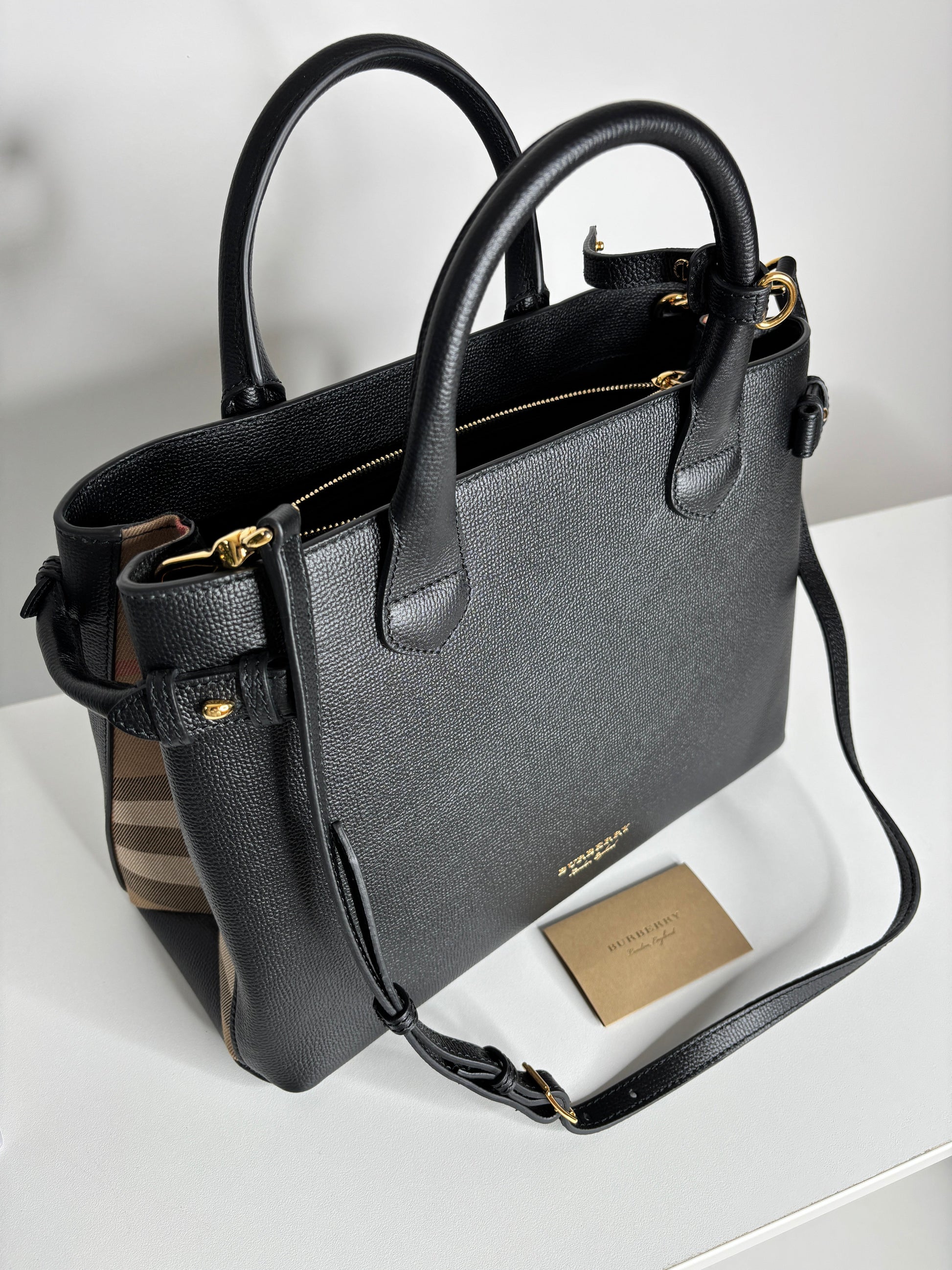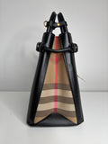 Burberry Medium Banner Black Leather House Check Shoulder Bag