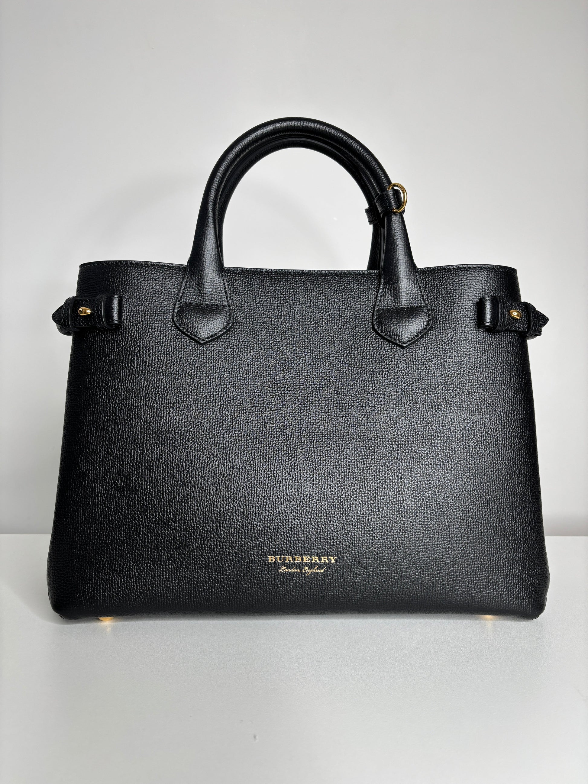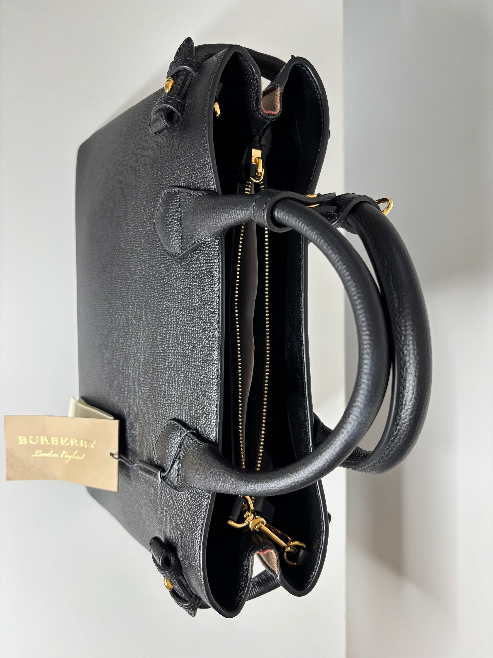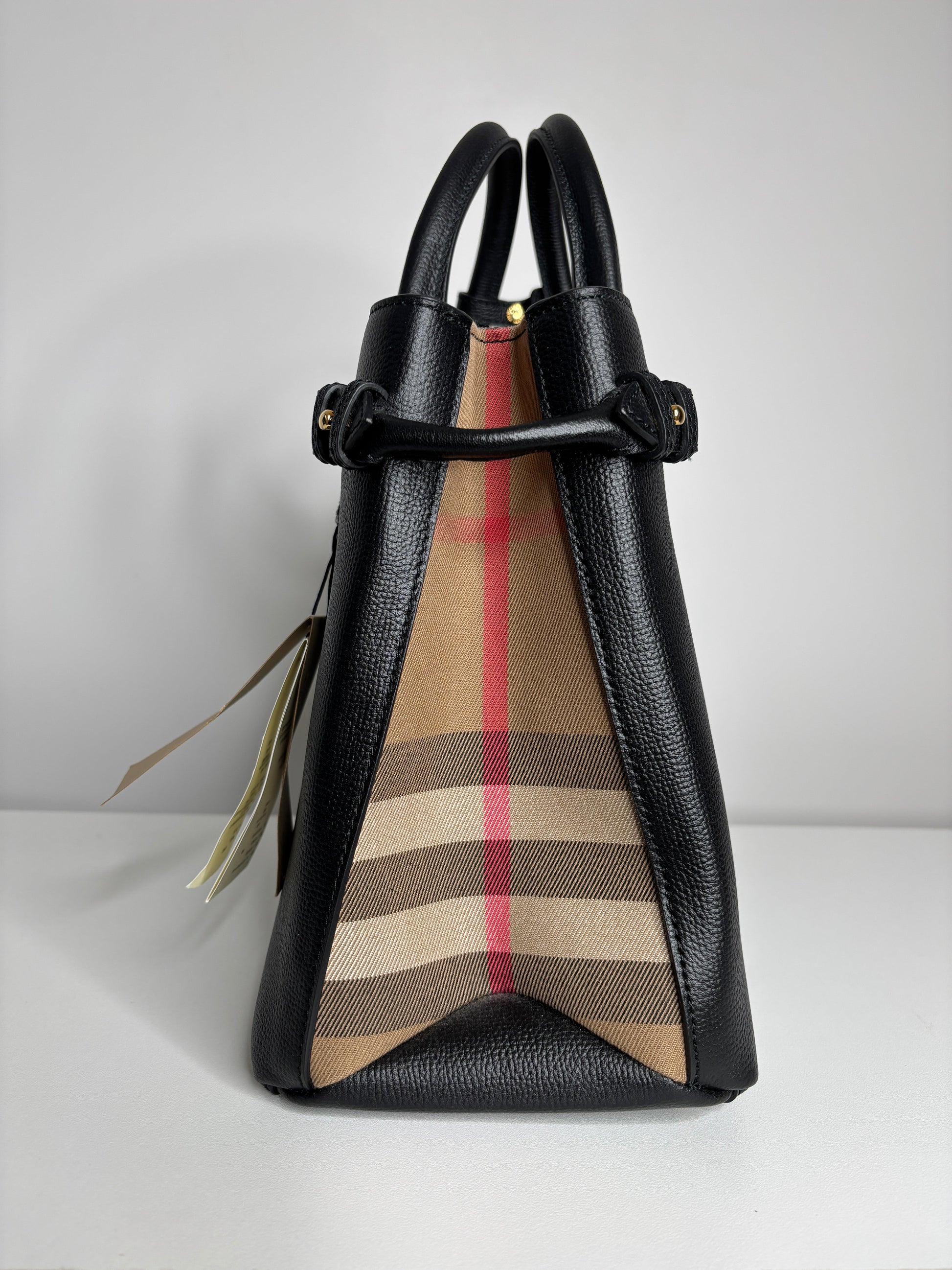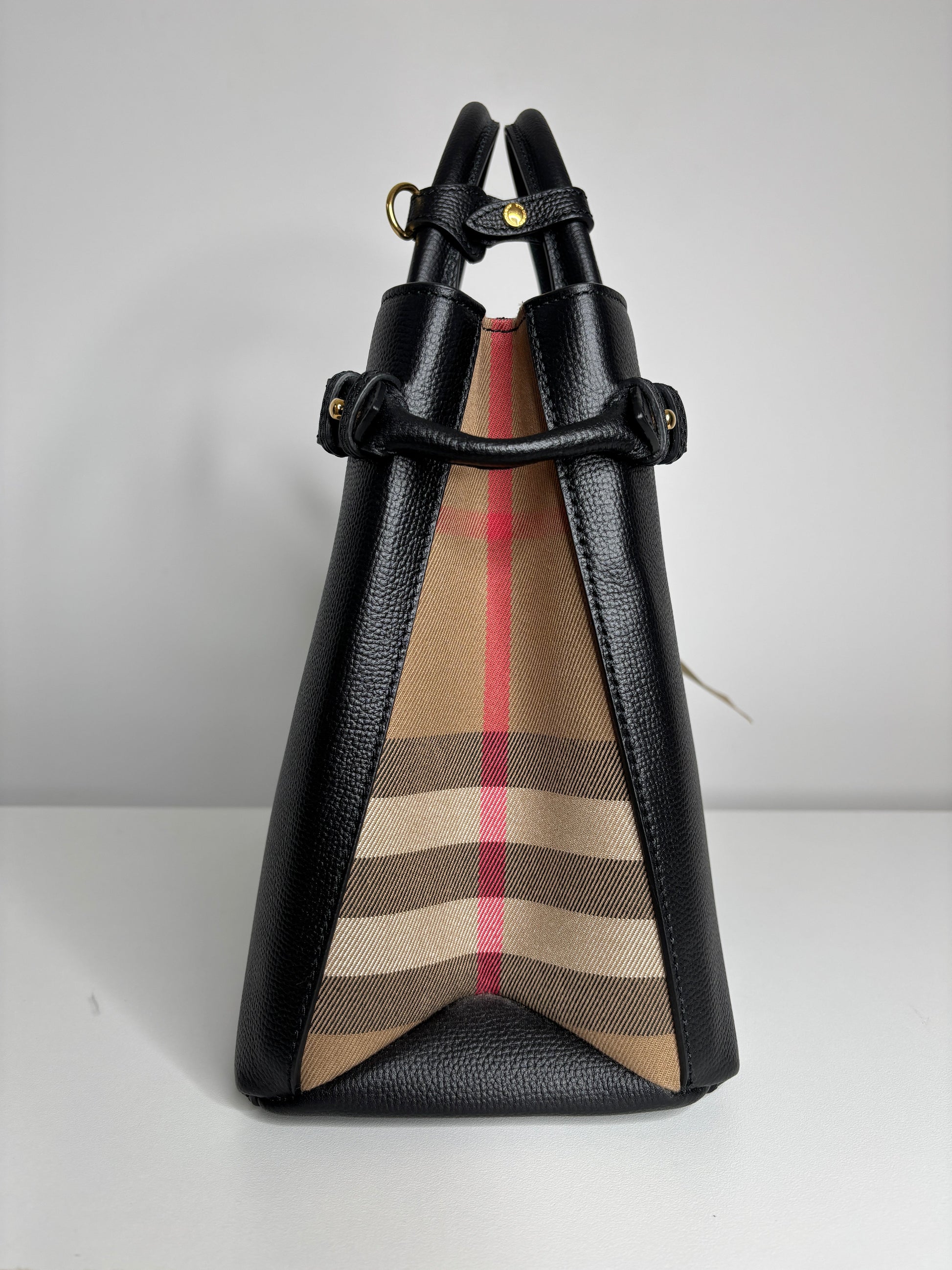 Burberry Medium Banner Black Leather House Check Shoulder Bag