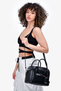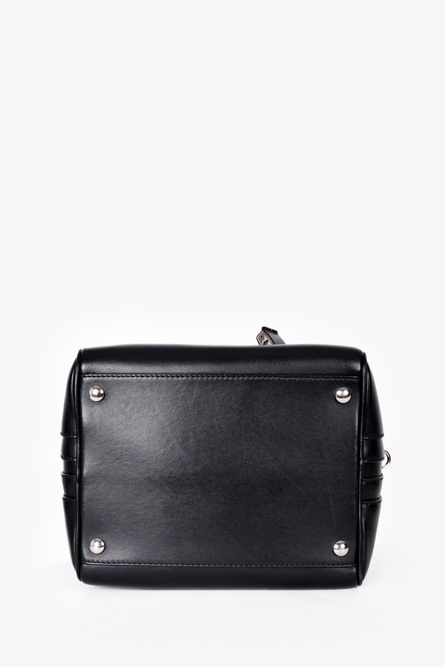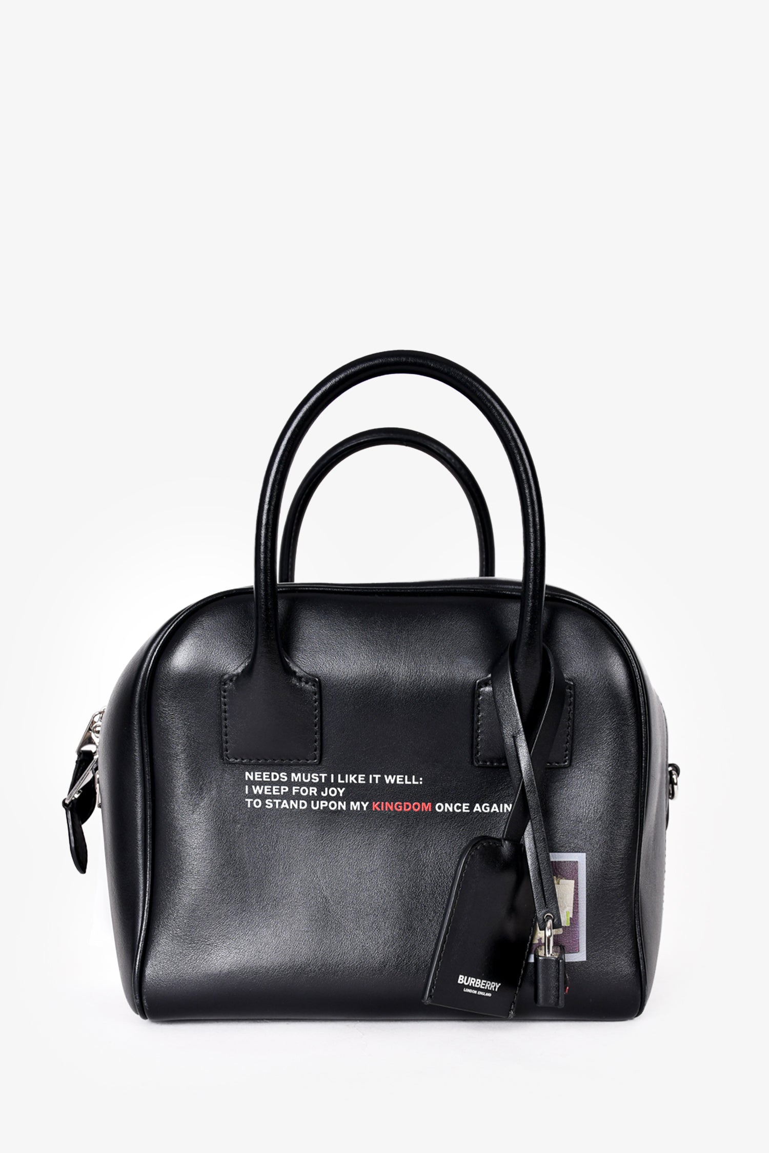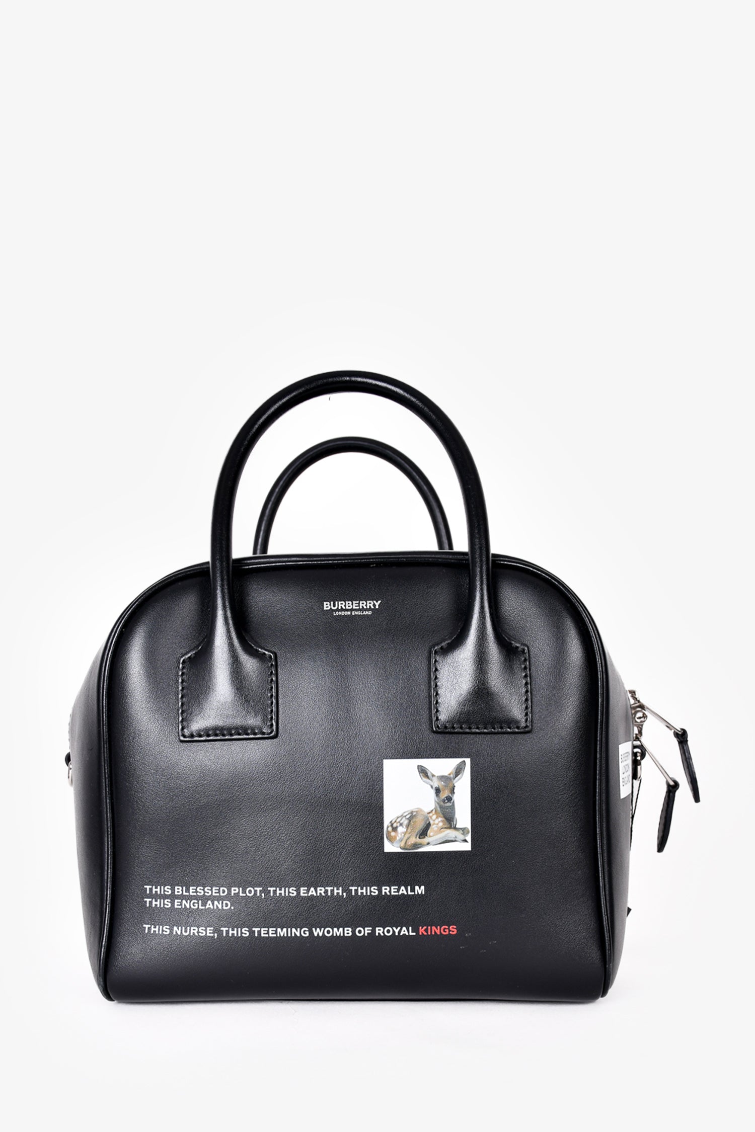 Burberry Black Leather Graphic Bowler Bag With Strap