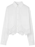 Product Name: Women's Macrame Lace Hem Cropped Cotton Shirt Uptic White