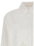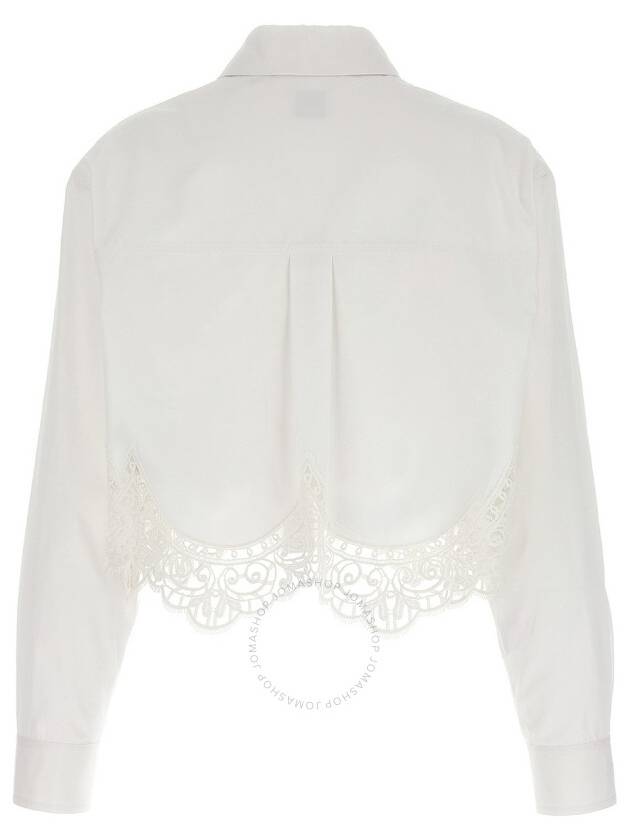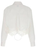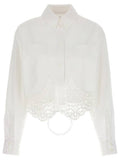Burberry Women's Macrame Lace Hem Cropped Cotton Shirt Uptic White