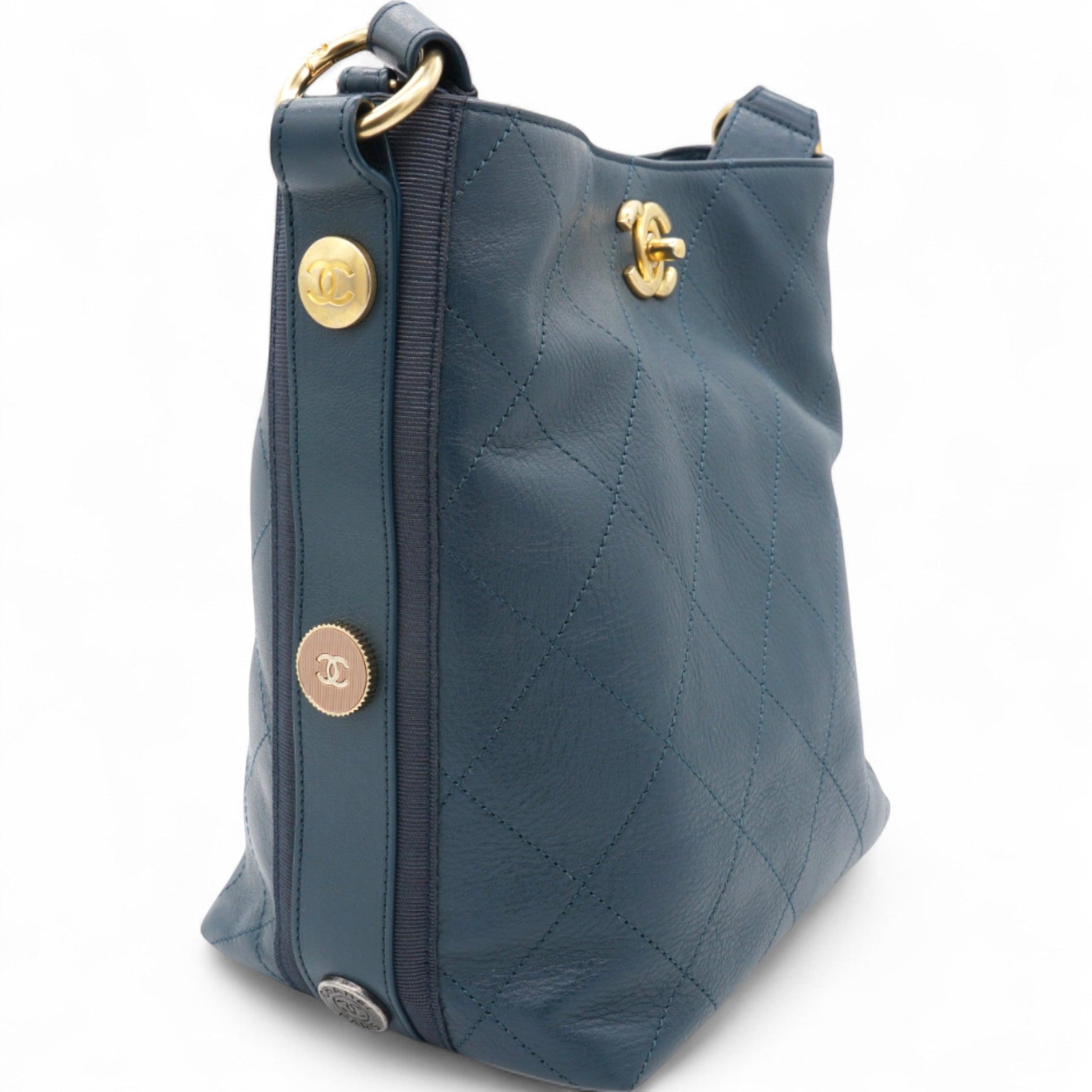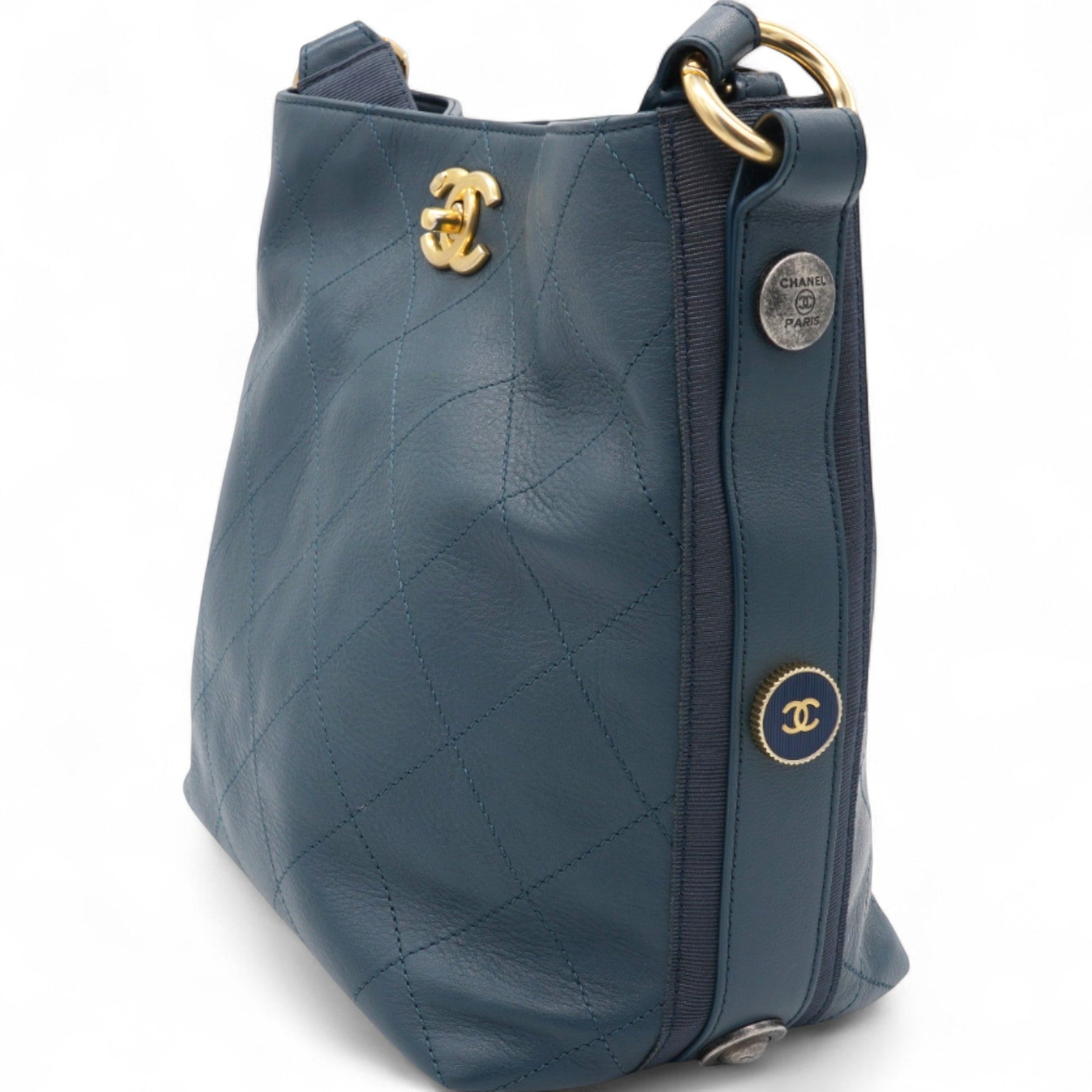 Chanel Button Up Hobo Quilted Calfskin with Grosgrain Small Shoulder Bag