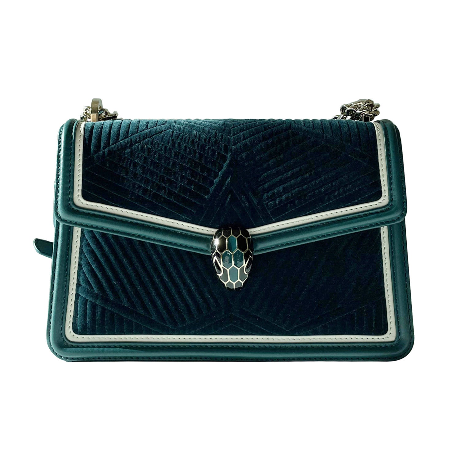 Description: Authentic Pre-Owned Bvlgari Velvet Serpenti Diamond Blast Shoulder Bag